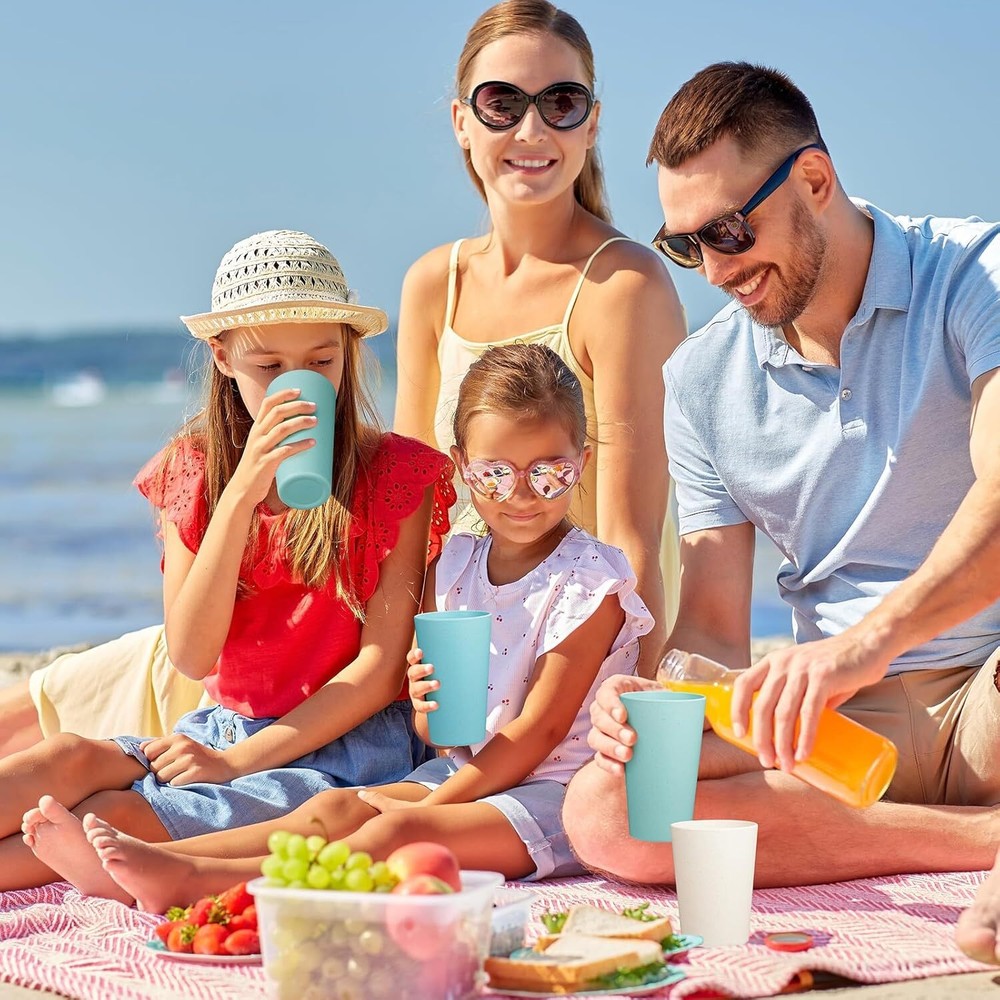 Wheat Straw Cups Set of 8, 20 oz Unbreakable Drinking Cup, Chip Ocean Product Details Brand: Hlukana Color: Ocean Special Feature: Lightweight, Break Resistant Style: Compact Theme: Wheat Straw Recommended Uses For Product: Home Included Components: Straw Cups Specific Uses For Product: Hot Drinks Shape: Round Pattern: Solid Product Care Instructions: Machine Wash, Microwave Safe, Hand Wash Only Age Range (Description): All Material Feature: Durable Reusability: Reusable Unit Count: 1.0 Count Product Dimensions: 1"W x 1.5"H Material Type Free: BPA Free Number of Items: 8 Package Type: FFP Manufacturer: Hlukana Item Weight: 1.39 pounds MaterialCapacity: Wheat Straw1.3 Pounds 【Wheat Straw Material】Made of natural wheat straw fiber, starch, and food-safe premium PP material. Extremely safe and healthy for kids and adults because all our wheat straw cups are Non-Toxic and 100% BPA Free. Very wheat straw cups for your family. 【Multipurpose Wheat Straw Cups】Excellent for drink, juice, tea, soda, water, and milk or your favorite beverages - home or picnic. It also can be a gargle cup or toothbrush holder, great for all age of kids, adult and the eldly. Stackable and well stored, make your space more tidy. 【Lightweight & Unbreakable】 Our premium quality cups are very light to hold. Different from the glass cup easy to break, Our unbreakable wheat cups are made with durable and light material that protects the cup when dropped, no worry that it may break once falling. 【Dishwasher & Microwave Safe】Our wheat straw cups are safe for the microwave and dishwasher. They are easy to use, clean and store. Note: The temperature resistance reaches up to 248 degrees Fahrenheit (120℃). 【OUR PLEDGE】All our products check the highest quality standards, so you can be sure that the wheat straw cup will surpass your expectations. It comes packed with care in a compact box, and it is super user-friendly, saving you time and energy.