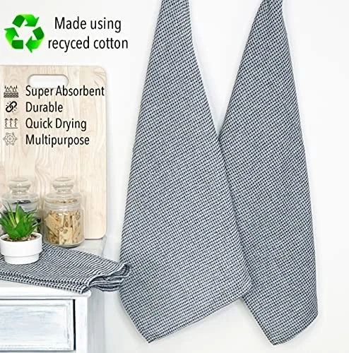 Return Policy Fast Delivery Trusted seller Recycled Cotton Waffle Kitchen Towels Set, Black & White | 18x28 Inch Kitchen/Dish Cloths Set of 6 |Super Absorbent Reusable Hand and countertop Towels Ultra Soft Tea Towels Product Description RECYCLED COTTON: These sustainable yet stylish kitchen towels are made using recycled cotton yarns. Since the material is recycled cotton, these dishcloths have a low carbon footprint and also use less water. ARTISANALLY CRAFTED: Artisans and weavers weave the recycled yarns into fine handcrafted kitchen towels. Our weavers ensure that these ultra chic, boho products are also excellent at cleaning splashes and grime from your countertops and dishes. MACHINE WASHABLE: In order to get the best results, please machine wash with cold water, gentle cycle, tumble dry low. Do not use bleach or fabric softeners as this will affect the longevity and absorbency of the towels. Low iron if needed. GREAT GIFTS: This holiday season, these easy-care multi-purpose, quick drying towels will make a great hostess gift, housewarming gift, holiday gift or welcome to the neighborhood gift – or give a set to your favorite home chef or barbecue king STYLISH & FUNCTIONAL: This holiday season, invite your family to cook together and make a mess. kitchen towels will be t for you to clean up all the messes without worry and they will look great doing it! These long lasting and durable tea towels will protect your plates against scratches Shipping Returns Payment Shipping Shipping is FREE to all addresses other than APO/PO boxes in the lower 48 states. All our stock ships from US-based warehouses. Shipped via USPS or UPS (depending on location and package weight) Unless stated otherwise, all orders will ship within 24-72 hours of your payment being processed. Check our feedback to see the great reviews of FAST shipping we offer. Returns Seller does not accept returns Payment We currently accept payment via eBay managed payments only. Once payment is cleared, we will dispatch your shipment within 1-3 business days. Please refer to the "Shipping" tab for more information regarding shipping speed to your destination.