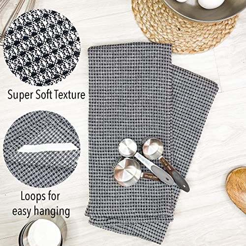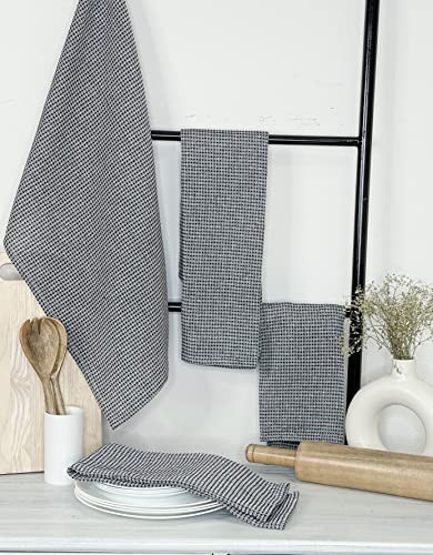 Eco-Friendly Black Recycled Cotton Waffle Kitchen Towels Set of 6