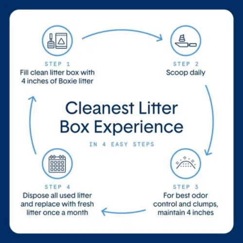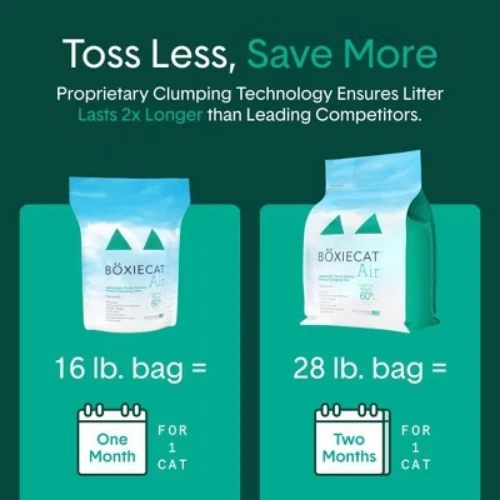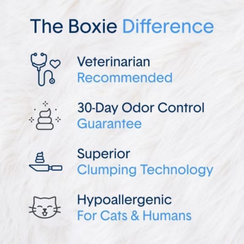 Important Note for Our Valued Customers: To offer you the best prices with free shipping, we occasionally experience shipping delays. If this happens, we’ll notify you immediately, issue a full refund, and invite you to place a new order at your convenience. To keep costs low, we sometimes reuse branded packaging boxes for shipments—we appreciate your understanding if you receive your order in repurposed packaging. Rest assured, all products we sell are 100% brand new, unopened, and freshly manufactured, including pet food and human-grade items, with a minimum 8-month shelf life remaining. If any issues arise, please contact us first—we’re committed to resolving them quickly. If you’re not completely satisfied, we offer a full refund with no hassle. Thank you for your trust and support! Highlights 30-Day Odor Control: Moisture-activated, safe for cats and humans Eliminates Ammonia: 2x longer than competitors, no overpowering scents 99.9% Dust-Free: Minimizes tracking, reduces dust accumulation No Fillers/Additives: Cleaner, safer home environment Easy to Pour & Clean: 60% lighter, instant clumps, no sticking Monthly Replacement: Superior absorption, convenient and valuable Veterinarian Approved: Calming chamomile and lavender scent Toxin-Free: No harsh chemicals or artificial fragrances, safe for kittens Description Discover the perfect balance of freshness and convenience with Boxie® Gently Scented Lightweight Cat Litter. Our effective odor control formula is 100% plant-based, creating hard, tight clumps that trap odors and keep litter cleaner and drier longer. At 60% lighter than traditional clay litter, this dust-free option is easy to lift, pour, and store, without sacrificing performance. Ideal for single and multi-cat homes, it maintains a fresh, clean environment with a gentle, natural scent. One bag lasts approximately one month for one cat, offering a long-lasting, natural solution. Suitable for all litter box types—regular, sifting, or mechanical—Boxie® ensures easy maintenance with minimal mess. Free from harsh chemicals, our gently scented litter promotes a healthier home and happier cats and kittens. Upgrade your litter box experience with Boxie® lightweight cat and kitty litter.