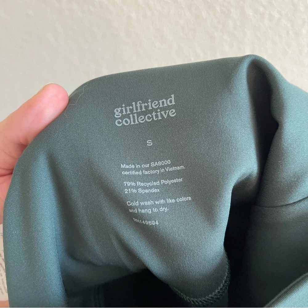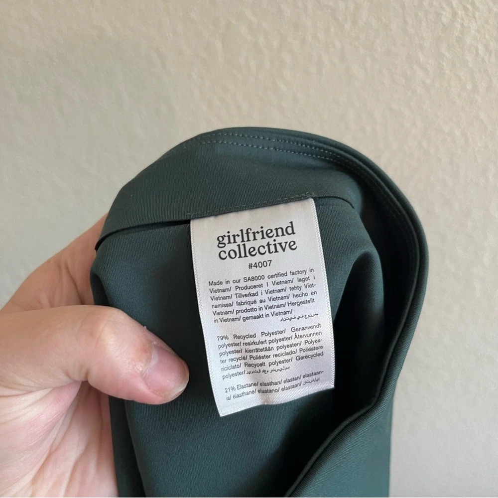 Girlfriend Collective Compressive High-Rise Legging in Moss Women's Size Small This item is in great preowned condition, cute, trendy. An extra high-rise with four-way stretch and compressive fabric made from recycled water bottles — basically everything you need to get through your favorite high-impact activities, like running, yoga, and binge watching true crime. Designed for high-impact workouts Small hidden back pocket for keys or cards Sweat-wicking and squat-proof material Soft yet sturdy construction with four-way stretch Women's Size Small Approx Measurements: Rise: 10 in Inseam: 27 in
