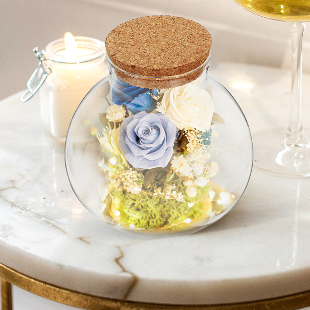 This glass globe vase is stunning—the cork seal keeps water fresh, and the clear design beautifully showcases flowers. Perfect for any decor, it’s elegant yet eco-friendly. A must-have for plant lovers!