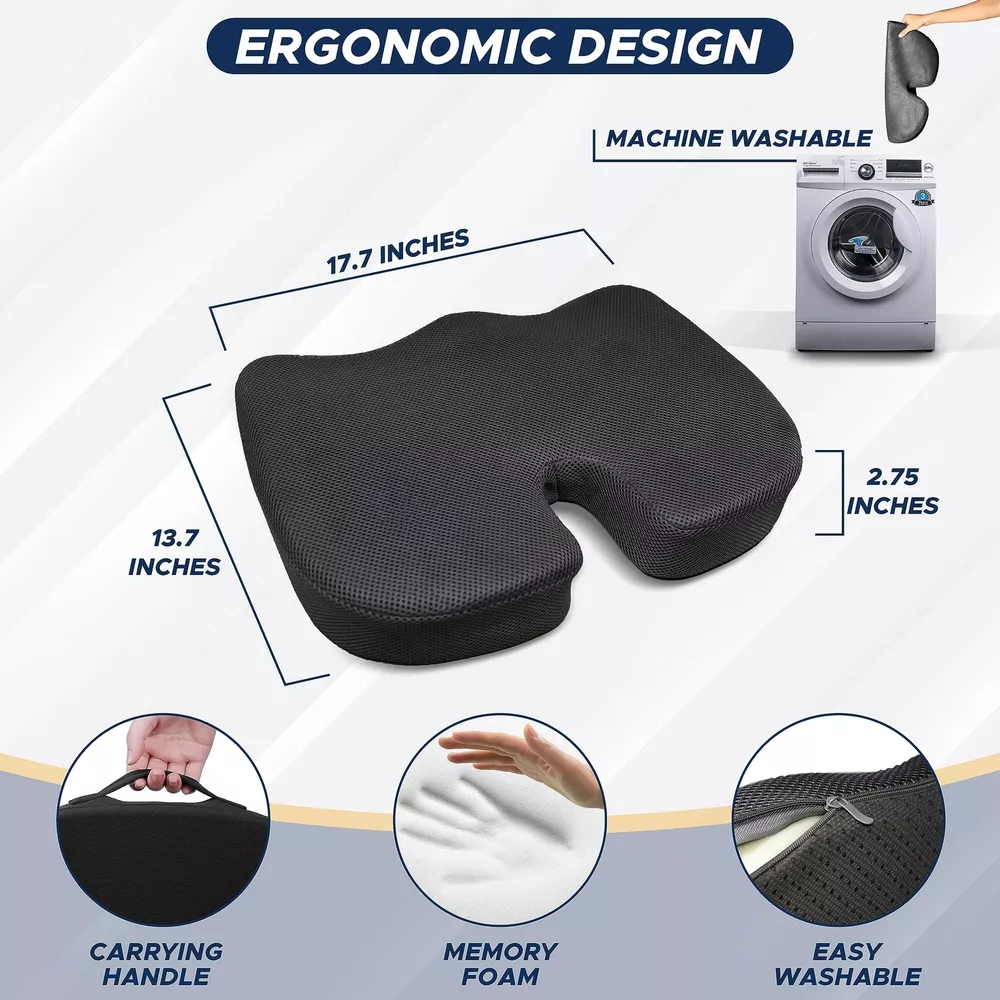 EcoNour Gel Seat Cushion for Pressure Relief | Office Chair Cushion for Sciat... Product Overview Features Your New Best Friend for Lower Back: Say no to Sciatica! Our ergonomic seat cushion is the answer to all your back-pain woes while driving and in the office. Don't let back-pain ruin your day! Enhanced Dual-Layer Gel & Memory Foam: EcoNours Tailbone Cushion features a dual-layer gel & memory foam, unlike others. With this, your spinal cord and tailbone will have a soothing, pressure-free experience! Breathable & Removable Mesh Layer: The removable top mesh layer is breathable and can be machine-washed. This prevents the coccyx cushion from getting dirty and stays fresh all-day! Designed for Orthopedic Wellness: EcoNour's Tailbone Pain Relief Cushion is proven effective for orthopedic ailments such as sciatica, coccyx pain, lower back pain, neck and spinal cord pains. Easy to Carry: Thanks to the tough handle, you can carry the sciatica pillow for sitting in your office as an office chair pad, doing yoga, driving, resting outdoors, and much more! Details Brand: EcoNour Special Feature: gifts for wife, computer accessories, home office, cushion for chair, chair cushion ,seat cushions,, seat cushion with Cooling Gel + 100% Extra soft Memory Foam Cushion, Dining chair cushions, office desk accessories, cushion for office chair, seat pad, car seat cushion, work from home essentials, gaming accessories See more Color: Black Size: Gel Seat Cushion Black Fill Material: Gel Memory Foam Special Feature: gifts for wife, computer accessories, home office, cushion for chair, chair cushion ,seat cushions,, seat cushion with Cooling Gel + 100% Extra soft Memory Foam Cushion, Dining chair cushions, office desk accessories, cushion for office chair, seat pad, car seat cushion, work from home essentials, gaming accessories Shape: Semicircular Age Range (Description): Adult Recommended Uses For Product: Sitting Use for: Buttocks Material: Memory Foam Product Care Instructions: Machine Wash Number of Pieces: 1 Pattern: Solid Item Weight: 1.9 Pounds Material Feature: Breathable Material Type Free: Chemical Free Fabric Type: Memory Foam Model Name: Cushions Package Dimensions: 16.14 x 6.65 x 5.51 inches Item Weight: 1.9 pounds Manufacturer: EcoNour Country of Origin: China Item model number: Seat Cushion Quality Products Have peace of mind knowing that your order will arrive original factory sealed packaging. That means that you'll have the full force of the manufacturer's warranty to protect your purchase. Fast and Free Shipping You're already purchasing the item. Why pay additional for shipping, especially slow shipping? We get your order shipped out and delivered to your doorstep as quickly as possible. Commitment We are committed to making sure that you leave this transaction satisfied. That means having access to real people that get your questions and concerns answered quickly. Give us a shot and we will make sure that you will look to us again!