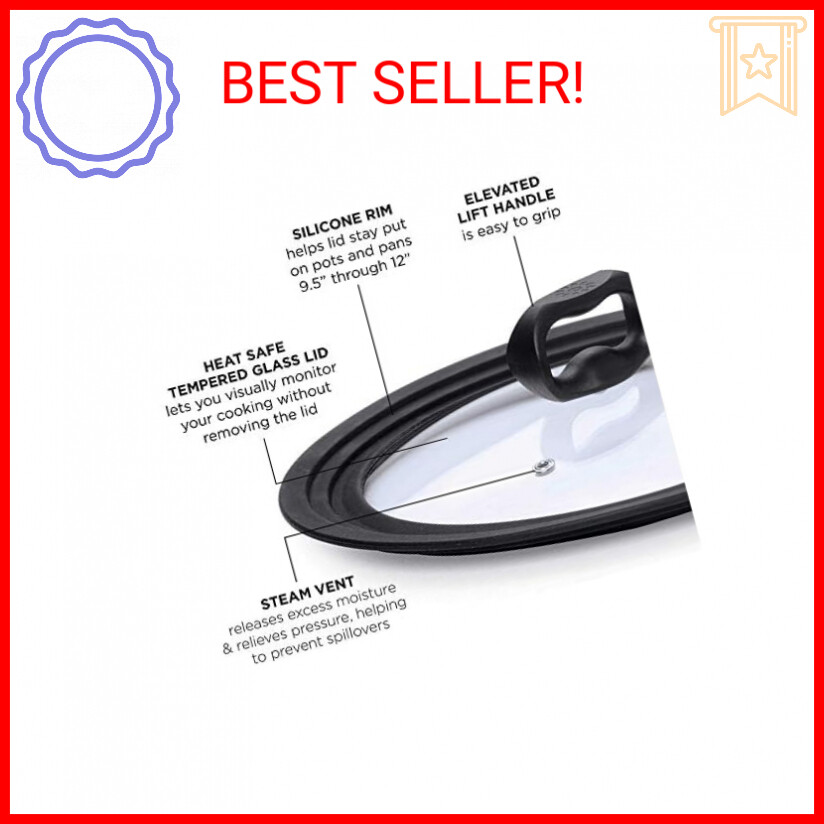 Ecolution Universal Lid for Pots and Pans, Fits 9.5-Inch to 12-Inch Cookware, Tempered Glass Replacement Lid with Heat Resistant Silicone Edge, Dishwasher Safe, Made without BPA, Large, Black - UNIVERSAL AND SPACE SAVING – Designed to fit multiple 9.5 inch, 10 inch, 11 inch and 12 inch cookware. Works with fry pans, pots, saucepans, skillets, stock pots, woks, cast iron pans and practically any other style of cookware. Eliminate kitchen cabinet clutter by replacing your worn-out lids with this multipurpose, compact lid. - EASY TO USE - Transparent, tempered glass allows you to monitor your food as you cook without having to remove the lid. Vented to release excess moisture and pressure preventing accidental spillovers while still locking in all the moisture and flavors in your food. - HIGH QUALITY, DURABLE DESIGN – Designed with high quality, tempered glass which is both safer and more durable than standard glass. Durable, high heat resistant silicone edge clings to your cookware also preventing accidental spillovers. - EASY TO CLEAN – Dishwasher safe. Save time and make your clean up a breeze by placing the Universal Lid right in the dishwasher after use. - SAVES YOU MONEY - Our high-quality universal lid allows you to replace worn-out or missing lids without having to buy new cookware. The Fine Print Payments We accept the following payment methods Visa/Mastercard PayPal Apple Pay Google Pay Please pay as soon as possible after winning an auction, this will allow for quicker shipping times! Returns We accept returns . You can return unopened items in the original packaging within 30 days of your purchase with receipt or proof of purchase . If 30 days or more have passed since your purchase , we cannot offer you a refund or an exchange . Upon receipt of the returned item , we will fully examine it and notify you via email , within a reasonable period of time , whether you are entitled to a return . If you are entitled to a return , we will refund your purchase price, and a credit will automatically be applied to your original method of payment . Only regular priced items may be refunded . Sale items are non -refundable . Buyer is responsible for return shipping costs + a 20% restocking fee. Perishables, topicals and other health products may not be returned. Shipping Shipment processing time All orders are processed within 2-3 business days. Orders are not shipped or delivered on weekends or holidays. If we are experiencing a high volume of orders, shipments may be delayed by a few days. Please allow additional days in transit for delivery. If there will be a significant delay in shipment of your order, we will contact you via email or phone. Shipping rates & delivery estimates Shipping charges for your order will be calculated and displayed at checkout.