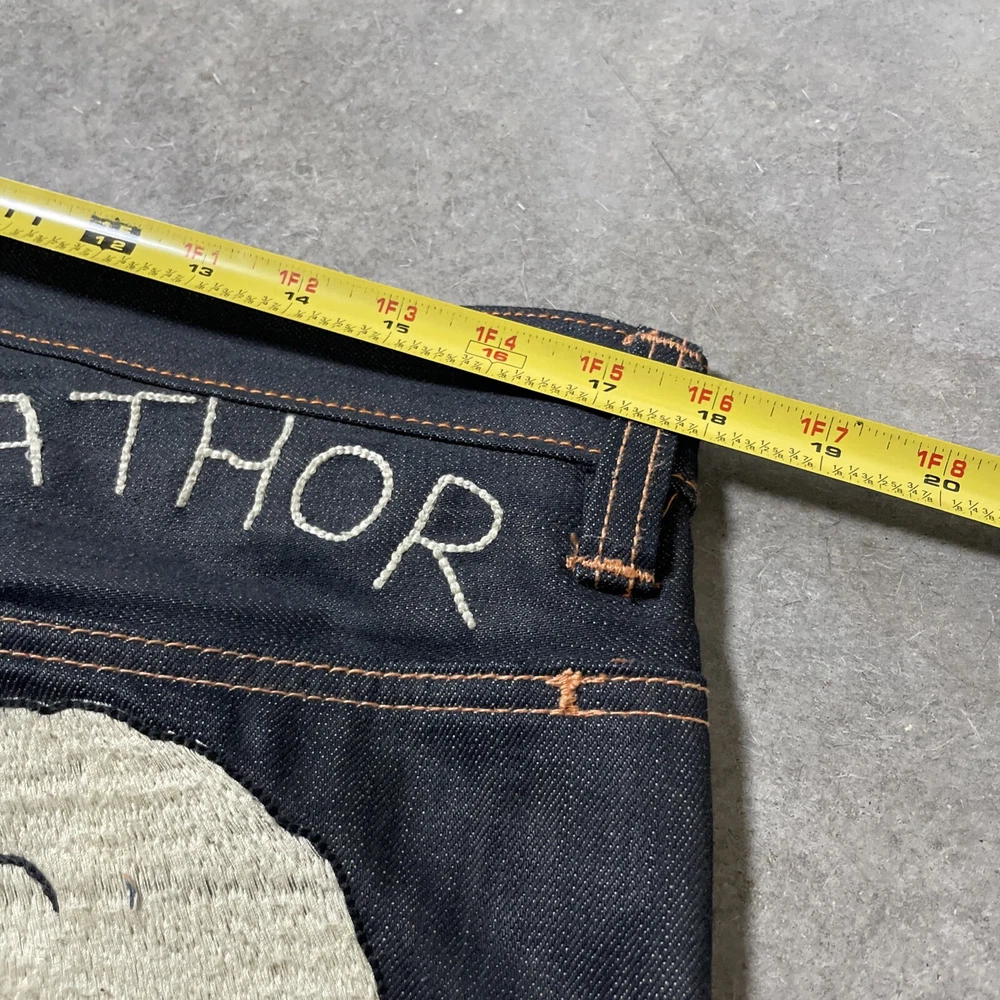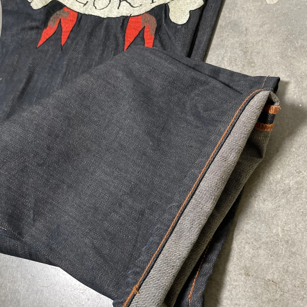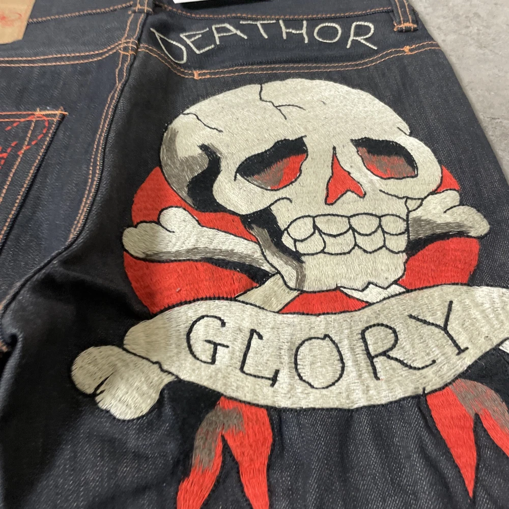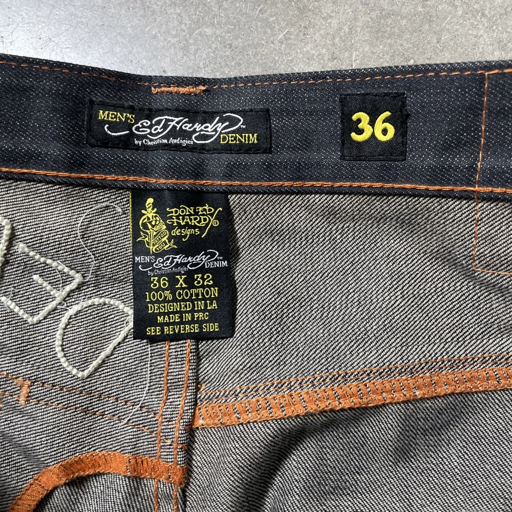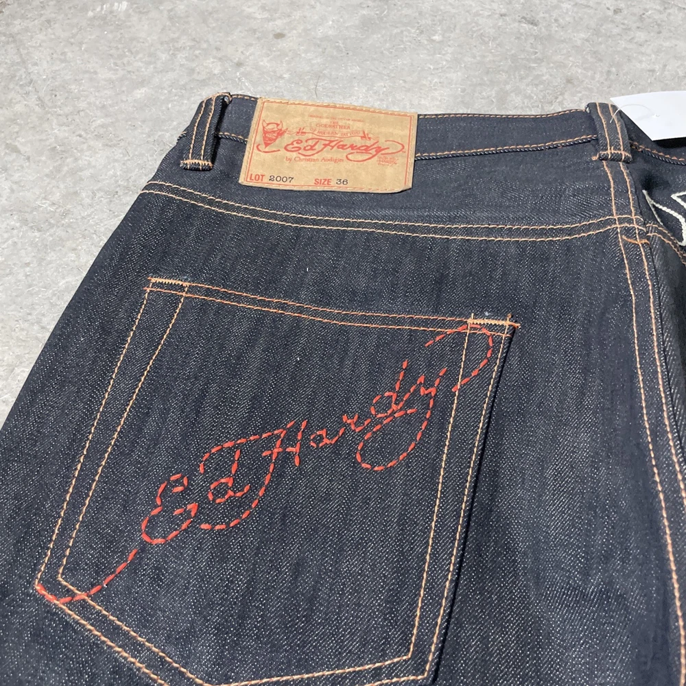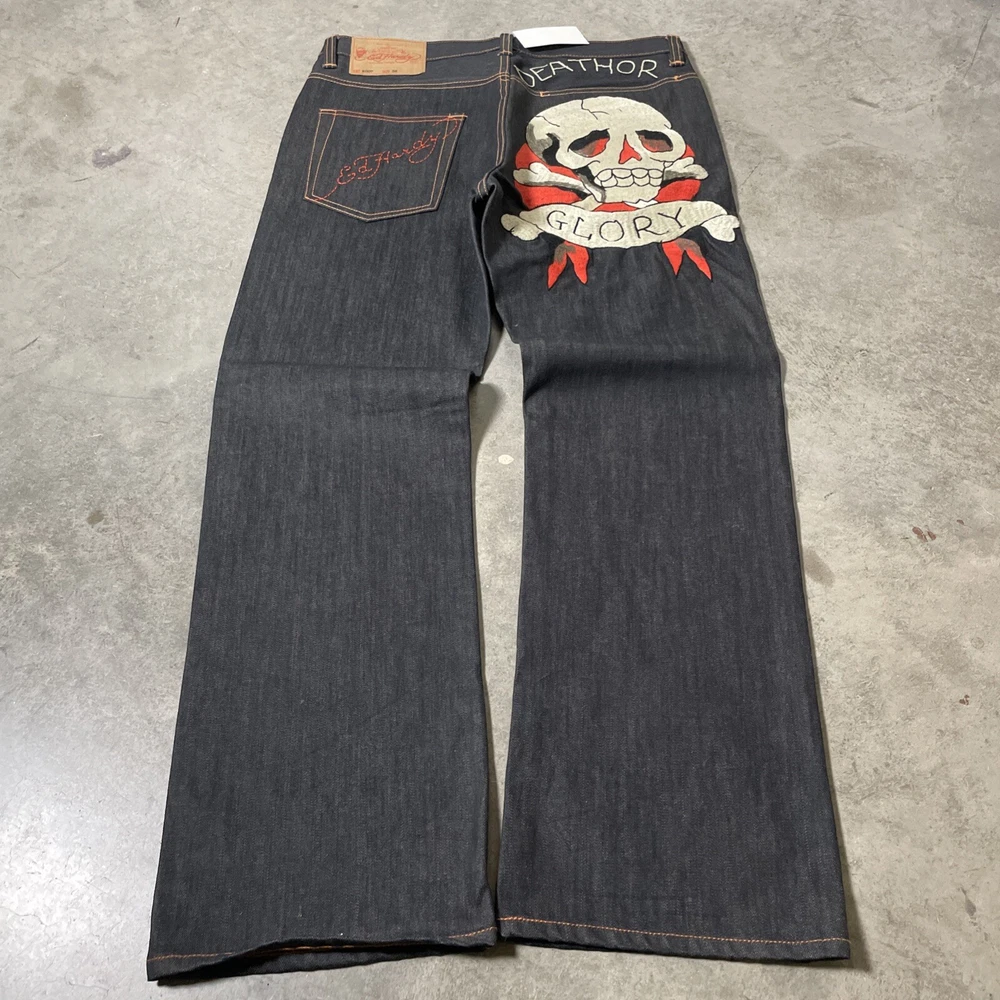 Ed Hardy Embroidered Dark Wash Denim Jeans Skull Size 36 Tattoo Gory baggy y2k Please refer to pictures for Measurments, flaws and details