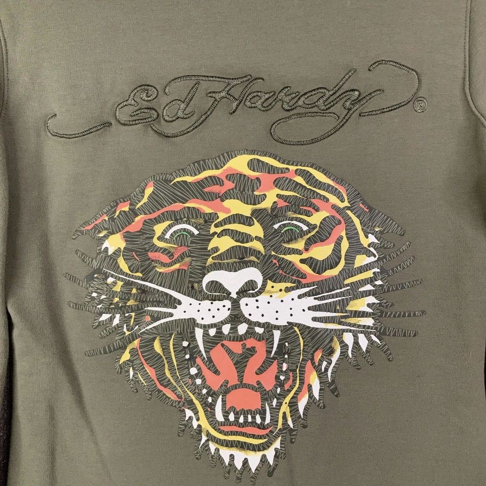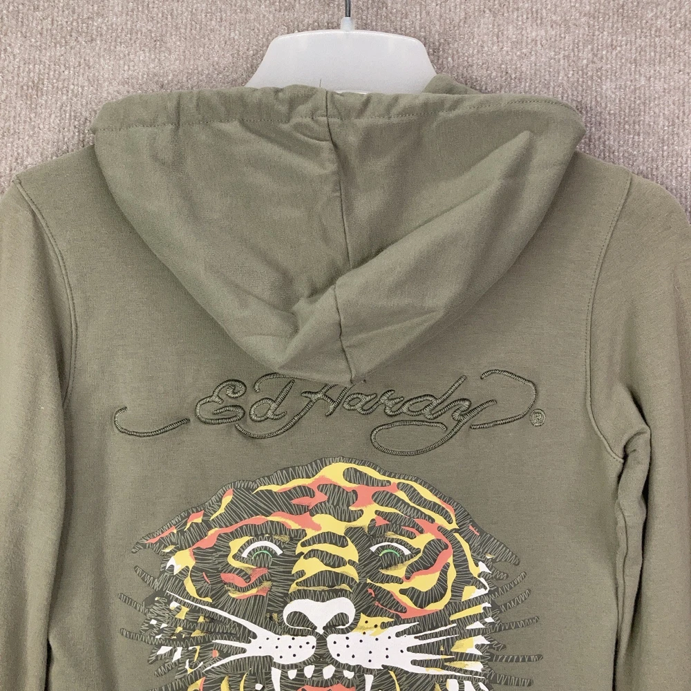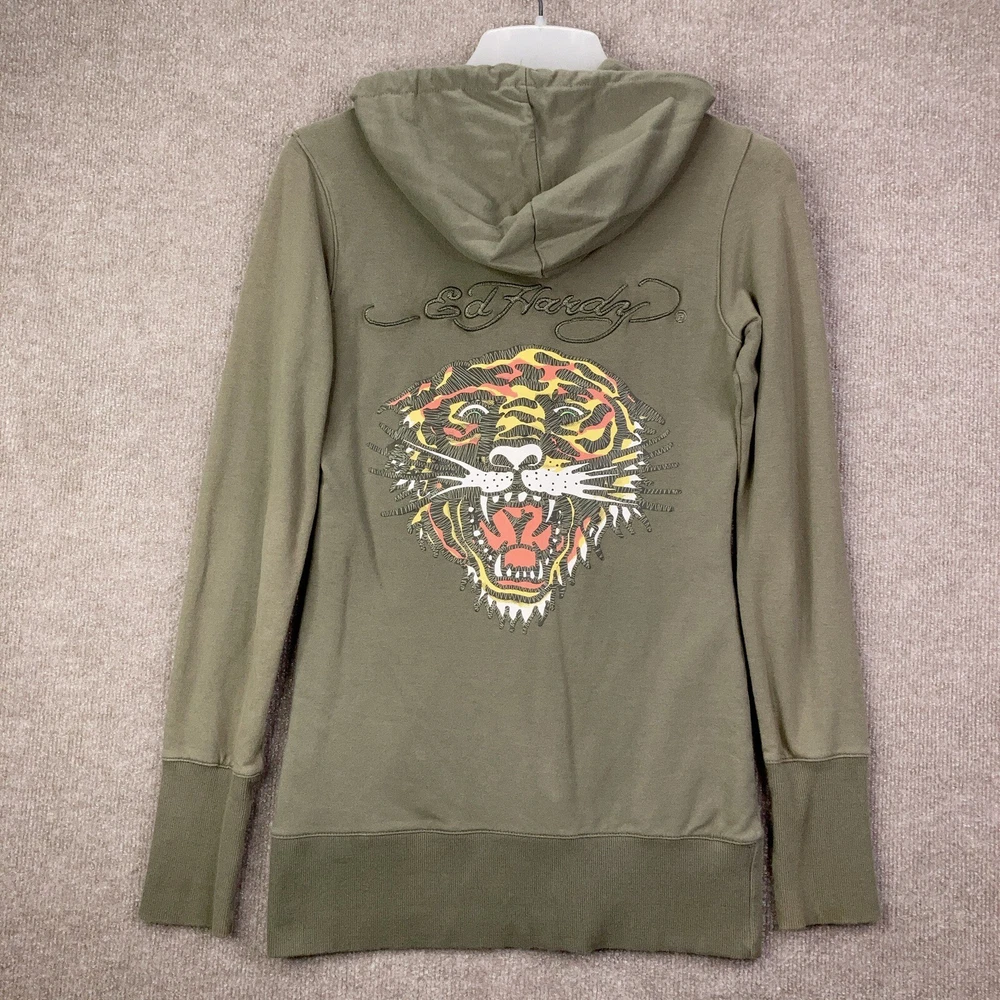 Ed Hardy Hoodie Womens Small Green Brown Full Zip Tiger Christian Audigier Y2K Item is in good condition. Free from spots or stains and shows normal wear or better. Item measurements are in the photos and as follows: Chest: 34" (measured at armpit) Length: 27" (measured from neck seam to hem) Shipping and Returns I usually ship within 2 business days so you get your order fast! I accept no hassle returns for items within 30 days, even if you just do not like it. Please feel free to ask any questions you may have. I answer most questions as soon as possible and thanks for looking!