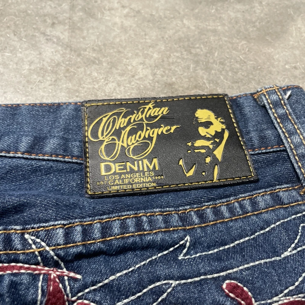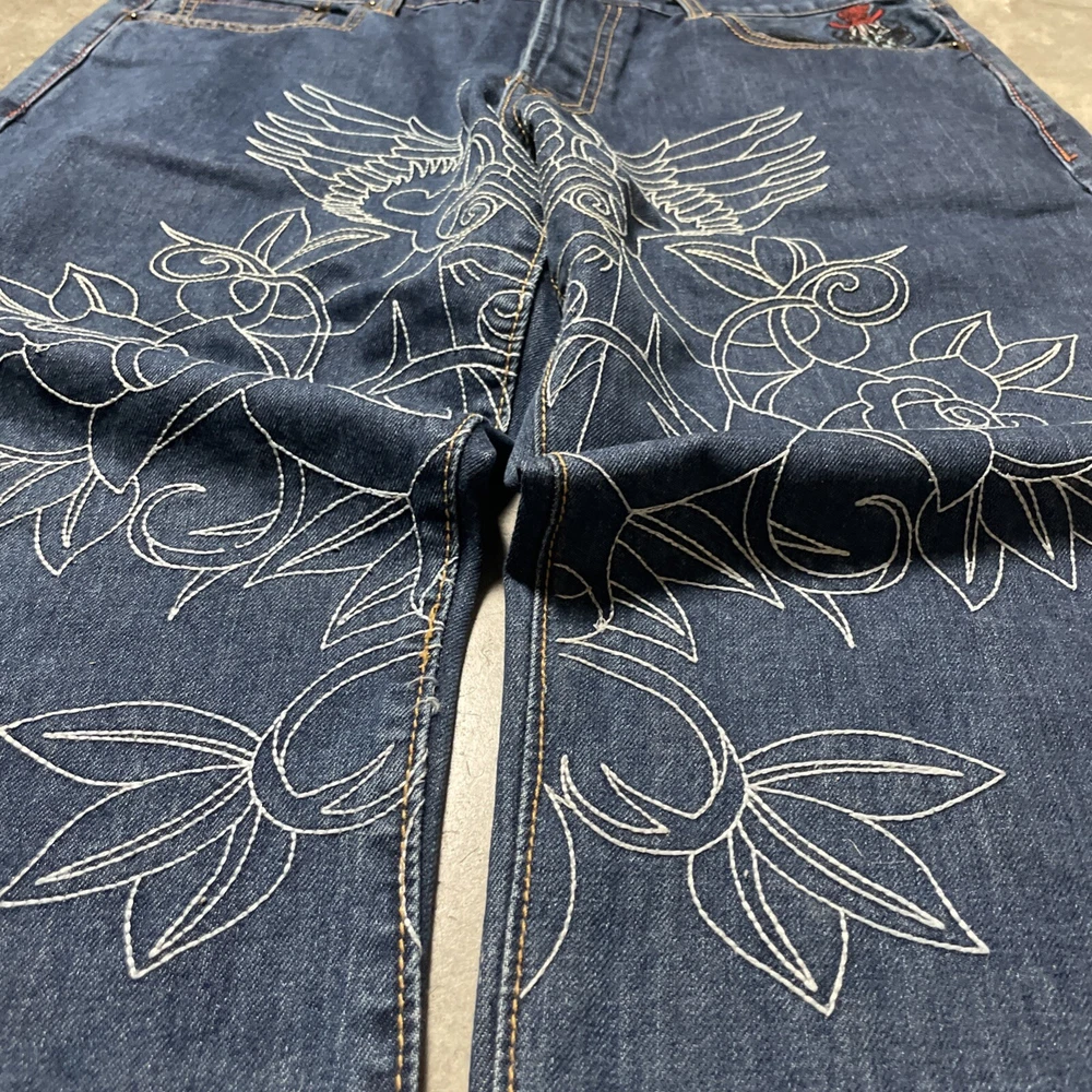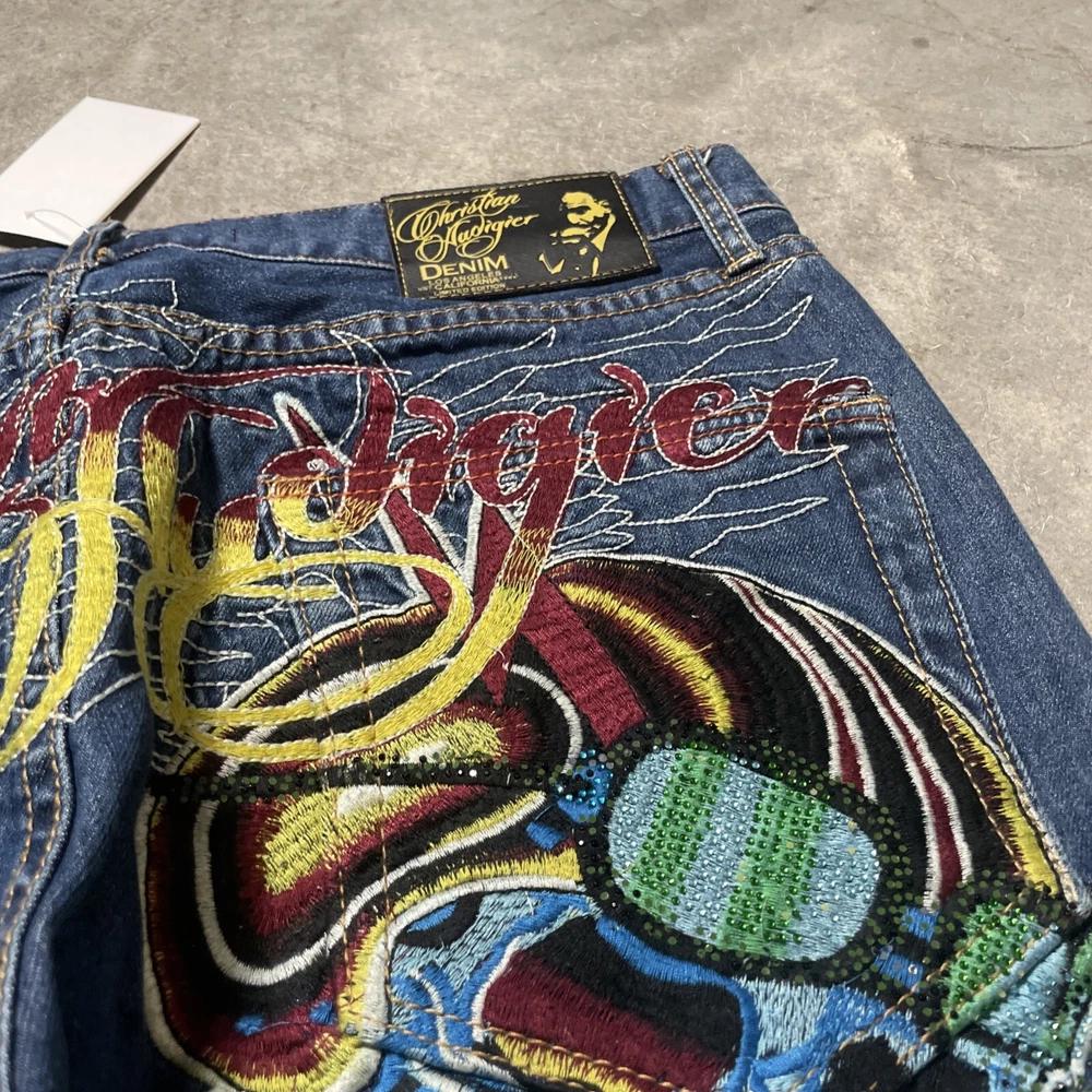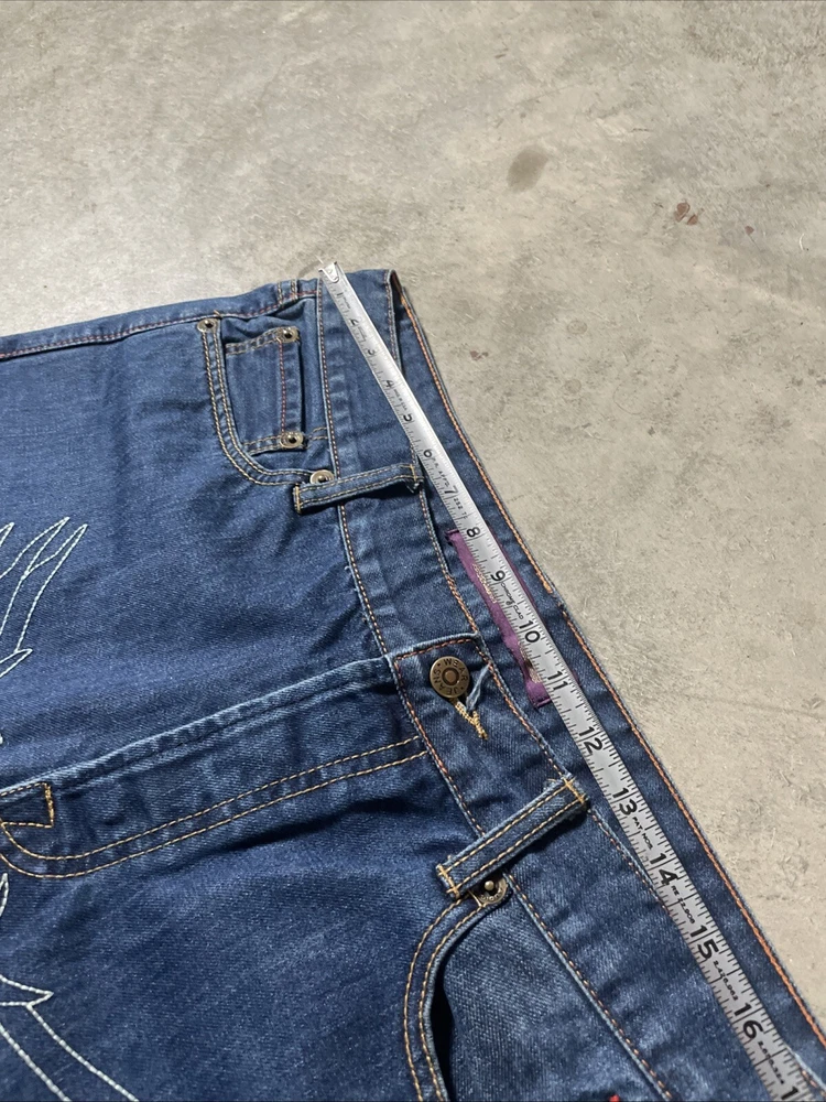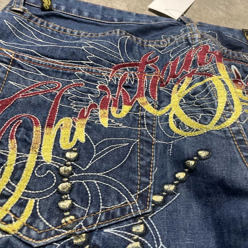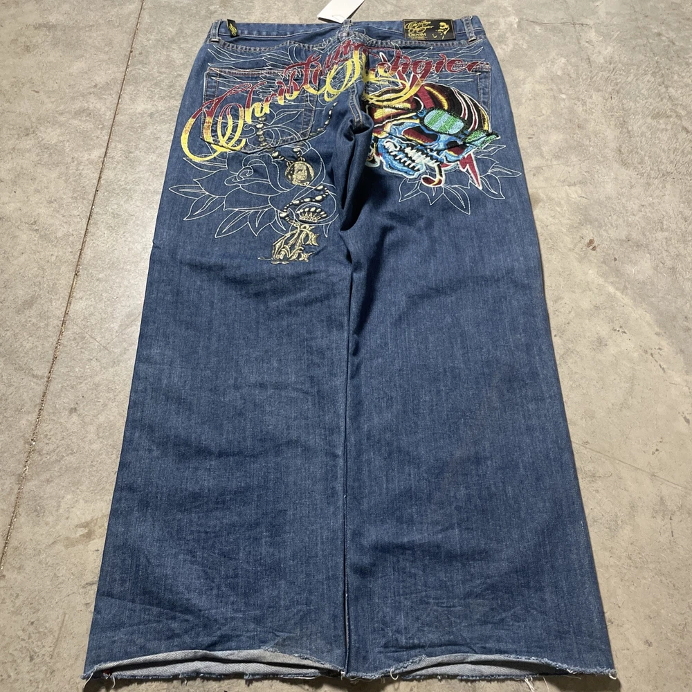 Christian Audigier Denim Ed Hardy Graphic Embroidered Skulls Jeans Navy Size 38 Please refer to photos for all flaws, measurements and details
