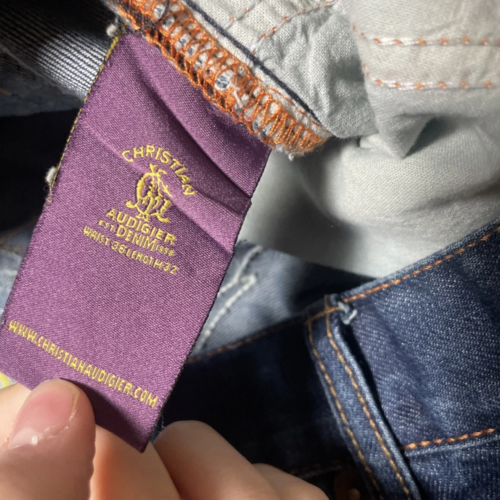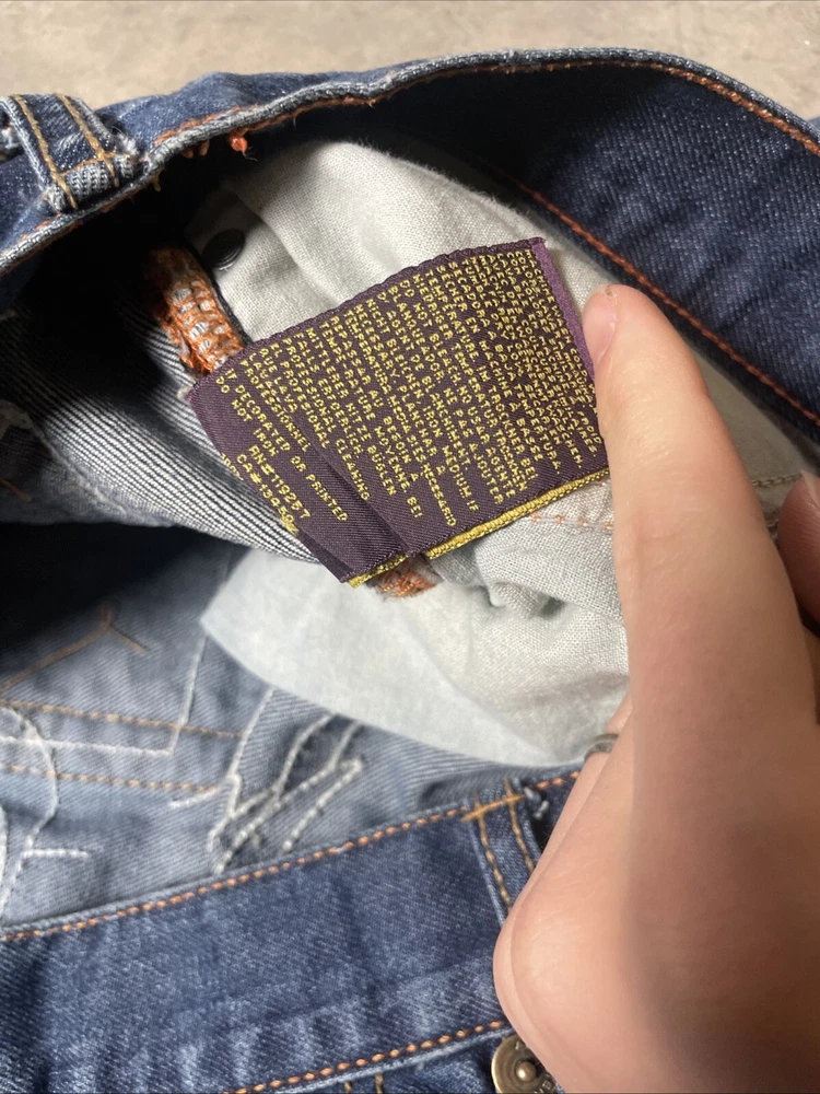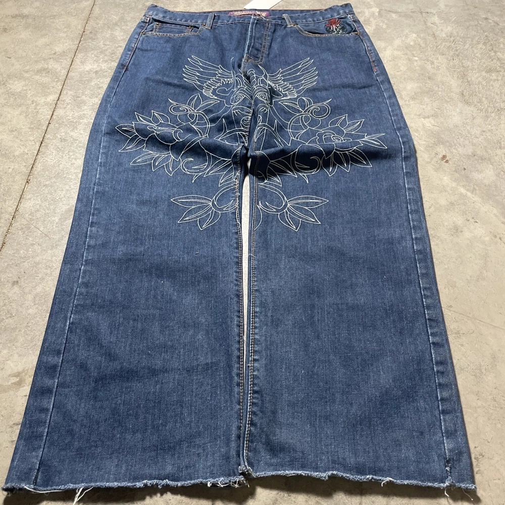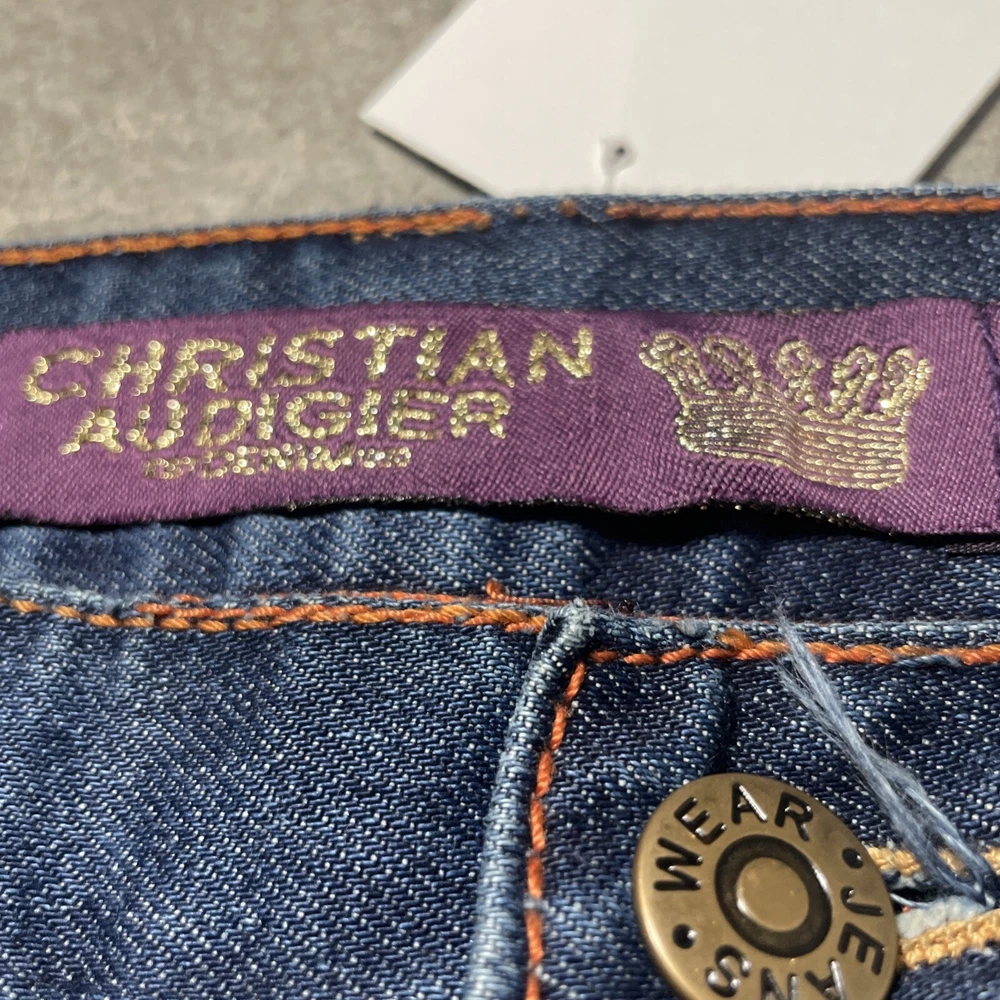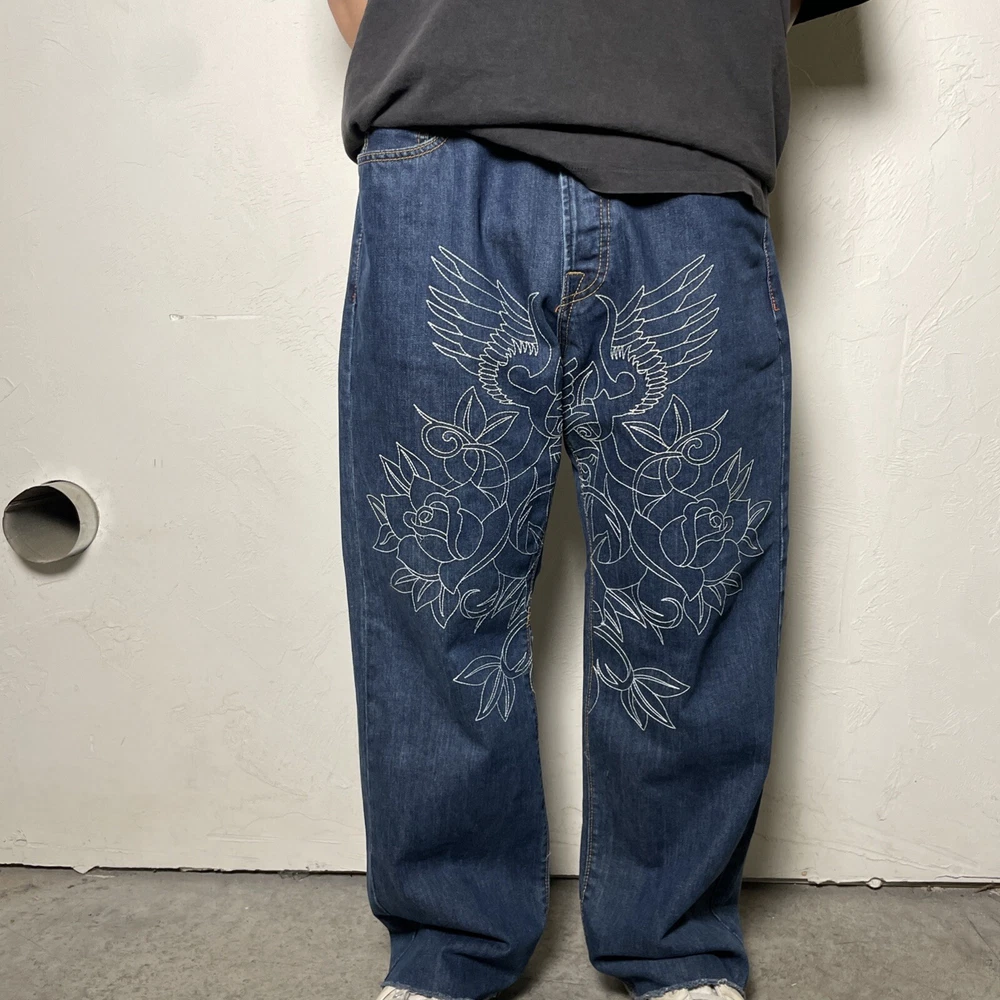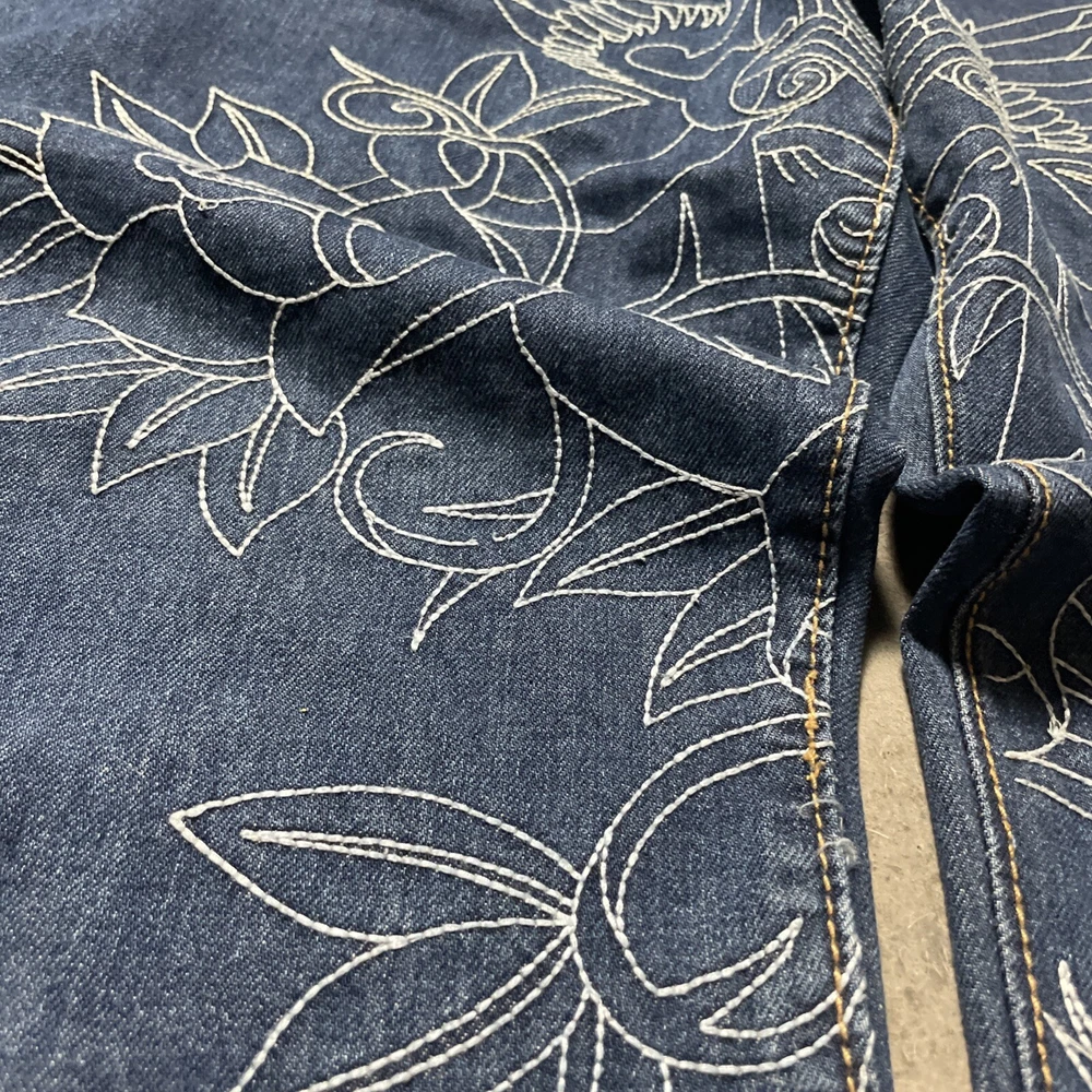 Christian Audigier Denim Ed Hardy Graphic Embroidered Skulls Jeans Navy Size 38 Please refer to photos for all flaws, measurements and details