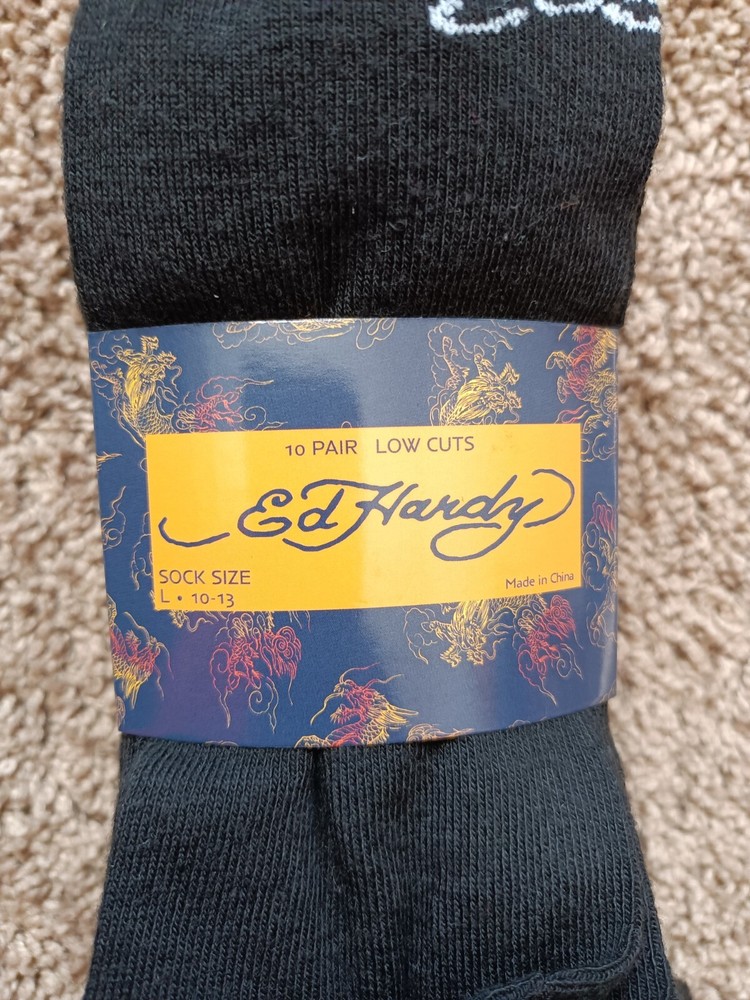 Ed Hardy Men's Low Cut Socks, Shoe Size 6-12 Solid Black 10 Pair NWT -New In Excellent Condition No Rips Or Stains Never Worn Men's Size 6-12 Women's Size 8-12