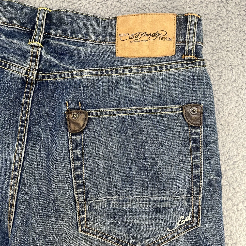 Ed Hardy Denim Jean Shorts Men’s Size 34 Christian Audigier Inseam 13.5”. Actual measurements may vary from the tag. Please measure your favorite garment to ensure a proper fit. Free returns for domestic buyer. Item must be the same condition as it was delivered for a refund.