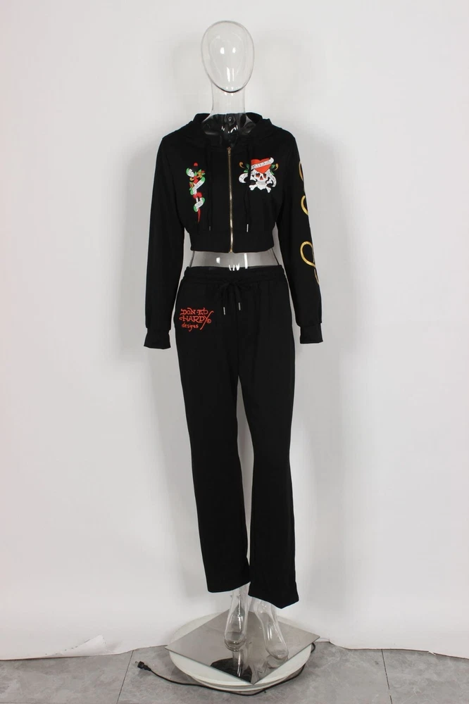 Product information: Color: red, burgundy, black skull print Pants length: trousers Main fabric composition: Polyester (polyester fiber) Size: S,M,L,XL Sleeve length: long sleeve Popular elements: zipper Packing list: Top+pants