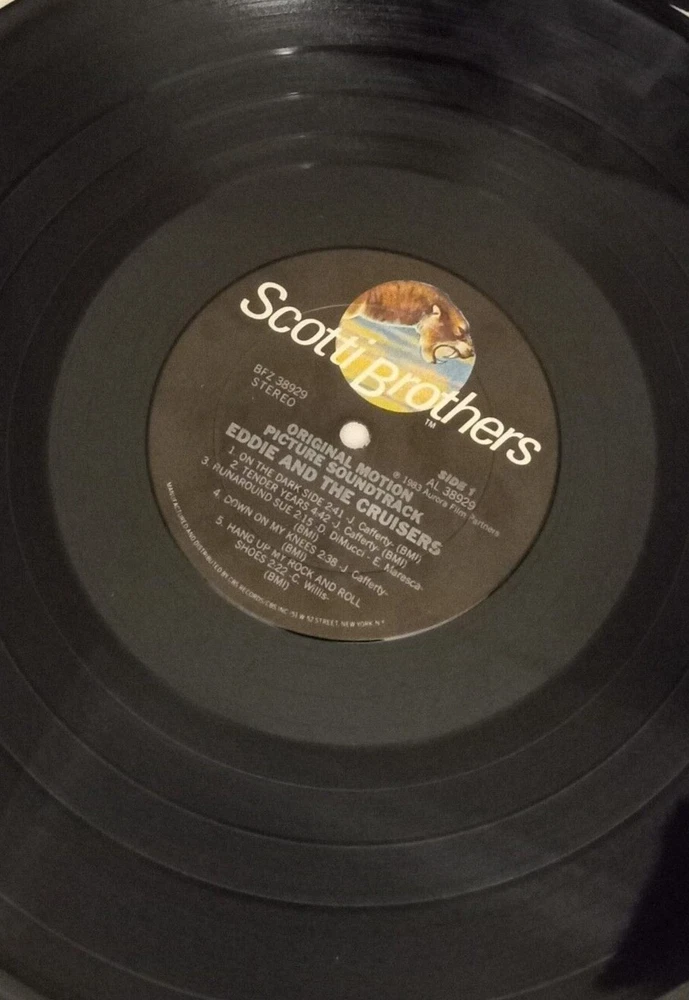 Artist:VariousRecord Size:12"Format:AlbumFeatures:Original CoverSpeed:33 RPMStyle:1980sRecord Label:Scotti Brothers RecordsRecord Grading:Near Mint (NM or M-)UPC:Does not applyGenre:Rock 'n' Roll, Soundtracks & MusicalsLanguage:EnglishRelease Year:1983Case Type:Cardboard SleeveInlay Condition:Near Mint (NM or M-)Country/Region of Manufacture:United StatesSleeve Grading:Near Mint (NM or M-)Era:1980sMaterial:VinylType:LPgtin13:Does not applyColor:BlackRelease Title:Eddie And The Cruisers : Original Motion Picture Soundtrack