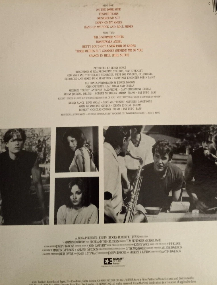 Eddie And The Cruisers : Original Motion Picture Soundtrack LP Record