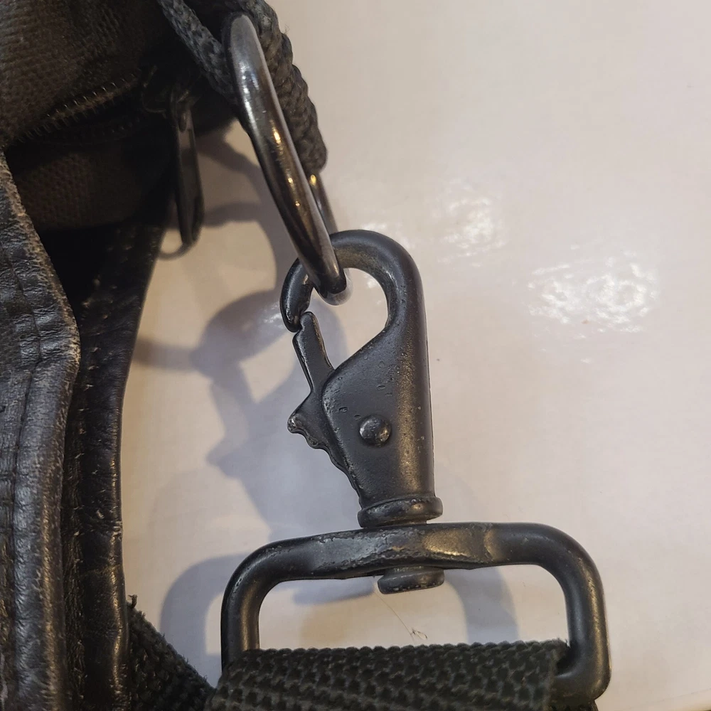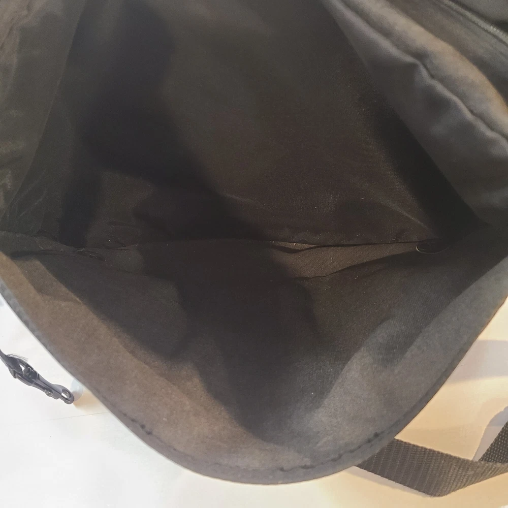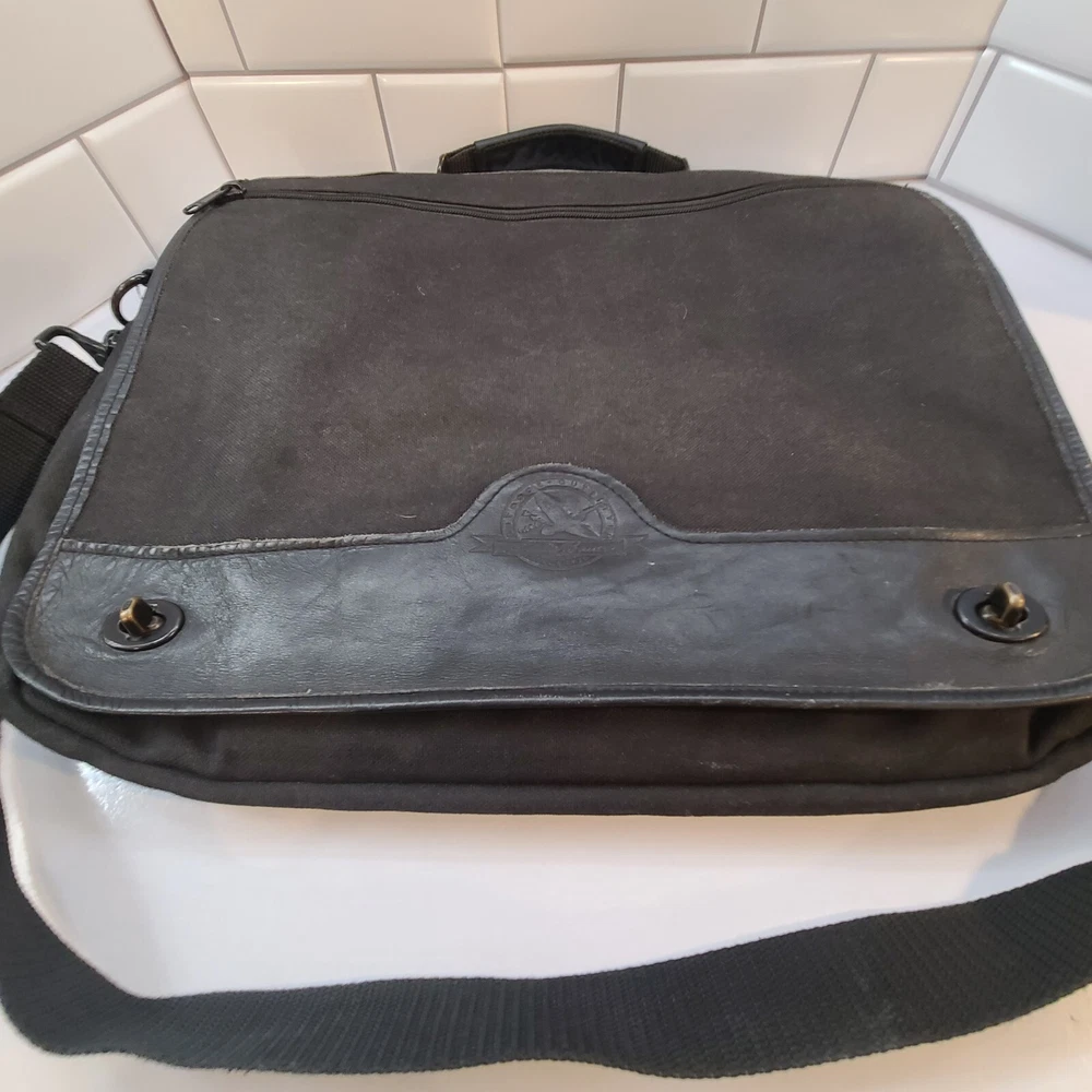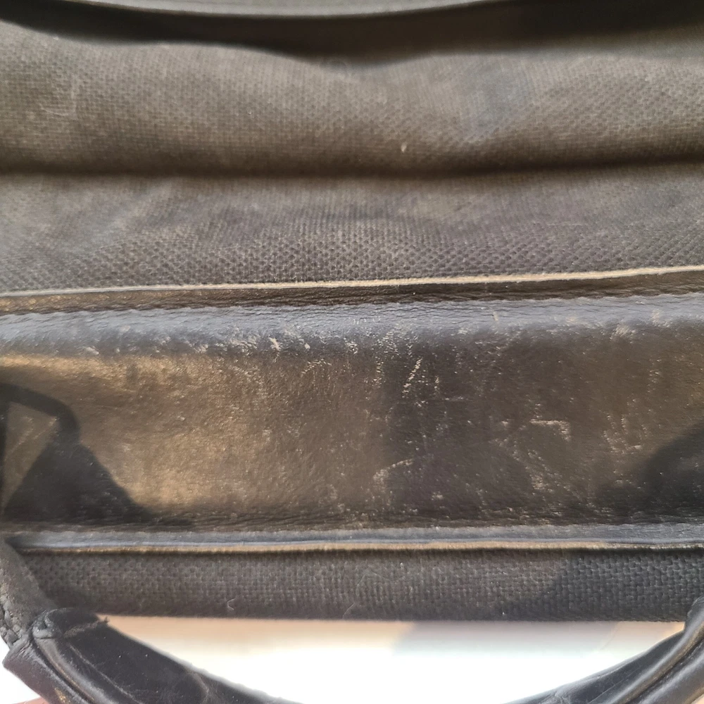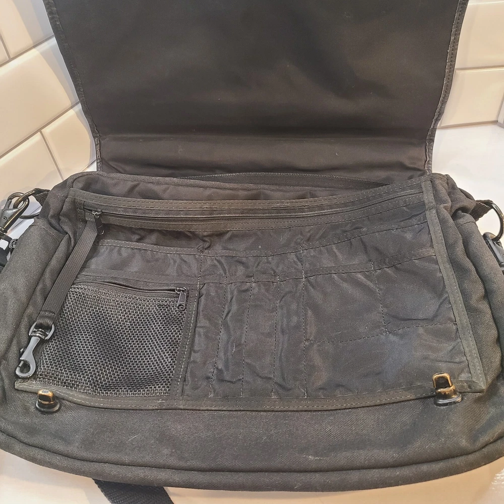 Expandable from 2.5 in depth to 5 in depth via zipper. In good condition. A little bit of wear and dust. See pictures and please let me know if you have any questions.