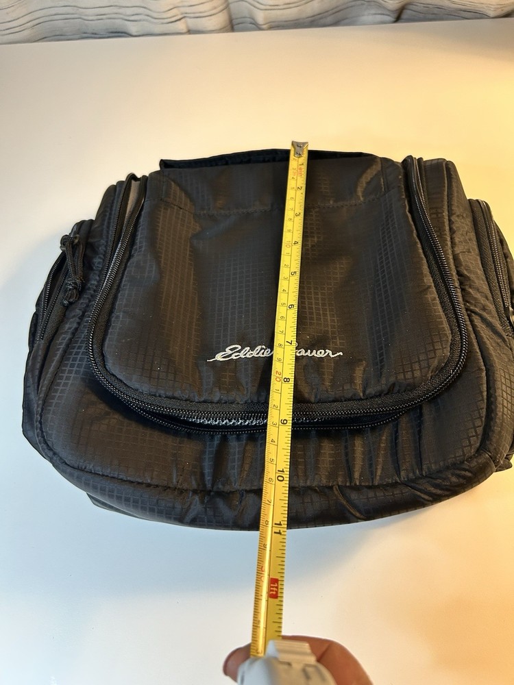 gtin13:400010471393Size:12" x 11" x 4"Gender:Unisex AdultBrand:Eddie BauerMPN:0078Color:BlackPattern:SolidFeatures:Soft CaseMaterial:NylonType:Toiletry KitsUPC:400010471393