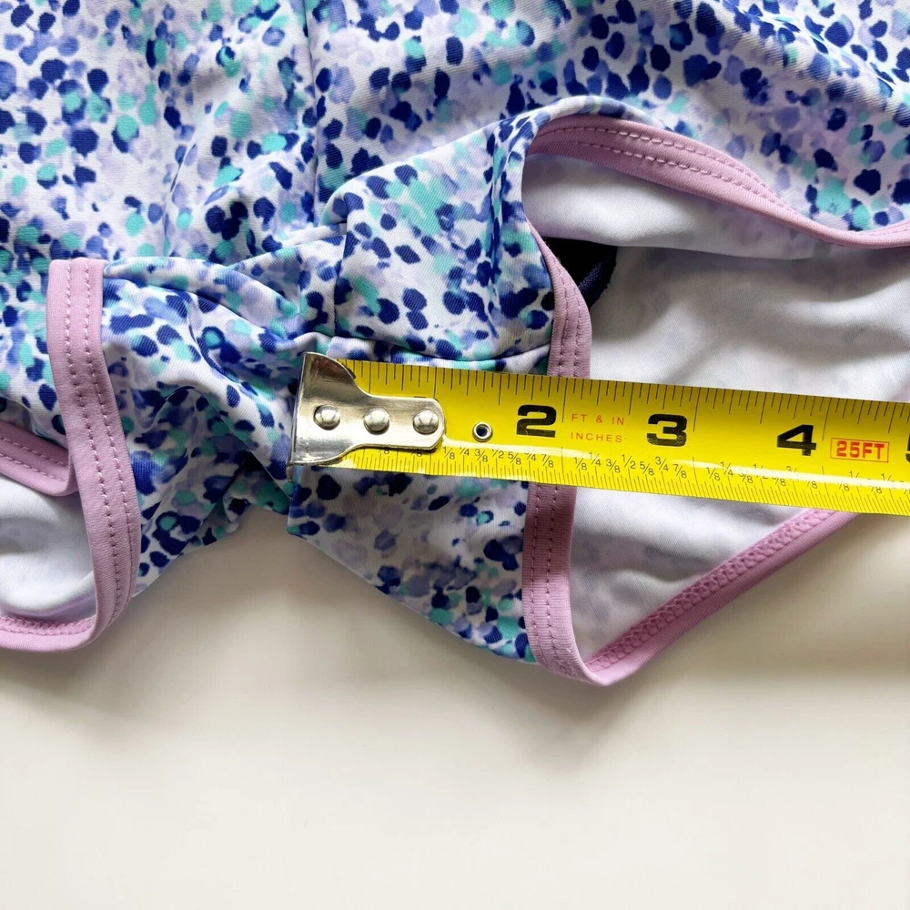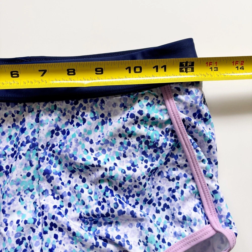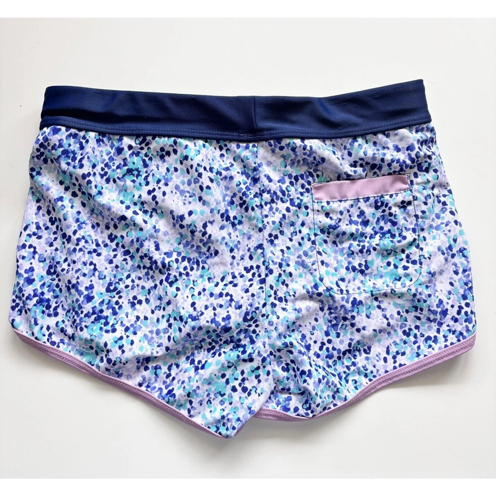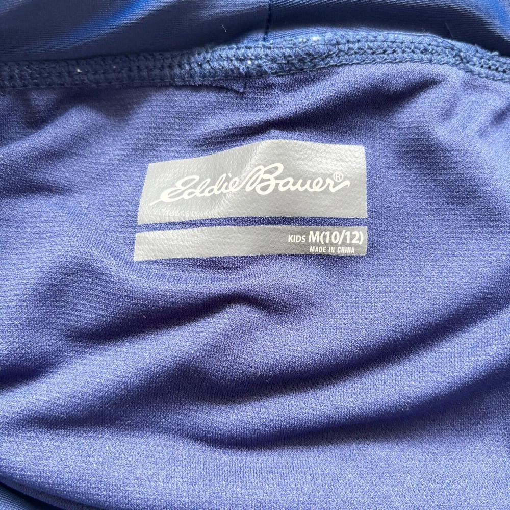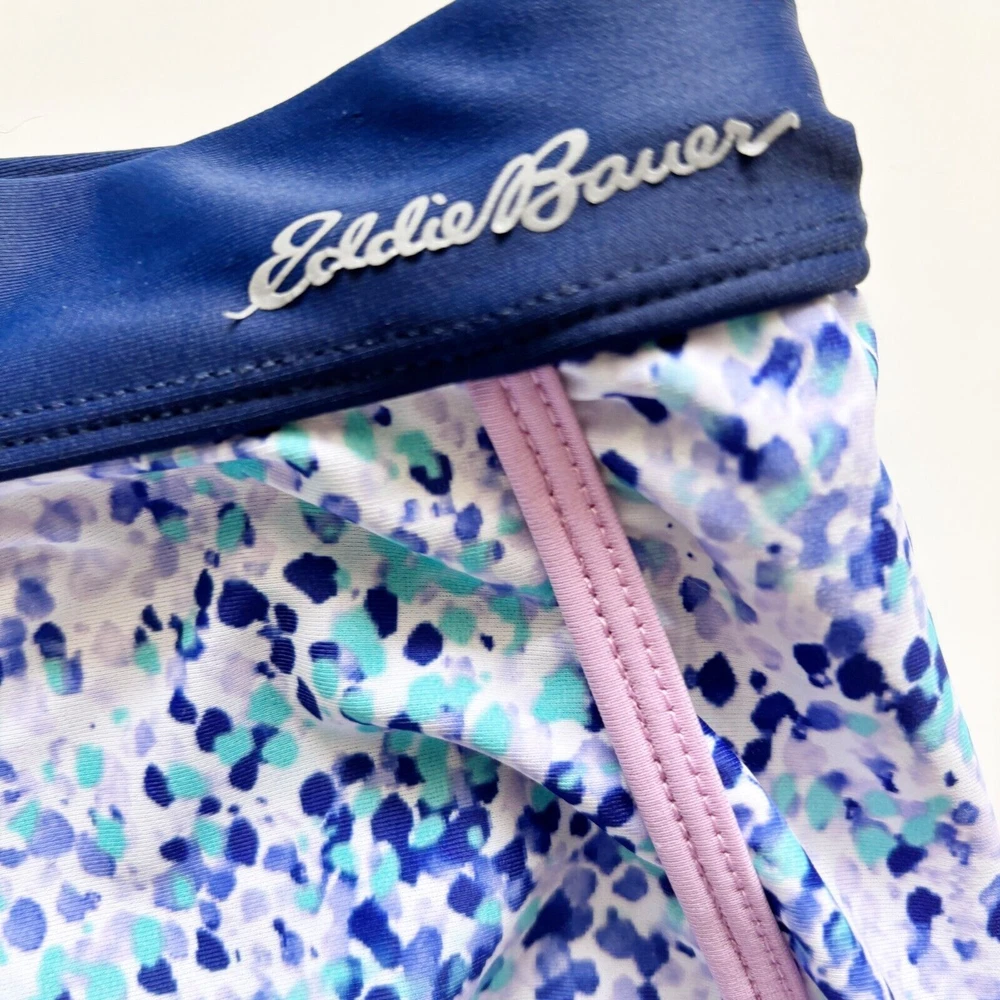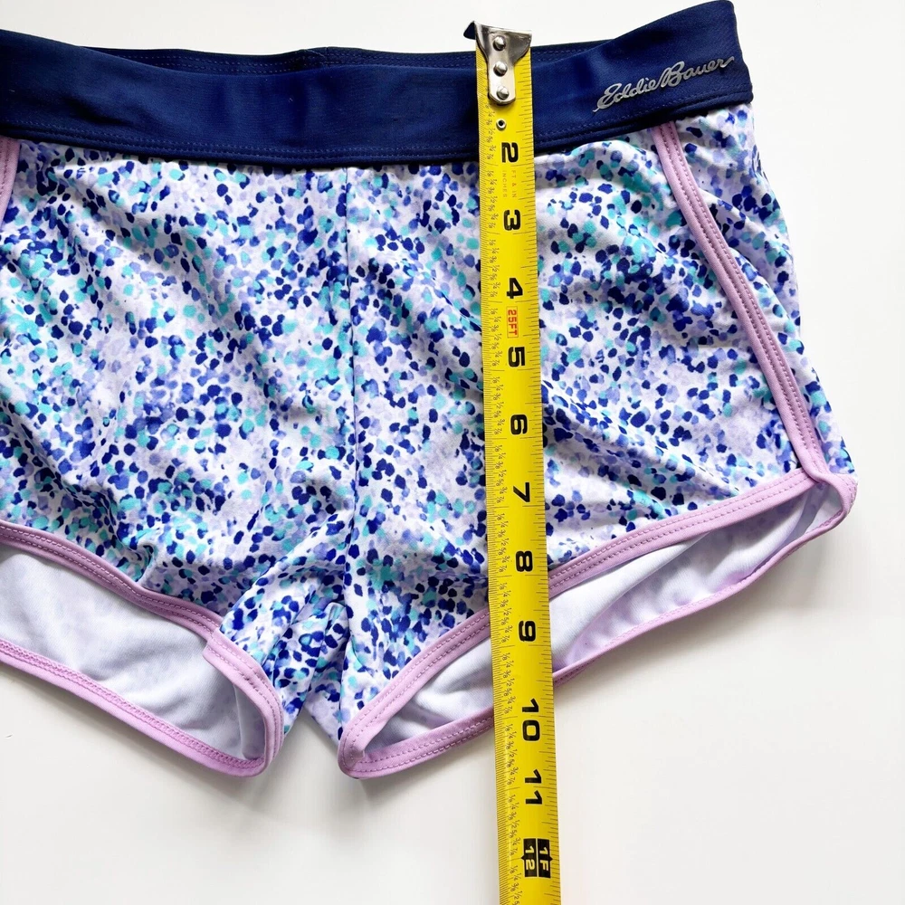 Eddie Bauer swim shorts Girls' size 10-12 Navy elastic waist Purple/blue polka dots Back pocket Briefs liner inside Polyester/spandex Machine washable Excellent pre-owned condition Smoke free environment Pics will indicate wear if any (NONE) Item shown is the exact item you will receive Please check measurements in photos to ensure proper fit before purchase swimming, swimwear, beach, pool, outdoor, water, girl swim shorts, modest swimwear, vibrant, colorful