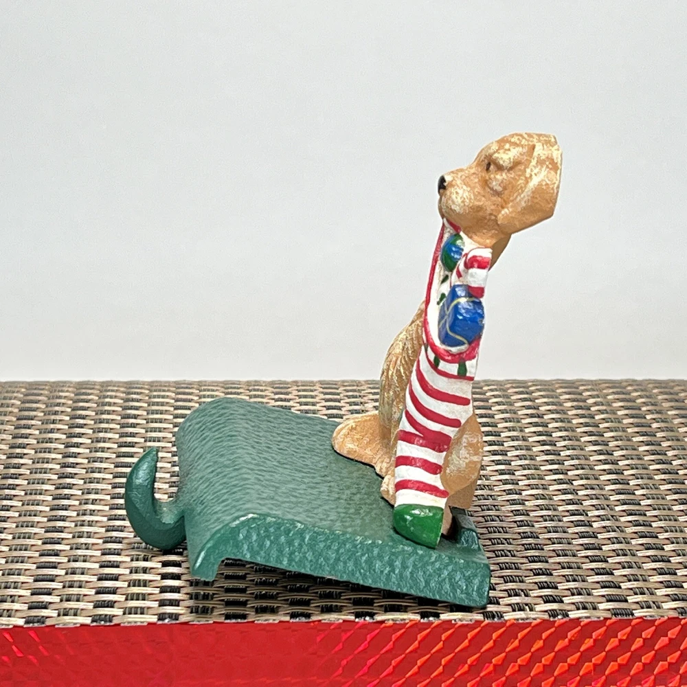 Eddie Bauer Home Cast Iron Dog Christmas Stocking Holder Hanger Golden Retriever Hard to find Vintage Eddie Bauer Home Cast Iron Golden Retriever Stocking Holder Hanger with Stocking Filled with Toys. Item looks to be in near perfect condition and appears as if never used. Bottom non-slip surface and stickers are in original mint condition. No loose or moving parts. Unfortunately I do not have the original box. Item photographed is item you will receive. Item will ship the day after I receive payment. (If time allows often times I can ship same day.) I will package well, ship quickly, provide tracking, and meet shipping requirements Thank you for checking out my listing.