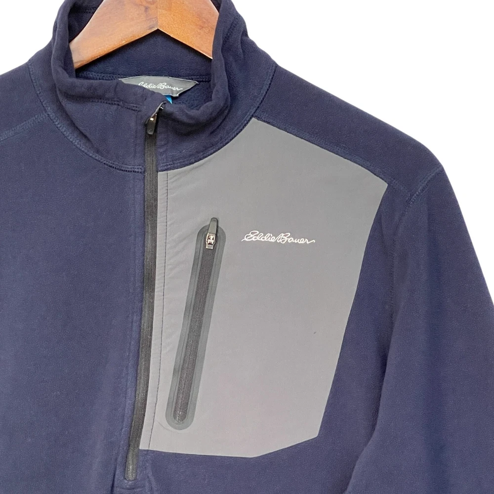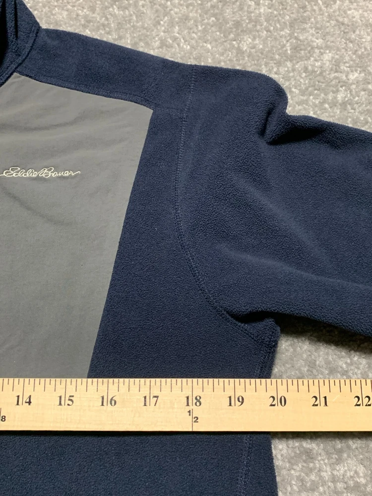 * Eddie Bauer Men First Ascent Fleece Sweater Size M Blue 1/4 Zip Long Sleeve * *Good Pre-owned Condition *Please see photos for approximate measurements (in inches), fabric make, washing instructions, and other notable details. *Purchased items are shipped out next business day.