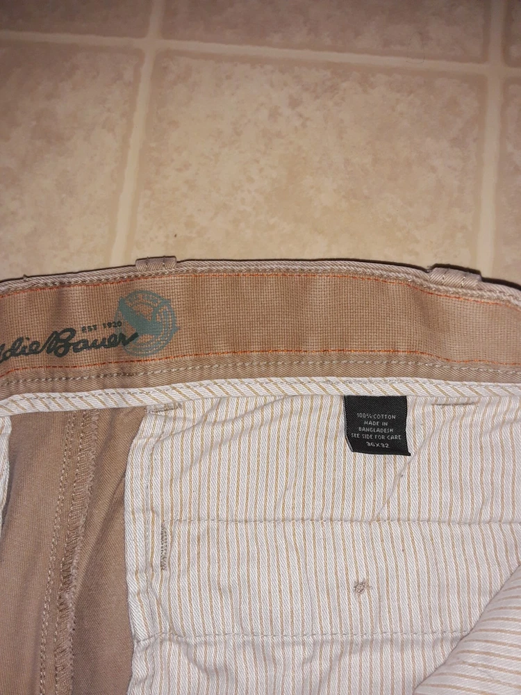 Eddie Bauer Men's Chino Pants Size 36x32 Beige Khaki Classic Fit Waist : 36" Inseam: 32" Rise: 10.5" Leg Opening : 9" Zipper: yes Buttons: 1 : AT Combined Shipment: USA : Highest item shipping cost + $3.00. for each subsequent item.Or, you can purchase as many items as you choose and pay the flat rate of $ for your Priority Mail Large Flat Rate Box which covers your entire order. Please read the disclaimer below. INTERNATIONAL SHIPMENTS: Highest item shipping cost [+ Item Weight.] for each subsequent item. Please read the disclaimer below. DISCLAIMER on Shipping Costs: Our intention is to keep our shipping costs as low as possible. However, depending on the item purchased (weight) and the destination, shipping rates can vary; especially 30 Day?s No Questions Asked Returns Policy: Your satisfaction is very important to us. We have a 30 days NO QUESTIONS ASKED returns policy. The item must be returned in the condition in which it was purchased. If there are labels/tags they should not be removed. If they are, the item will be sent back to you. ANY SHIPPING COSTS WILL NOT BE REFUNDED. BOTH WAYS, receiving and any returns. Please contact us for the return shipping address and authorization. ALL COMMUNICATIONS MUST BE IN WRITING & TAKE PLACE THROUGH THE EBAY SITE ONLY. No private direct email correspondence. A customer care rep. will respond to you within 24 hrs (Mon-Fri). Once we have received the merchandise and inspected it, please allow 72 hours for a refund to be issued. NO See my other listings for more great items! We accept PAYPAL. Also we have a virtual terminal with PayPal through which we can accept Visa, MasterCard, Amex, and Discover. If you do not have a PayPal account, it takes virtually minutes to open International shipments: PLEASE DO NOT PAY until we determine your shipping costs. Most of our items also have an International Flat-Rate. Although, if due to the destination or the weight we are unable to honor the rate mentioned in the item?s listing, we will cancel your order and leave you positive feedback. Usually we use the US Postal Service. The best international rate for an international shipment is First Class (up to 4 lbs.)If your items exceed 4 lbs. we may pack them into two separate packages (and notify you of this).You still are eligible to take advantage of the combined shipping rates, even if we have packed them into two separate packages. The fees for packaging, shipping, insurance, Customs Duty Charges on international shipments are all the responsibility of the Buyer and are not included in the purchase price. If the item(s) are gifts, we could indicate ?GIFT? on the customs form so you would avoid paying more on duty.