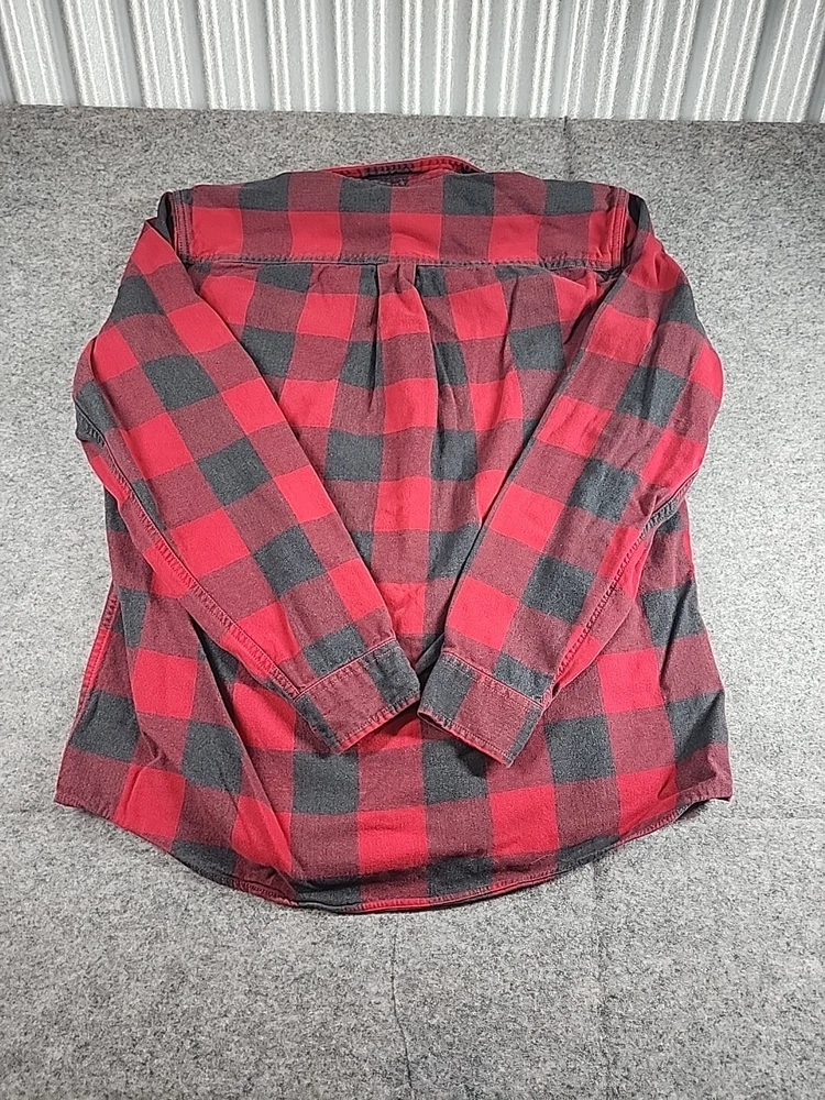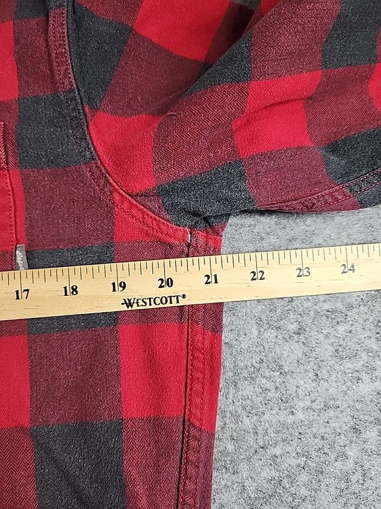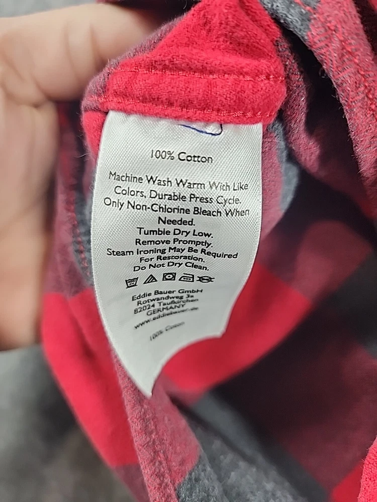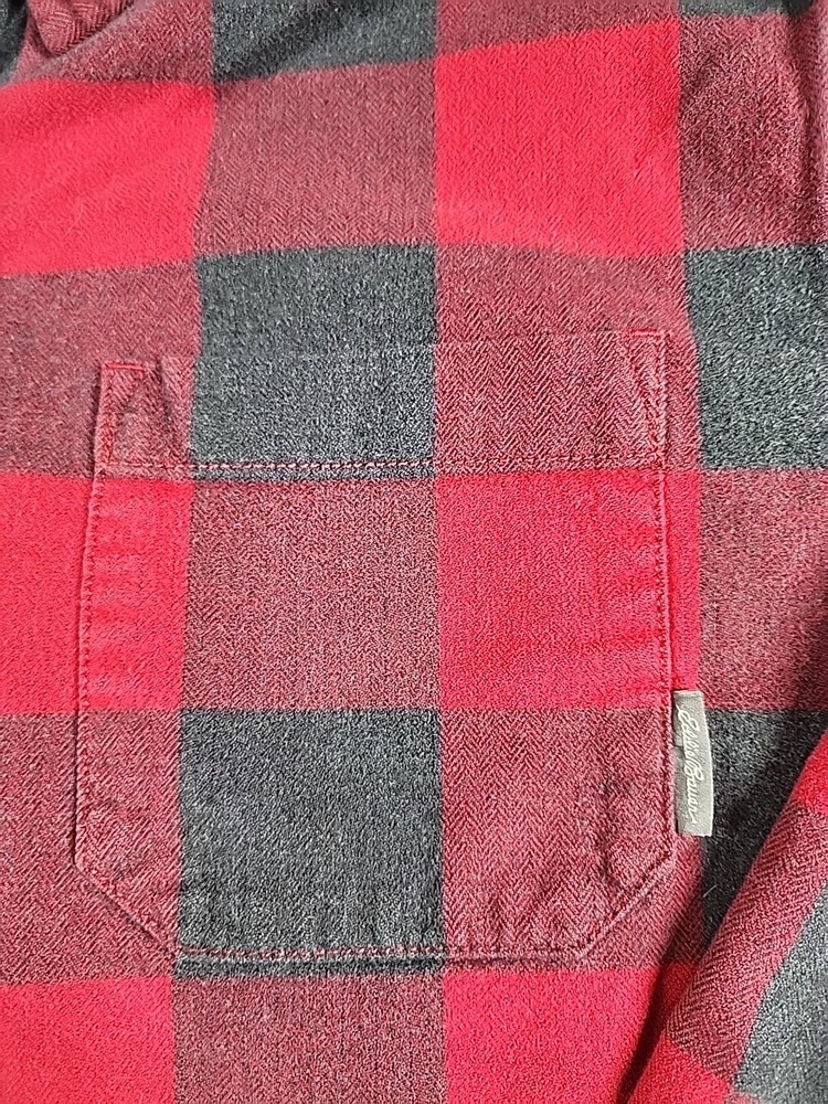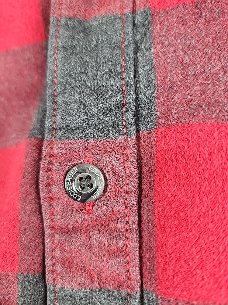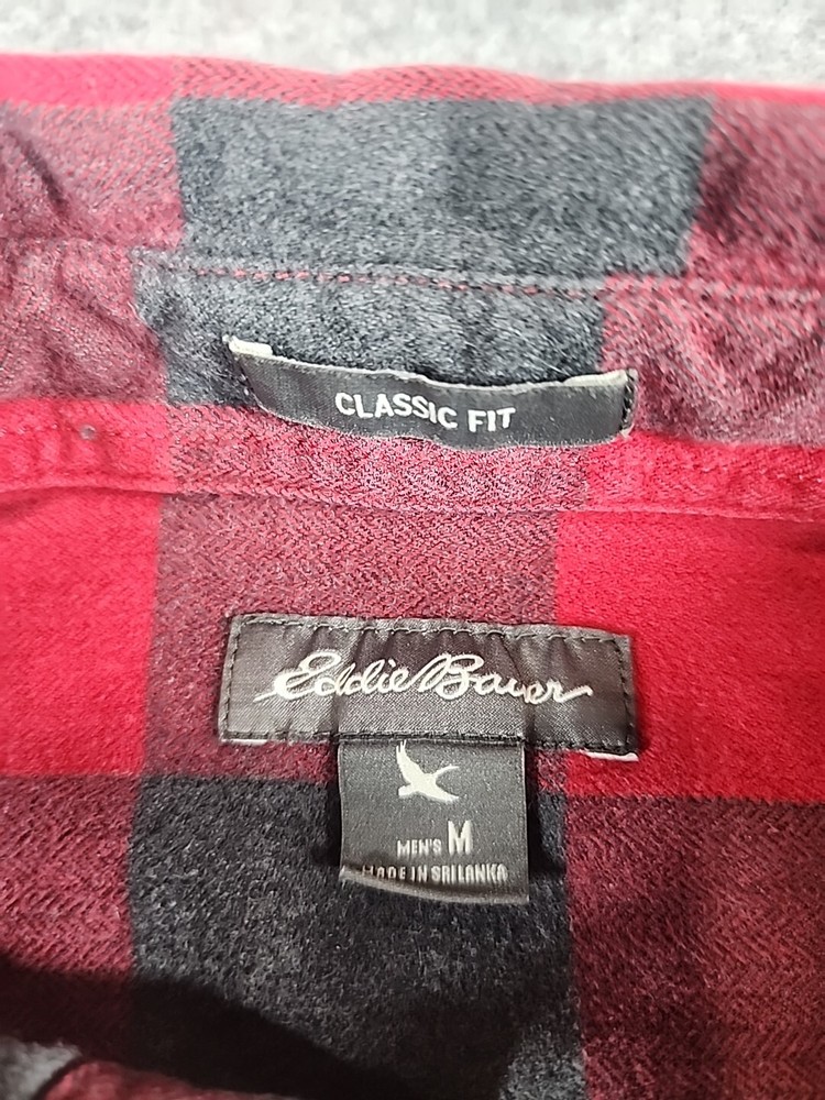Pre-Owned... See Pics for Condition and Measurements.. Eddie Bauer -Flannel Mens Medium Classic Fit Long Sleeve Button Up Plaid ..Black/ Red Willing to combine shipping..