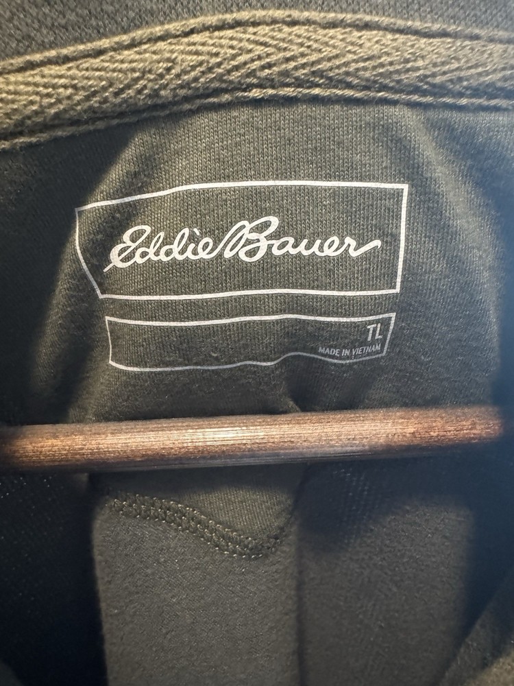 The Eddie Bauer Men's Quarter Zip/Pullover Sweater in size TL Tall Large Green is a stylish and comfortable addition to any man's wardrobe. Made from a blend of 17% polyester and 83% cotton, this tight-knit sweater features a solid green color and long sleeves, making it perfect for casual occasions during the winter, fall, and spring seasons. The pullover style and regular fit ensure ease of wear and a classic look. Machine washable for easy care, this sweater is a versatile and practical choice for everyday wear.