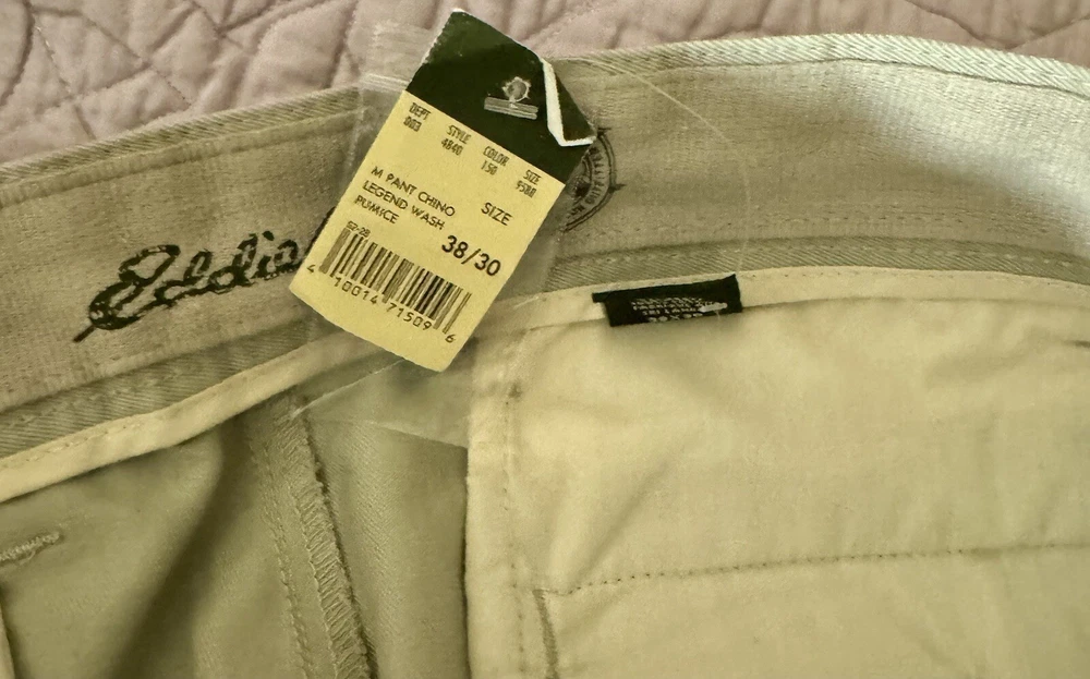 Elevate your wardrobe with these Eddie Bauer Legend Wash Chino pants in beige. Complete with a zip closure and flat front design, these classic fit pants are perfect for any occasion, whether it's a wedding, cocktail party, or formal event. Made from high-quality cotton canvas fabric, these pants are not only stylish but also comfortable to wear, with features such as pockets to keep your essentials close at hand. New with tags and in perfect condition With a waist size of 38 inches and inseam of 30 inches, these pants are a regular fit and have a straight leg style. The accents of buttons and zippers add extra flair to these solid patterned pants. The theme of these pants is American classic, making them a perfect addition to any wardrobe.
