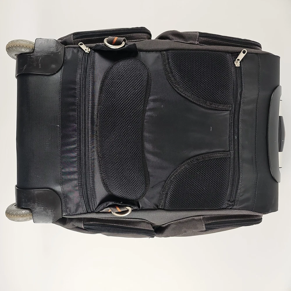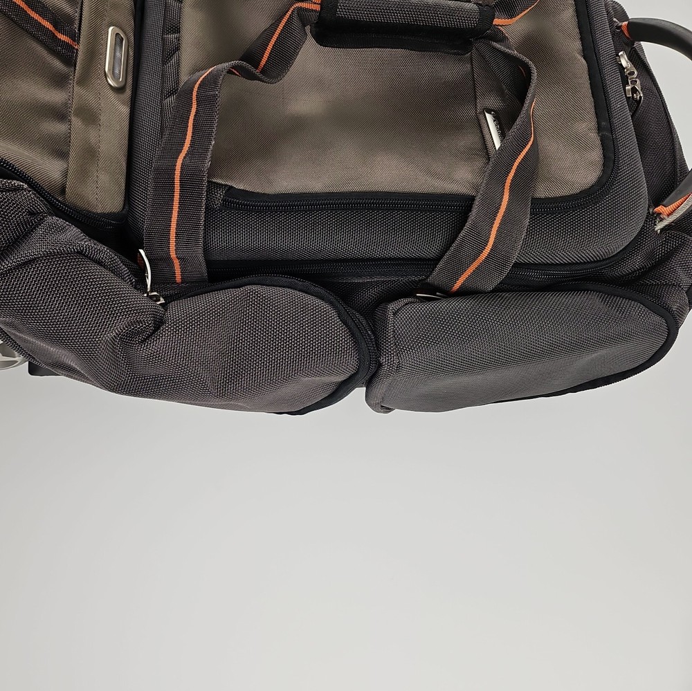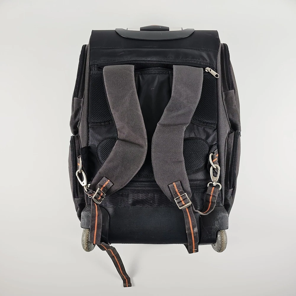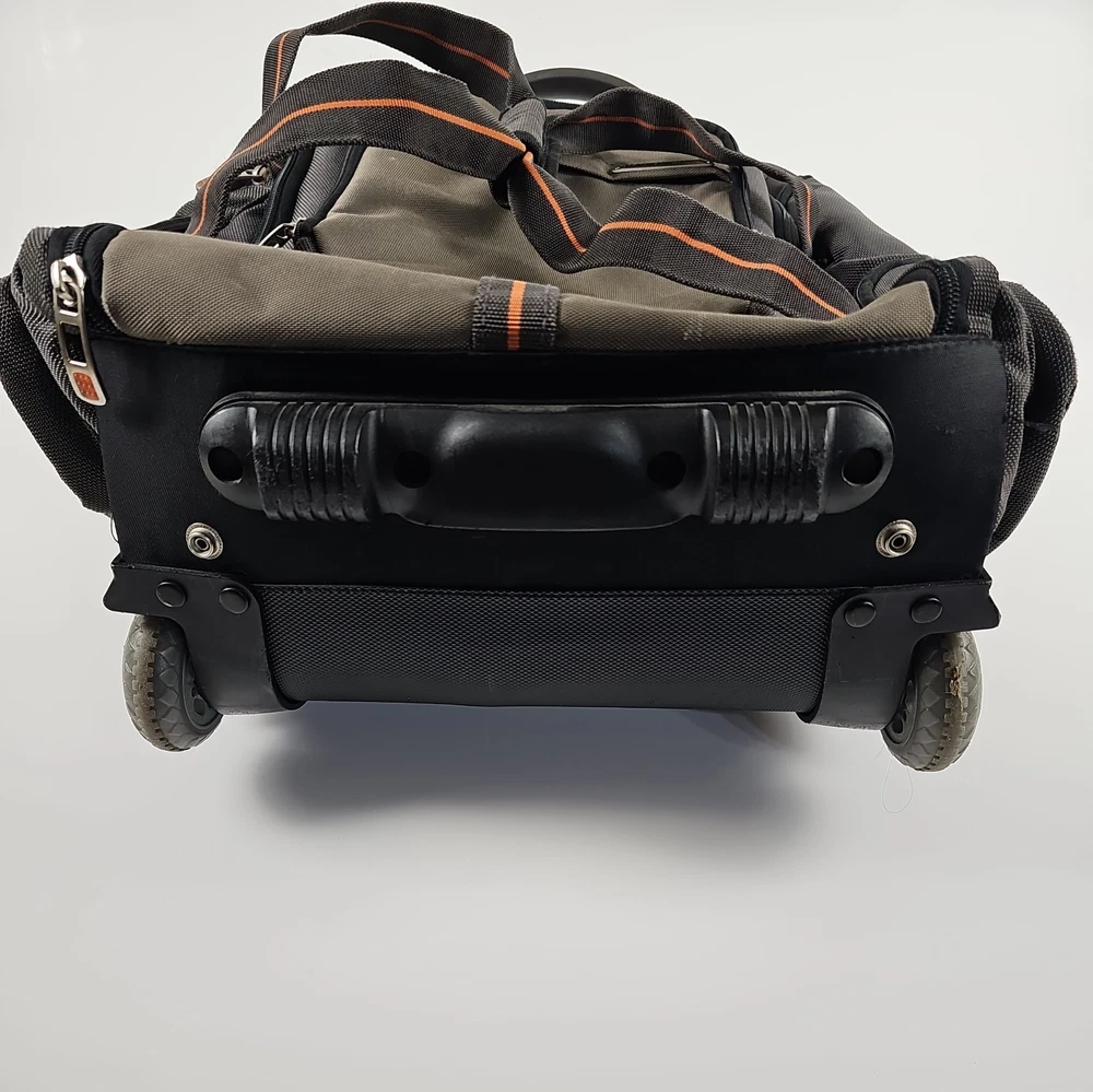 The Eddie Bauer "Silverton" Convertible Rolling Carry On is a versatile luggage piece that functions as both a rolling carry-on duffel bag and a backpack, featuring hideaway straps and a retractable handle. This specific model is no longer sold new by Eddie Bauer and is typically only available as a pre-owned item through online marketplaces.Key Features and DesignConvertible Design: The bag can be used as traditional rolling luggage with a retractable handle, or the backpack straps can be taken out for hands-free carrying.Storage: It includes a dedicated shoe compartment and plenty of additional storage pockets on the exterior, all secured with heavy-duty zippers.Durability: The bag is described in pre-owned listings as being very heavy-duty.Additional Accessories: Some versions include a rain cover that stores away in one of the pockets.Aesthetics: The bag typically features a two-tone grey color scheme with subtle orange accents.