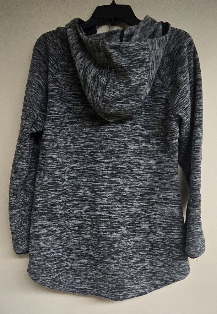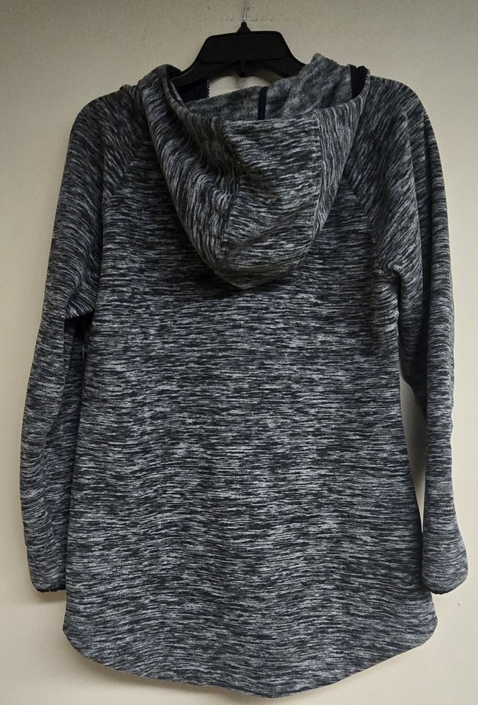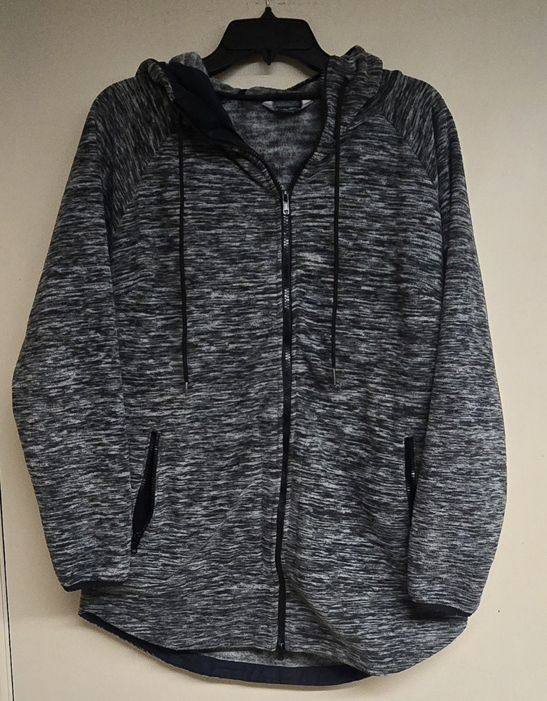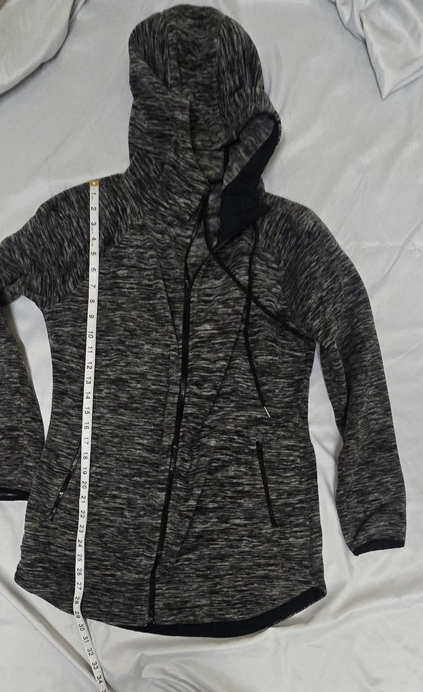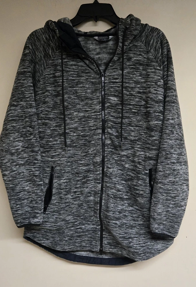 The Eddie Bauer Size Medium Women's Full-Zip Hoodie in black, white, or grey features a solid pattern with long sleeves and a V-neckline for added style. Made from polyester fleece, this hoodie is perfect for active wear and is machine washable for easy care. The hoodie is designed for a regular fit and is ideal for seasons such as winter, fall, and spring. It also includes a logo accent, making it a stylish and practical choice for outdoor activities like hiking.