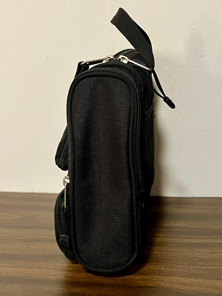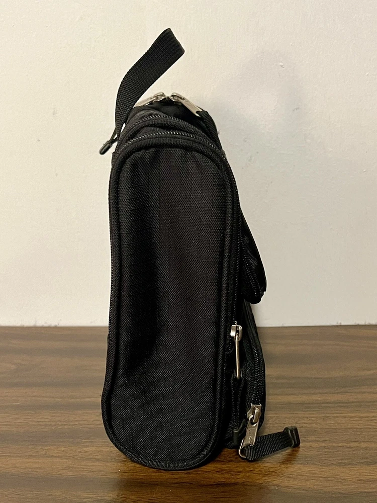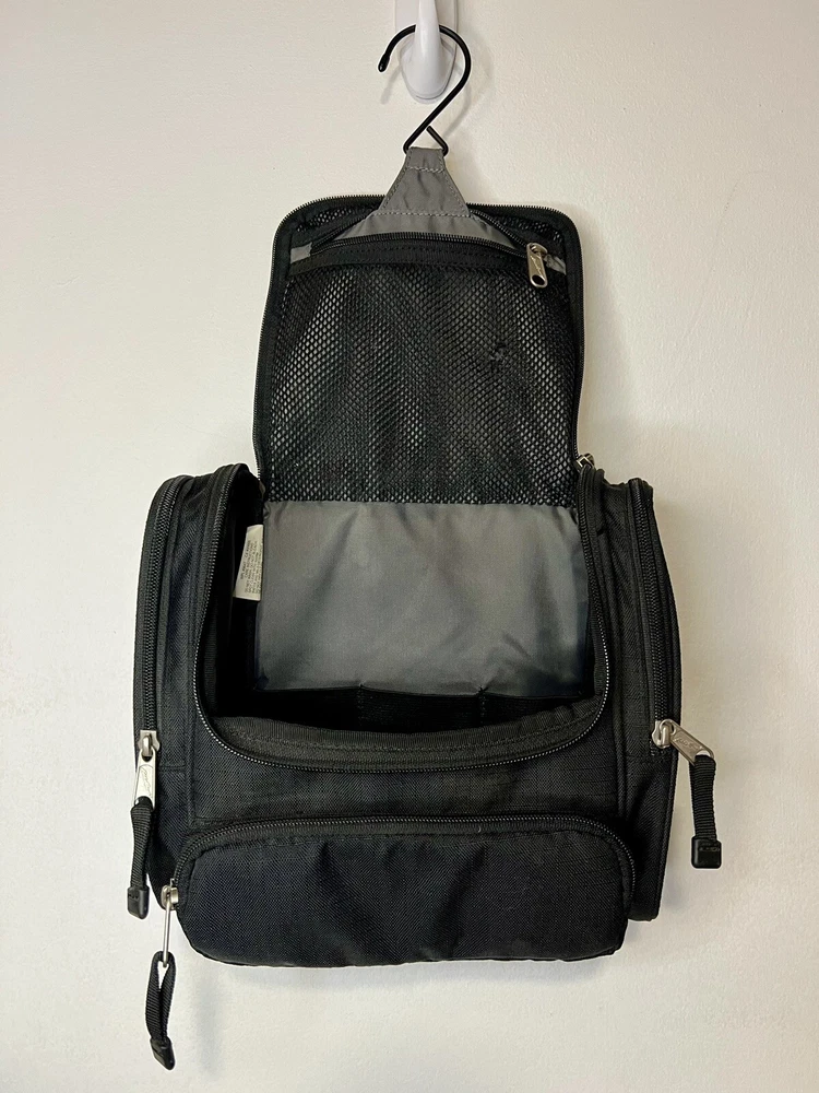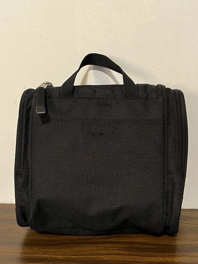 Eddie Bauer Toiletries Travel Bag. Black with inside Hanging Hook. Aside from the main compartment, it has a zippered pocket on the front and one on each side, and a hook and loop closure on the back. The main compartment has a mesh zippered enclosure on the flap that also holds the hook (please zoom in to see very small hole in mesh), 3 banded holders, and one mesh pocket on each side. Please take the time to carefully review all photos and ask any questions prior to purchase. Pictures are actual photos of the item you will receive. I do my best to describe colors but please be aware that color descriptions are my opinion, also cameras and lighting can make items appear slightly brighter or darker than reality. Pre-owned items are cleaned appropriately. Clothing is laundered. Other items are spot cleaned or disinfected whenever possible and to the best of my ability. Shipping: We ship items within 3 business days, but typically in less than 24 hours. Returns: Most of our listings are pre-owned items. They may show signs of wear or use. Items are inspected carefully and we don’t sell things we wouldn’t personally be happy with. We try to be accurate in noting obvious flaws. However, If something is received not as you expected, please contact us. Thank you