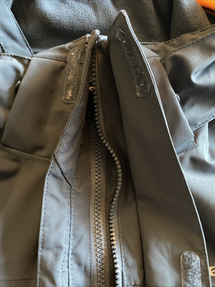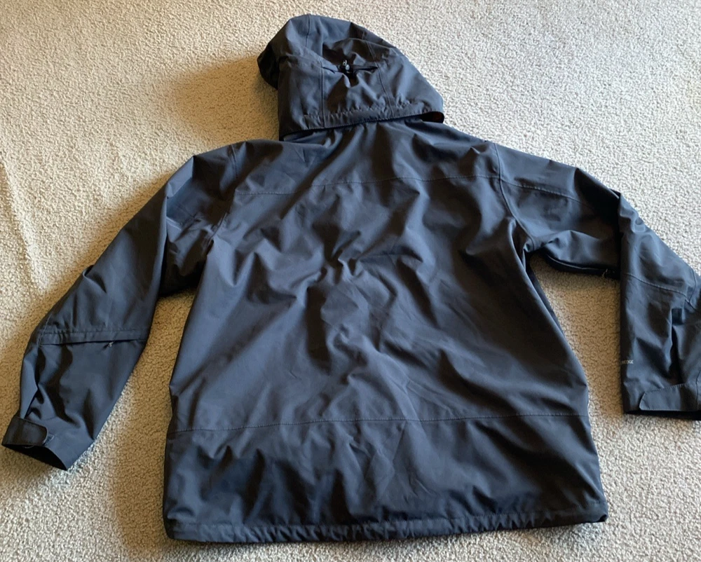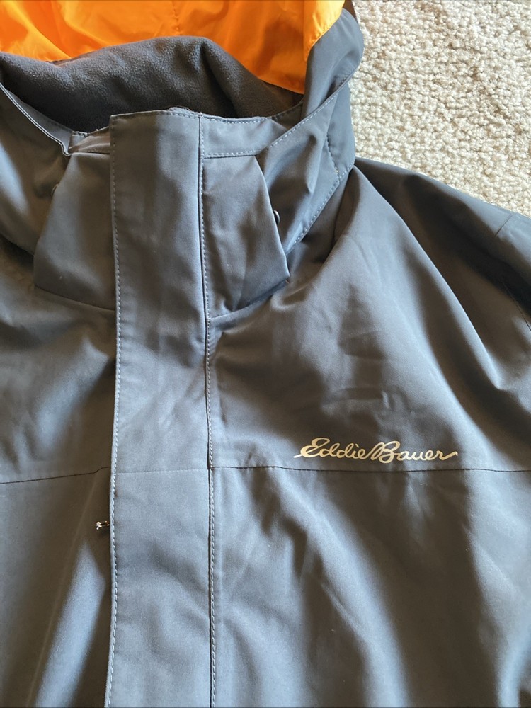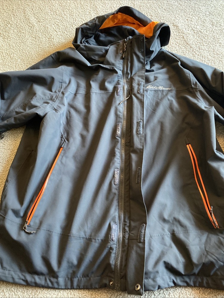 Eddie Bauer WeatherEdge jacket in grey. Double zipper. See photos. No major defects. Some minor lint in some of the Velcro, but nothing major. AI description below. The Eddie Bauer WeatherEdge Plus Jacket is a men's 2XL parka style jacket made of polyester. It features a hood, snap closure, and a zip pocket for added convenience. The jacket is designed for weather protection, making it a practical and stylish choice for outdoor activities in colder climates. The gray color adds versatility to the jacket, making it easy to pair with various outfits.