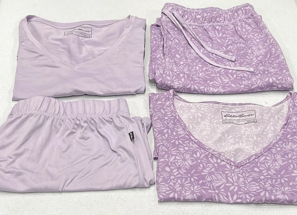 Eddie Bauer Women's 4-Piece Sleep Set Tank, T-Shirt, Shorts & Pants Size: X-Large Color: Purple Content: 95% Polyester / 5% Elastane