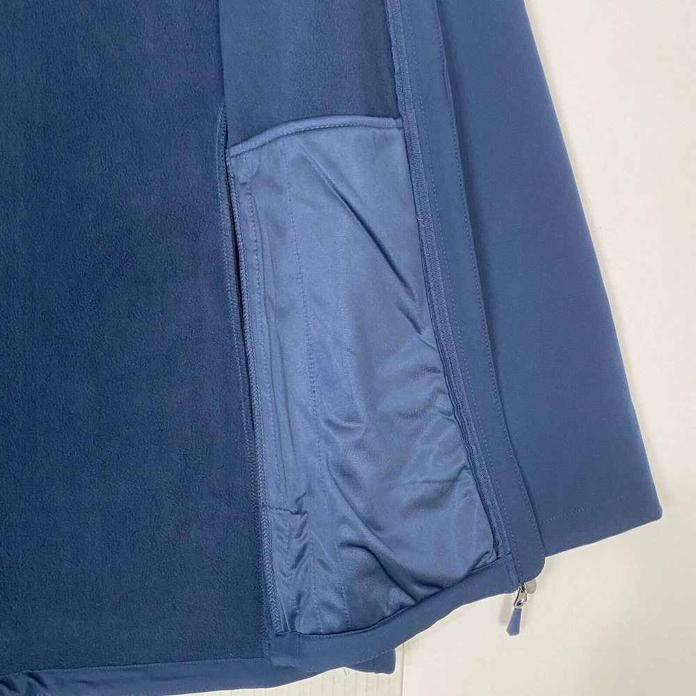 This jacket is a dream—super soft, stretchy, and fits perfectly. The blue color is even prettier in person, and the pockets are so handy. Lightweight but warm enough for chilly days. Looks brand new, no flaws at all. Super happy with this purchase!
