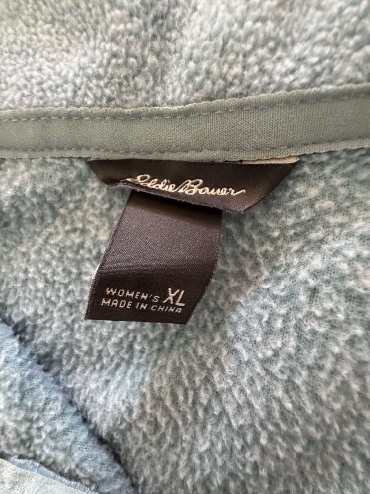 The Eddie Bauer Women's Long Sleeve Polar Fleece Quarter Zip Pullover in XL Blue is a cozy and stylish sweatshirt perfect for activewear. Made of polyester fleece fabric, this pullover features a mock neck, long sleeves, and a solid blue color. The 1/2 zip closure adds a touch of convenience, making it easy to put on and comfortable to wear. Ideal for women looking for a versatile and comfortable pullover option from a trusted brand like Eddie Bauer.