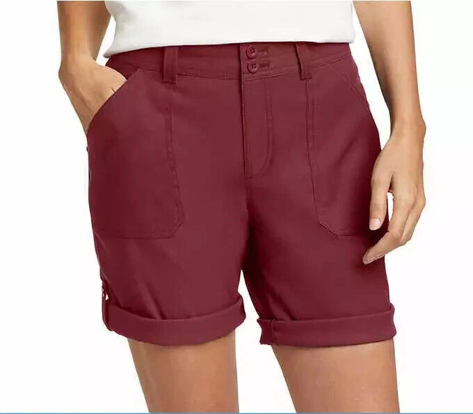 Eddie Bauer Women’s Rolled Hem Bermuda Shorts Size: 10 Color: Red Content: 95% Nylon / 5% Spandex