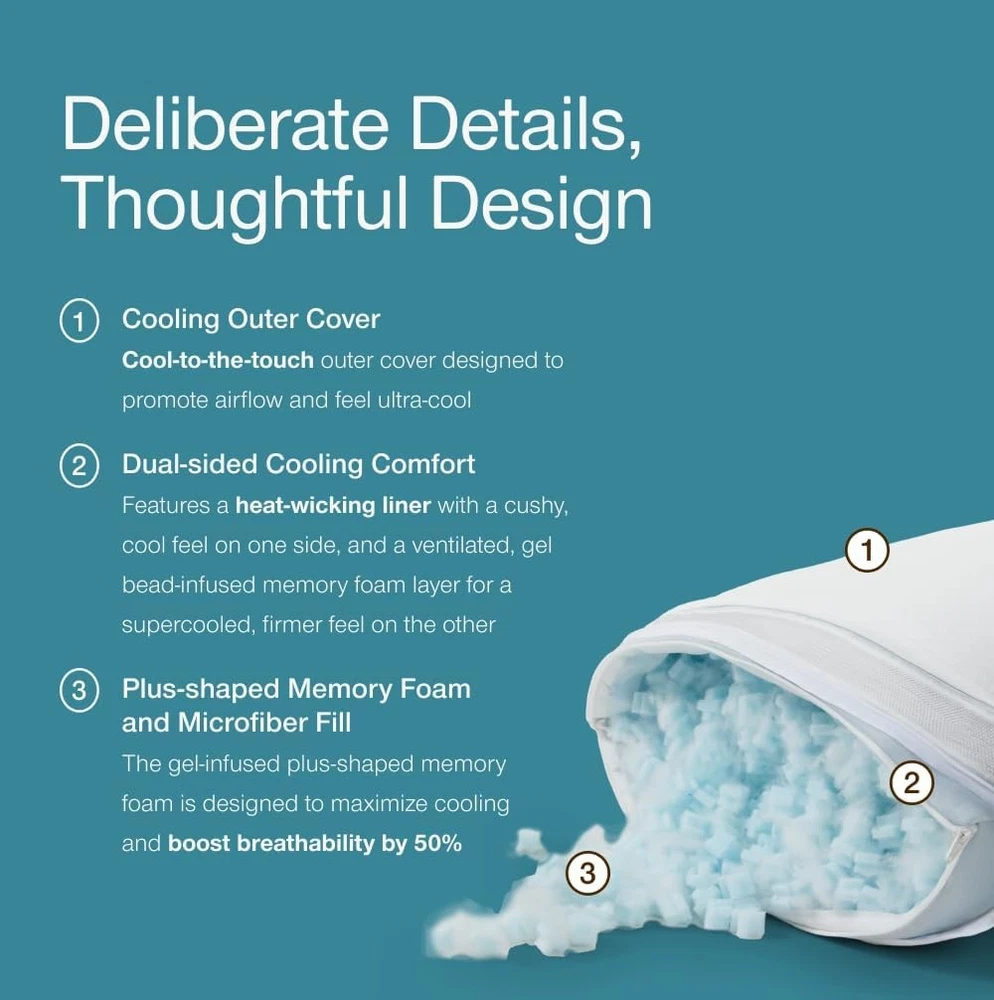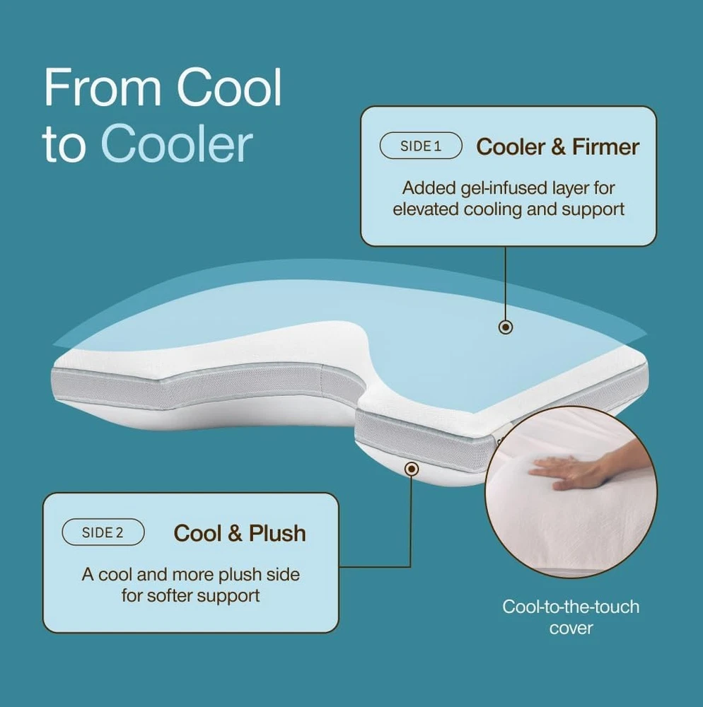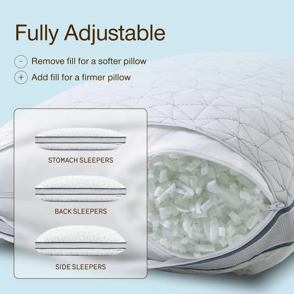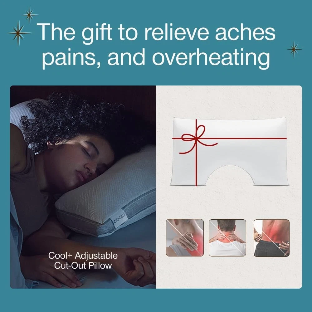 Product description Sleep fresh and comfy with our ultra-soft, breathable pillow cover that helps regulate temperature for all-night cozy comfort. Customize loft and firmness to your perfect comfort level and keep it fresh with an easy-to-clean, removable, machine washable cover. Wake up feeling fresh each morning with our gel-infused memory foam blend, offering plush comfort and adaptive neck and head support. The 2-inch gusset design keeps fill evenly distributed, delivering consistent, edge-to-edge support for every sleep position. Previous page Next page 1 Adjustable 2 Oomph AC Fill 3 Choose Your Level of Cool Find Your Perfect Coop Pillow Eden Buying Options Original Add to Cart Cool+ Add to Cart Crescent Add to Cart Cut-Out Add to Cart Maternity Pillow Buying Options Body Pillow Buying Options Customer Reviews 4.3 out of 5 stars 14,401 4.4 out of 5 stars 64,279 4.3 out of 5 stars 14,401 4.4 out of 5 stars 64,279 4.4 out of 5 stars 64,279 4.4 out of 5 stars 3,066 4.4 out of 5 stars 3,066 Price $84.00 $ 84 . 00 $62.90 $ 62 . 90 $105.85 $ 105 . 85 $73.26 $ 73 . 26 $73.26 $ 73 . 26 $79.20 $ 79 . 20 $79.20 $ 79 . 20 Size Queen Queen Queen Queen Queen Full Body Full Body Perfect For Back, Stomach and Side Sleeper Back, Stomach and Side Sleeper Back, Stomach and Side Sleeper Side and Back Sleeper Side Sleeper Side Sleeper Side Sleeper Dimensions 17" x 27" 19" x 29" 17" x 27" 18" x 28" 18" x 28" 9" x 60" 20" x 54" Fill Type Memory Foam With Cooling Gel Cross-cut Memory Foam Plus-Shaped Gel Memory Foam Cross-Cut Memory Foam Cross-Cut Memory Foam Cross-Cut Memory Foam Cross-Cut Memory Foam Customizable Comfort ✔ ✔ ✔ ✔ ✔ ✔ ✔ Extra Fill Included ✔ ✔ ✔ ✔ ✔ ✘ ✘ Machine Washable Cover ✔ ✔ ✔ ✔ ✔ ✔ ✔ Certifications CertiPUR-US & Green Guard Gold CertiPUR-US & Green Guard Gold CertiPUR-US & Green Guard Gold CertiPUR-US & Green Guard Gold CertiPUR-US & Green Guard Gold CertiPUR-US & Green Guard Gold CertiPUR-US & Green Guard Gold On Nov 27, 2025 at 23:09:37 PST, seller added the following information: On Jan 15, 2026 at 00:16:51 PST, seller added the following information:
