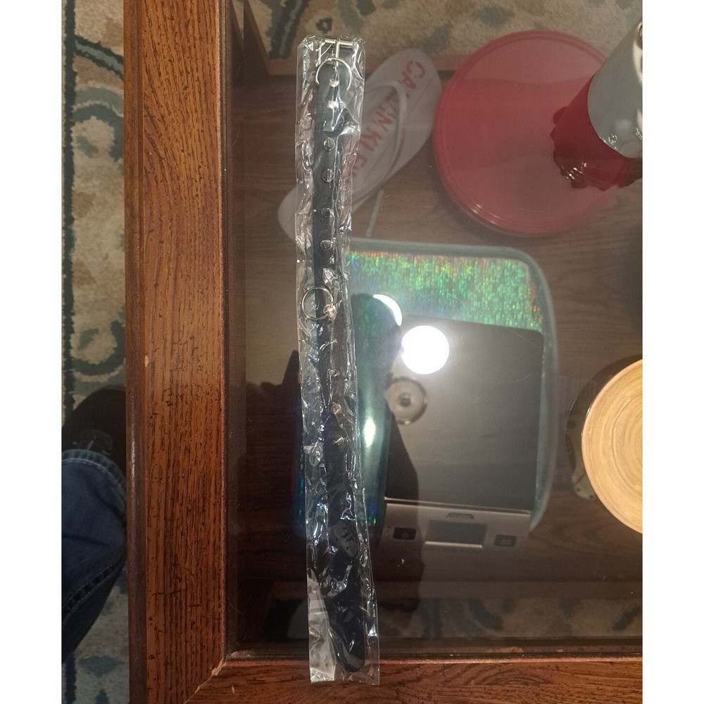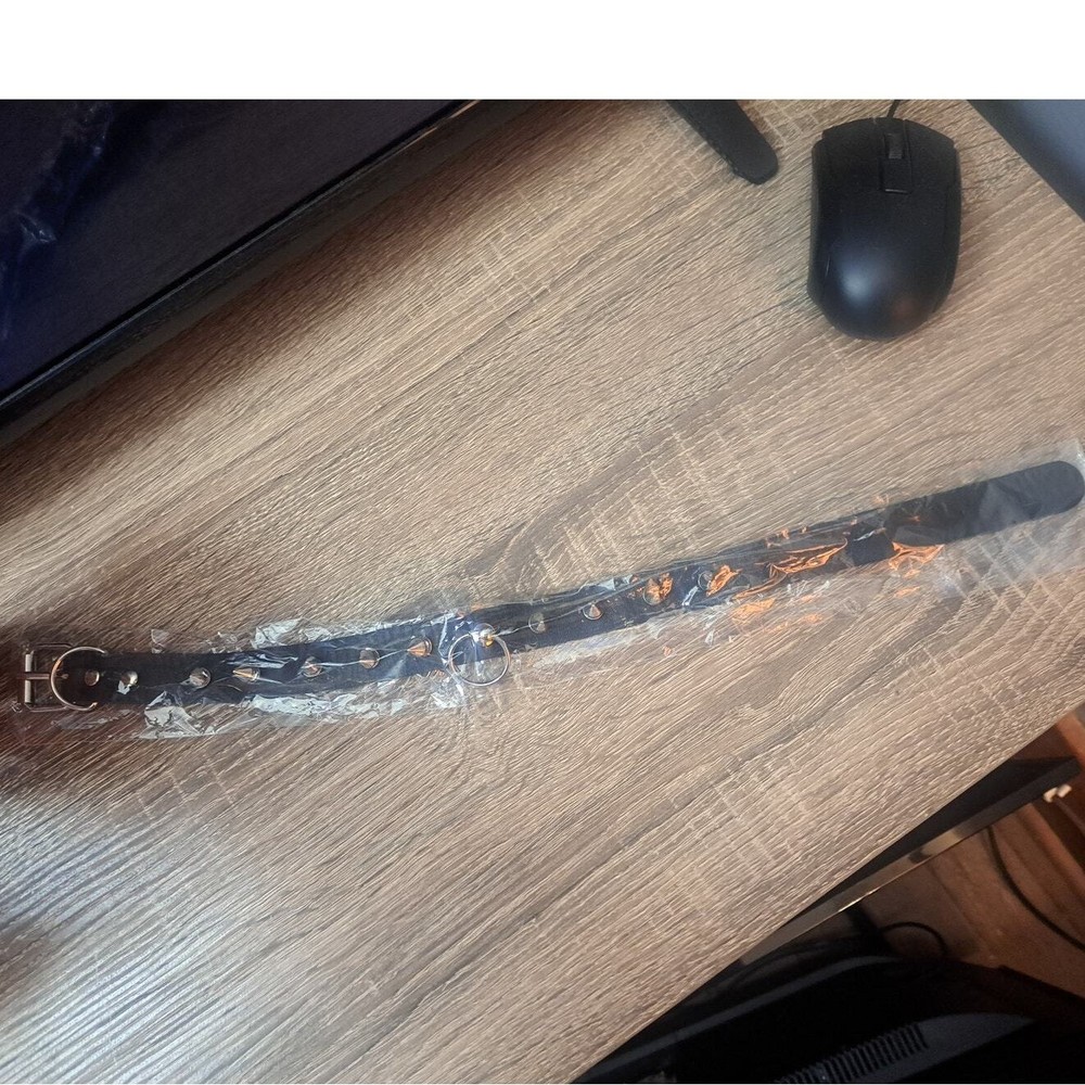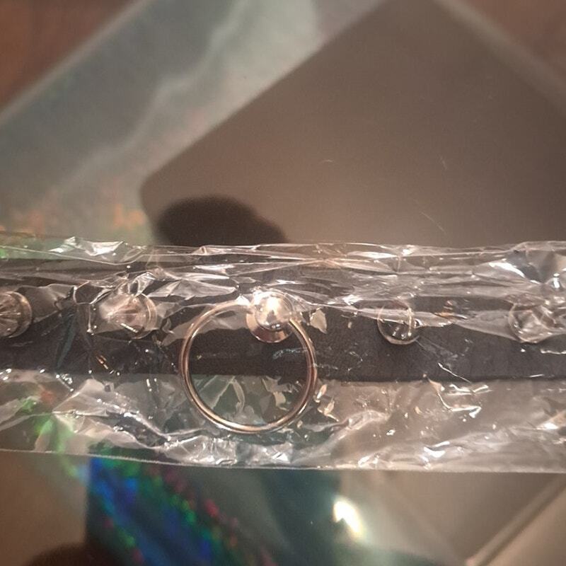 Adjustable Punk Rocker Black Studded Spike Neck Choker Collar with Small Center Ring Detail. New. Will ship fast and with care!