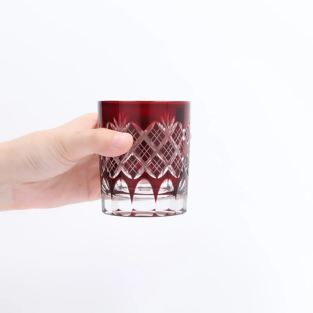 Glassware Type: Whiskey Glass Style: Japanese traditional crafts Color: Red Department: Adults Theme: edo kiriko Design: kasaneyarai Brand: tajima glass Occasion: All Occasions Care Instructions: Hand Wash Only Handmade: YES Shape: Round Material: Glass Country of Origin: Japan Capacity: 280ml Type: Old-Fashioned Glass Service For: 1 Item Height: 90mm Set Includes: 1 × Old-Fashioned Glass (280ml) Features: Rocking Glass Item Width: 76mm