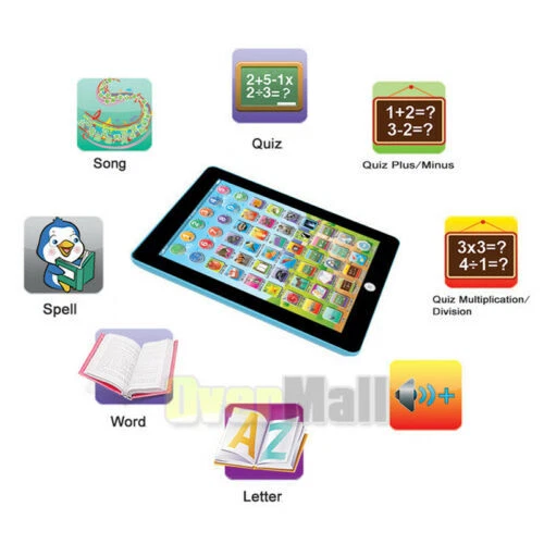 Educational Learning Toys for Kids Toddlers Age 3 4 5 6 7 8 Years Old Boys Girls Kids Children TABLET MINI PAD Educational Learning Toys Gift For Boys Girls Baby √ Ship within 24 hours. √ 100% New & Excellent Quality √ Professional Customer Service . √ Strictly QC, Each set was fully tested before shipping √ Local USPS Fast Shipping From NJ, USA √ Offer delivery with Tracking Number Features: *Made of non-toxic environmental ABS plastic. *Simple function,featuring with Volume +, Volume -, just turn on ON/OFF function,then gentle press, easy for children to operate *No LED which is harm to kids' eyes. *Learning and playing content:Provides funny ways for children to learn 26 A-Z Alphabet Letters, Words Learning and Spelling, Color Learning, Animal Learning, Fruit Learning,Food Learning, Alphabest song and Number song. *Developing baby's emotion,hearing,grip,sensory,hand-eye coordination,visual and other abilities *Great gift for baby toddlers boys and girls for Children's Day, Birthday, Christmas Day, New Year. *Lightweight and portable. Attention: 1.After placed the batteries, Press the Home Button it will be turned ON/OFF,then start your learning by press other Icon. 2.NOT Real iPad,Pressed only!!! No slide! 3.Not with LCD Touch Screen, No Wi-Fi, It's a learning type mini ipad to teach babies and kids in a gaming type. 4.Please note it says on package not suitable for children under 3 years, actually it is suitable for kids age 1-3 playing under adult supervision. Specifications: Materials:Environmental ABS Power:3 x AA batteries ( included) Size: 18.4*14.3*1.8cm Package includes: 1x Mini Learning iPad Toy 3 x AA batteries (Free gift,No extra purchase is better than others without batteries) Payment Shipping About Feedback About us Contact us Payment 1. Paypal Accept. 2. Payment should be sent within 4 (FOUR) days auction closing. Or unpaid dispute will be filed for closing auction. Shipping 1. Fast shipping from NJ, US. 2. Shipping available time: Mon. - Fri. exclude holidays 3. The orders will be handled in 24 hours after payment got. Ship to Paypal Address ONLY. About Feedback If you are dissatisfied for any reason, please do not be quick to leave negative/neutral feedback. We work hard to make sure EVERY CUSTOMER 100% SATISFIED and resolve any problem for you and always leave positive feedback to all our customers. About us 1. Welcome to OverMall, We pride ourselves on providing the outstanding service and high qualtiy products, make our customer feel confident buying online. 2. For the most US address, we offer free standard shipping . 3. By shopping with us, you can guarantee the latest technology for the best possible price. Contact us You are welcomed to contact me for any question. I will reply your email in about 24HRS in business days.