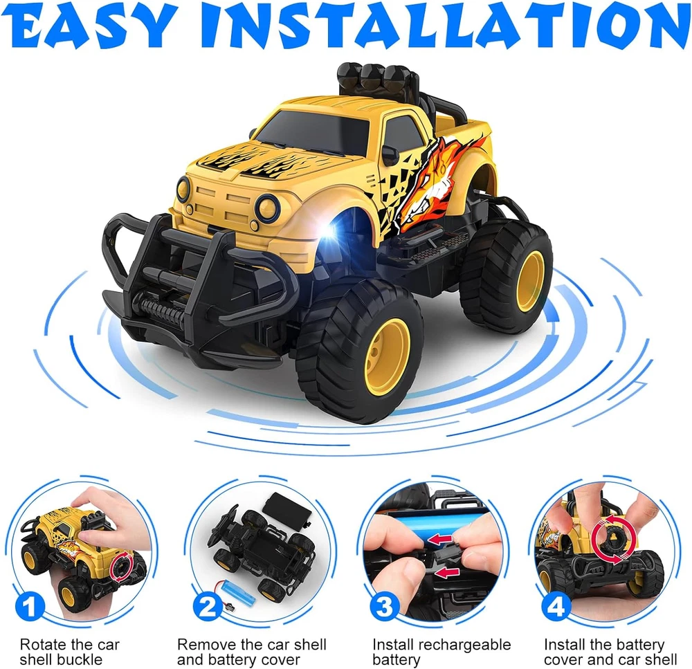 Store New Arrivals Add to Favorite View Feedback Contact Educational Learning Toys for Kids Toddlers Age 3 4 5 6 7 8 Years Old Boys Girls Description Item model number RCY1118 Color Yellow Product Dimensions 5 x 3.5 x 3.5 inches Item Weight 10.2 ounces Batteries 2 AA batteries required. (included) Creative Remote Control Car Toys: This mini remote control car for boys features a captivating cool wolf pattern design, making it visually appealing for kids aged 3-7 years. The RC truck not only crafted with high quality ABS plastic body and sturdy rubber tires, but also equipped with 2 LED signal lights for easy night driving. Adding an extra layer of fun to the playtime experience for toddlers. Full Functioning & Batteries Included: Our 4 channel drive remote control car can go forward, backward, turn left, turn right, front wheel unit guarantees accurate route direction. The rc car comes fully equipped with 1 high-capacity rechargeable battery and 2 AA batteries, providing robust and stable power to conquer any terrain effortlessly. No need to worry about purchasing batteries separately – just unbox the fun and enjoy the thrilling driving experience right away! Racing Car Toys for Toddlers: The toy car has excellent speed and meets the extraordinary experience of children's racing. Its mini body design ensures effortless portability, being light, compact, and easy to carry around. Whether your kids are playing solo or with friends, they can build their own exciting racing games, adding even more fun and enjoyment to their playtime adventures. Let their imaginations run wild as they create unforgettable racing moments! Suitable for Indoor & Outdoor: Our remote control truck design ensures seamless performance both indoors and outdoors, making it the perfect RC car for kids. Whether it's navigating through corridors, living rooms, backyards, parks, or playgrounds, this versatile car guarantees smooth driving experiences. Watch as children have a blast and endless fun with this car toy in any environment they choose to explore. The possibilities for excitement and adventure are boundless! Ideal Gifts for 3 4 5 6 7 Kids: This mini rc cars is a perfect gift for boys 4-7 on special occasions like Birthdays, Children's Day, Thanksgiving Day, Halloween, Christmas, and New Year's holidays, as well as other festive celebrations. Give them the gift of joy and adventure, and watch their faces light up with delight on every occasion! Product Description The video showcases the product in use. The video guides you through product setup. The video compares multiple products. The video shows the product being unpacked. ABOUT US We offer the best prices around on high quality products. Our E-store includes media such as books, movies, music and games while offering electronics, toys, sporting apparel, clothing, tools, general home, garden items and more. SHIPPING We are always working hard to ensure your package arrives as soon as possible. Please understand that some factors like weather, high postal traffic, and the performance of shipping companies are outside of our control. We offer free shipping to the lower 48 states and ship within 2 business days of payment, usually sooner. We do not accept P.O. Boxes. Please provide a physical address. For shipping outside of the continental USA, we only use eBay's Global Shipping Program.The item is shipped to KY and then sent to the rest of the world. International customers are responsible for all duties and taxes. Continue to check out in order to calculate costs for shipping the item to your country. Messages regarding eBay's Global Shipping Program MUST be directed at eBay EXCLUSIVELY. RETURNS We offer a 30-Day Return Policy on items which you are not completely satisfied with. You have the option for a full-refund or an exchange of the item. No returns are available on items shipped outside of the USA. PAYMENT We accept PayPal. CONTACT US This page content is yet to come Please ad us to your favorite seller and visit again later Thank You CUSTOMER SATISFACTION We try our very best to make sure every customer is completely satisfied. If there's a problem, message us! We're happy to help.