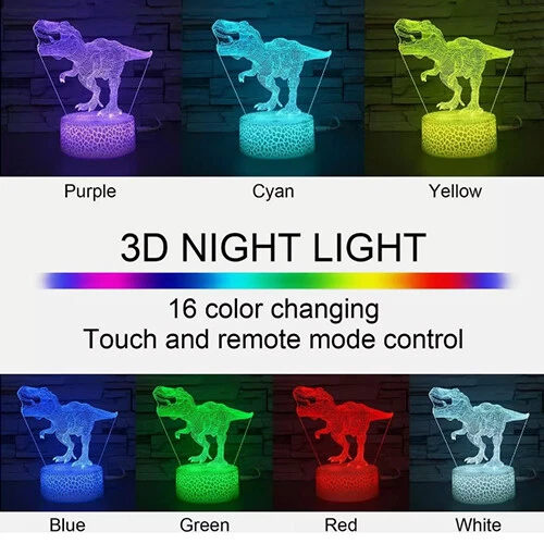 Product Description Description 【Interesting 3D Visual Effect】: The nightlights are made with 3d laser engraving technology to create a gorgeous optical gorgeous 3d illusion with a realistic dinosaur shape design,It is perfect 【Smart Touch】: The 3d night light with remote control and touch mode control, 7 or 16 different colors can be adjusted through the remote control, dinosaur lights can be fixed to static or gradient colors for home decorations, children’s room, living room, bedroom ,etc 【Convenient and Safe】: 2 power modes - 3* AA batteries(Not included) or USB cable powered. Use high quality led lights, the light is soft and uniform, no-flicker, harmless to children's eyes 【Perfect Gift】: Dinosaur lamp would be perfect party supplies,dinosaur gifts for teen girls kids baby,birthday gifts,thanksgiving gifts,christmas gifts,anniversary gifts,graduation gifts,families and friends 【Applicable Scenarios】: The dinosaur lights can be used as home decor, kids bedroom decor light, bars, cafes, hotels, parties, etc! as bedside lamp at night, so that you and your children can enjoy sweet and warmth night! i-CHONY - Dinosaur Night Light Made for Kids and Family! Made with 3d laser engraving technology can fixed one color or 7 colors auto gradual changing night lights -- red, green, blue, yellow, purple,cyan, white. It is a great creative decorative lights for children bedroom, living room, dinning room and outdoor decorations. Perfect Gifts: Birthday gifts - T-rex toys gifts - christmas gifts - new year's gift for kids. Parameter: Light Bulb Material: Acrylic Number of LED: 10 pcs LED Life Span: 10000 h + Power: 0.4W Voltage: 5V Power spend: 0.012kw.h/24 hours Power Supply: 3* AA Batteries ( not included)or USB connection(Mobile power, computer, suitable for most USB ports) 3*AA Battery Life Time: More than 60 hours (low power consumption) Package includes: 1* Remote control 1* Acrylic panel 1* Color-Changing ABS base 1* USB cable, length: 31 inches 1* User manual Note: 1. USB and 3AA batteries cannot be powered together at the same time. 2. Please remove the surface protective film before use. 3. Do not touch the acrylic plate surface with your fingers to avoid finger print marks on the plate which may affect the 3D illusion. Item model number tea2020206 Light Source Type LED Style T-rex lamp Number of Items 1 Power Source 3*AA Battery Powered / USB Powered Number of Light Sources 10 Country of Origin China Is Electric Yes Batteries Included? No Lighting Method Adjustable Mounting Type Tabletop Lamp Type Bedside Lamp,Atmosphere Lamp,Table Lamp Number of Pieces 16 Room Type Bedroom,Living Room,Usb Average Life 10000 Hours Product Dimensions 3.94"D x 6.1"W x 7.1"H Material Plastic Installation Type Tabletop Age Range (Description) Adult, Kid, Teen Controller Type Remote Control Finish Type Transparent Specific Uses For Product Birthday gifts,christmas gifts,new year's gift,dinosaur gifts,dinosaur toys for kids boys age 2 3 4 5 6 7 8 9 10 11 12 Bulb Features 2-way switching Indoor/Outdoor Usage Indoor Brightness 300 Microcandela Control Method Remote Water Resistance Level Not Water Resistant Batteries Required? No Item Weight 7.36 ounces Connectivity Technology USB Special Features Smart touch dimming, Remote control dimming, Auto gradual color Changing, Energy saving Special Feature Smart touch dimming, Remote control dimming, Auto gradual color Changing, Energy saving Part Number tea2020206 Shade Color Multicolor Color Temperature 3000 Kelvin Color red, blue, green, yellow, purple, cyan, white Wattage 5 watts Is Cordless? Yes Base Material Acrylic Is Waterproof false Shape Tyrannosaurus Rex Voltage 4 Volts Recommended Uses For Product Decoration, Camping Shade Material Plastic Finish types Transparent Included Components Bulb included, Power cord, Remote control Switch Type Touch/Remote Controller Brand Unbranded Shipping Fast shipping USA About Us Payment Shipping Returns Contact Us Based in USA, offering high quality product Pick up orders welcome here and we also offer great discount for wholesales. We only accept PayPal payment . We process and dispatch your purchase within 2 business day after payment clearance. Please contact us if you have special requirements (combination of packaging etc.). We offer free USPS or FEDEX Package as default. If you choose express post, we charge a flat rate and we Express Post, which can be delivered in 1-3 business days, depending on your location. Please contact us first when return, exchange and refund is required. Any direct return of purchased items will not be processed. Change-of-mind return can only be accepted within 7 days after purchase. All other returns can be accepted in 30 days. We will closely examine the condition of the returned items and will not issue any refund/exchange before we make sure the items are in their original neat conditions. Before leaving us neutral or negative feedback, please contact us first. We will do everything we can to give you a satisfying solution. Please don't open case via eBay or PayPal. Please don't open any return request before contact us. We do our best to resolve any issue. Leaving negative feedback and low ratings doesn't get things solved. So please talk with us and we will not let you down. About Us Based in USA, offering high quality product Pick up orders welcome here and we also offer great discount for wholesales. Payment We only accept PayPal payment . Shipping We process and dispatch your purchase within 2 business day after payment clearance. Please contact us if you have special requirements (combination of packaging etc.). We offer free USPS or FEDEX Package as default. If you choose express post, we charge a flat rate and we Express Post, which can be delivered in 1-3 business days, depending on your location. Returns Please contact us first when return, exchange and refund is required. Any direct return of purchased items will not be processed. Change-of-mind return 