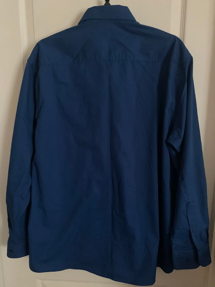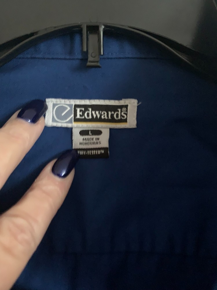 Edwards Dress Shirt L Blue In good condition. I have took pictures to show the condition of the Shirt. I am Not an Expert, also I am Not a Professional EBay Seller. All Items are Sold "As Is" The condition noted in description is only my opinion, I do my best to take good pictures of the items. Please be sure to look at all the pictures. Please ask all questions before bidding.