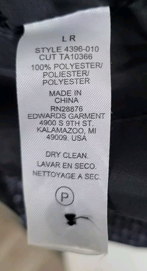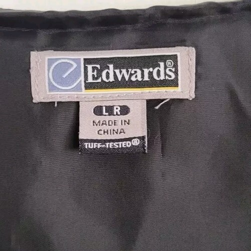 Brand: Edwards Insulation Material: Polyester MPN: 4396 Style: Regular Personalize: No Garment Care: Dry Clean Only Vintage: No Color: Black Country/Region of Manufacture: China Outer Shell Material: Polyester Handmade: No Accents: Zipper Occasion: Casual, Formal, Party/Cocktail Size: L Lining Material: Polyester Closure: Zip Pattern: Solid Size (Men's): Regular Theme: Classic Collar Style: Button-Down Size Type: Regular Features: Lightweight, Lined Type: Vest Jacket/Coat Length: Mid-Length Department: Men