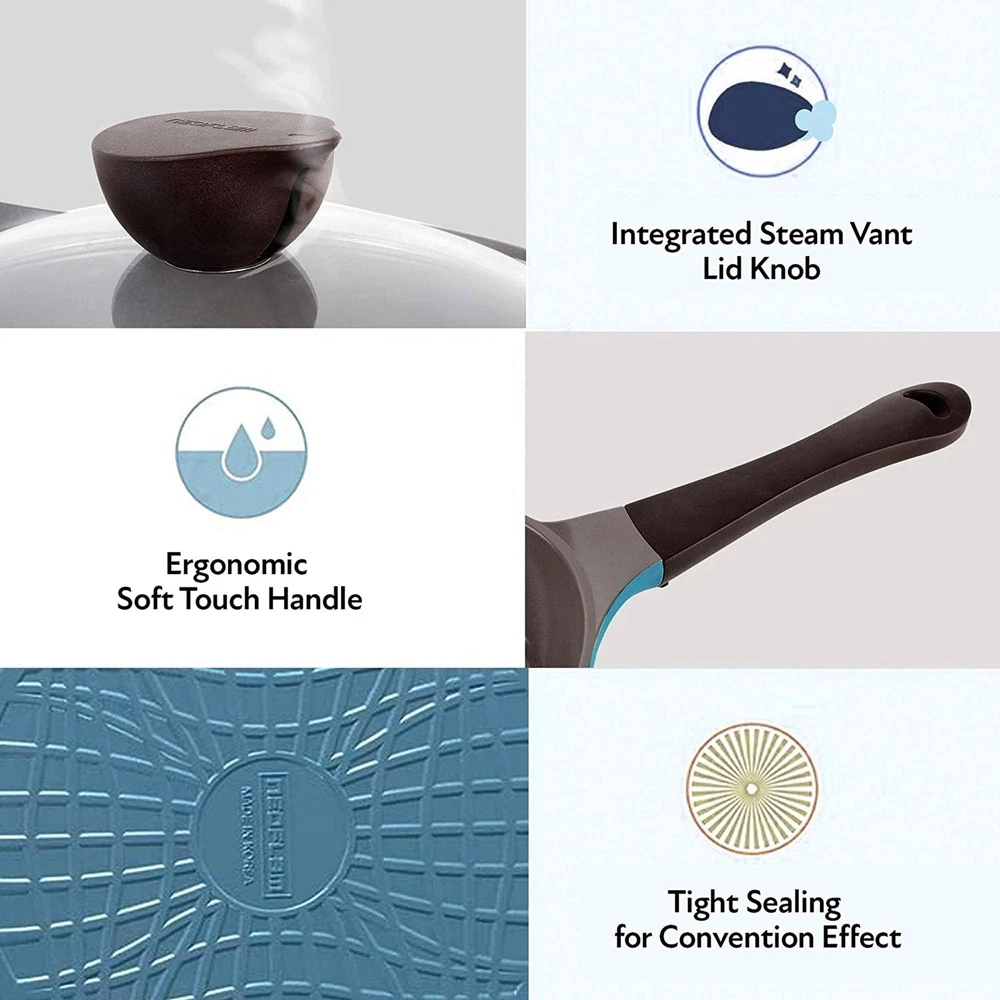 Eela, winner of the 2012 iF Product Design Award, possesses a graceful pleated wall, seamlessly-integrated handles, and stylized bakelite lid knob make it nothing short of functional artistry. Regarded as 's flagship cookware line, Eela is feature rich and extremely lightweight. Eela's cutting edge design and color make it the least boring piece of cookware in your arsenal. Eela's cast aluminum design provides multiple advantages over its competitors; known for its exceptional durability and high heat conductivity, cast aluminum is rising in popularity as a safe and affordable alternative to stainless steel. At just 1/3 the weight of cast iron, cast aluminum's even heat distribution properties allow for fast cooking and reduced energy consumption. Made in Korea. What is Ecolon™ coating? Ecolon™ by is a professional non-stick, ceramic coating. Derived from the earth's minerals, Ecolon™ is PFOA free. Ecolon™ is applied to both the interior and exterior of the product, sustaining the product's durability while also facilitating convenience in cleaning. About is dedicated to bringing forth innovative kitchenware and household products that are healthy . Each product is engineered to have both exceptional design and performance; 's leadership in product design has been recognized by the following prestigious design awards: iF (2012), Red Dot (2012,2013,2014), and Design Plus (2014). PFOA/PTFE FREE ECOLON CERAMIC HEALTHY NON-STICK COATING – Eela wok Chef’s pan is coated with Ecolon, a healthy alternative to nonstick coating and is used to create durable and scratch resistant cookware. Manufactured from earth’s natural minerals, it is PFOA/PTFE, Lead, and Cadmium free. DURABILITY & HIGH HEAT CONDUCTIVITY CAST ALUMINUM TECHNOLOGY - At only 1/3 the weight of cast iron, our pan is exceptionally durable, scratch resistant, heats evenly and have high heat conductivity. It is a perfect pan for fast cooking and reduced energy consumption. AWARD WINNING DESIGN – Eela product won 2012 Design Award. Features: Integrated Bakelite handle, patented cropcircle base design, sophisticated pleated exterior wall, and tempered glass lid with steam release vent. PERFECT WOK, PERFECT GIFT– Great gift for the holidays, Thanksgiving, Christmas, wedding, graduation, and other special occasions. Ideal for all your cooking needs from heating, frying, sauteing, and much more. Item shape: Round