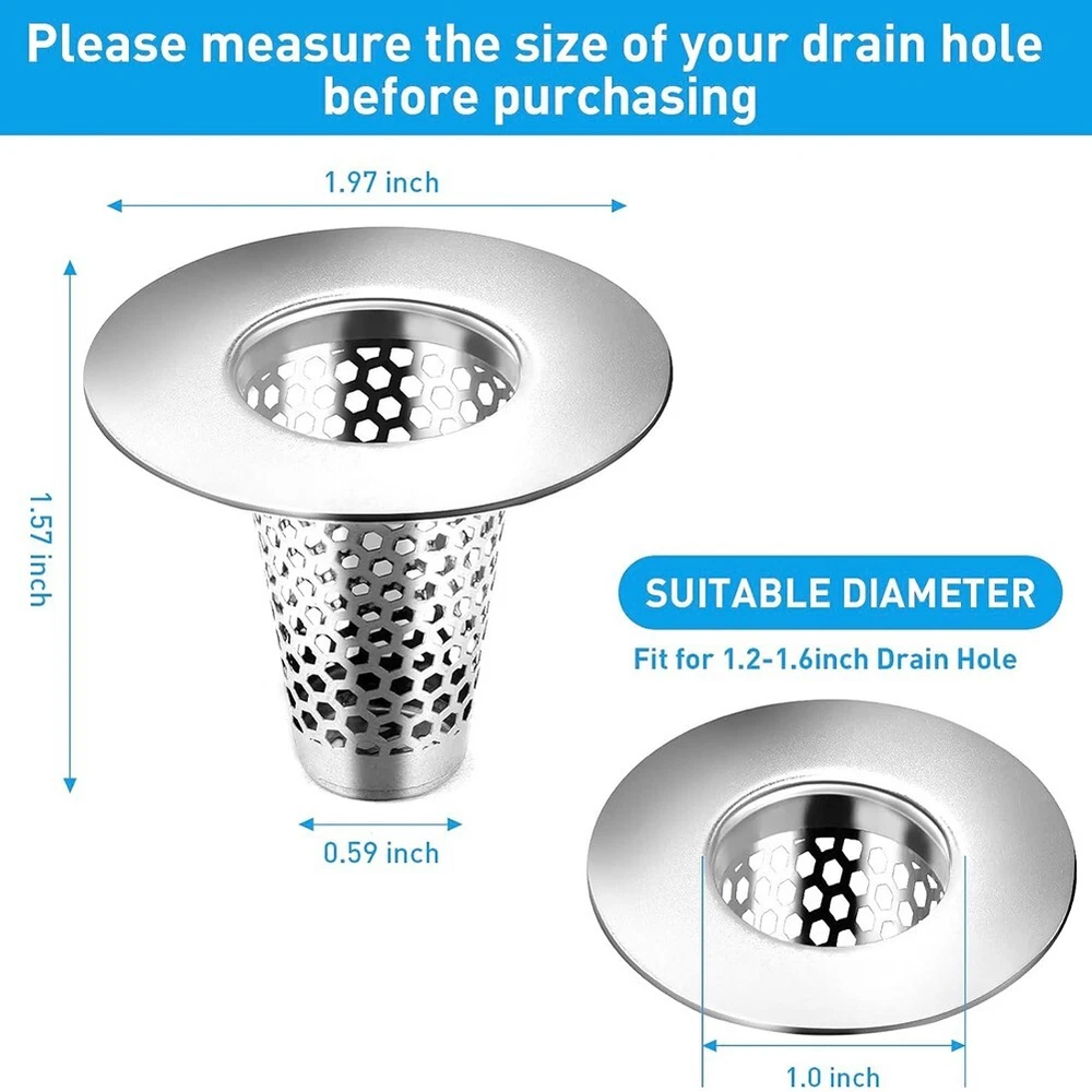 Product Description Features: *Stainless Steel Material: Our bathroom sink drain strainer is made of stainless steel, rust-free, durability, and resistance. *Conical Design: This sink drain strainer adopts a conical design, perfectly fitting bathroom sinks drain hole with a diameter of 1.2-1.6 inches without a crosspiece inside. *Efficient Catcher: The bottom and sides of our bathroom sink drain strainer are evenly distributed with 2mm wide holes, which effectively blocks , small objects, jewelry, etc. *Quick Water Flow: The size of the holes in the strainer is moderate, allowing for quick water flow even in the presence of a lot of sediment, avoiding blockage. *Easy Installation: To use this bathroom sink drain strainer, Just remove the before rotating circular from the drain hole and add this filter to prevent small accessories from being washed away. Specifications: *Part Name:Sink Drain Strainer *Material:Stainless Steel *Size:Bottom Diameter: 1.5cm/0.59", Height: 4cm/1.57" (Approx.) *Fitment: for Drain Hole Diameter 1.2-1.6inch *Color:Silver Color Package Content: 1*Sink Drain Strainer Note: 1. The real color of the item may be slightly different from the pictures shown on website caused by many factors such as brightness of your monitor and light brightness. 2. Please allow slight manual measurement deviation for the data. Payment Payment must be completed within 5 days. If you have any problems about payment, please contact us via ebay message. Delivery details We only ship to confirmed ebay Order addresses. Please comfirm that your Order address is in line with your shipping address. Please kindly note that the c ombined shipping is not provided because the shipping fee is calculated by weight. Also, the each additional item means exactly the the same color and size. It takes about 7 -15 working days to US; about 10-30 working days to other countries. Transit time may be a little delayed because of the bad weather and customs inspection . If you do not receive your item within 30 working days since payment finished, please contact us immediately for further assistance. Contact us We strive for 100% customer satisfaction! Positive Feedback is very important to us. If you have any questions, p lease feel free to contact us via "Ask seller a question" . We will reply your email within 24 working hours.