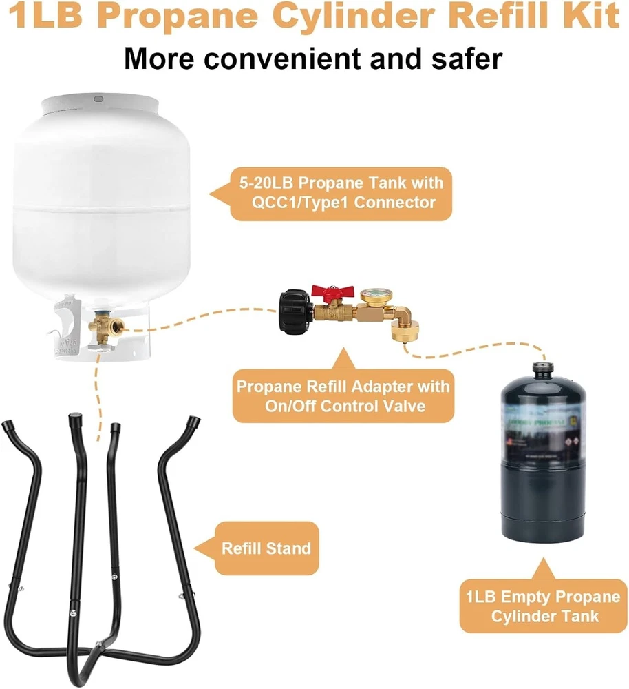 Effortless 1lb Propane Cylinder Refill: Brass Adapter with On/Off Control Valve ‹ › ‹ › ‹ › ‹ › ‹ › ‹ › ‹ › ‹ › ‹ › ‹ › ‹ › Effortless 1lb Propane Cylinder Refill Kit Brass Adapter with On/Off Control Valve Features: Constructed with high-quality solid brass for durability. Easy to install with no tools required. Hand-wheel grip for effortless tightening and connection between large 20lb propane cylinders and 1lb tanks. Removable propane refill stand made of painted iron with a 304 stainless steel fixing nut, enhancing scratch, rust, and corrosion resistance. Sturdy support structure safely accommodates 5-20lb propane tanks without tilting during inflation. Color-coded dial gauge for monitoring leaks and fuel levels at a glance, even in low light conditions with its luminous pointer. Benefits: Streamlined refilling of 1lb propane cylinders from larger tanks. Safe and secure operation with a stable design for added peace of mind. Convenient monitoring of propane levels for seamless usability. Comprehensive kit includes everything needed for easy installation and use. Why Choose Our Refill Kit? Why waste time and money purchasing 1lb propane cylinders when you can effortlessly refill them? Our Propane Cylinder Refill Kit allows you to convert larger 20lb tanks to 1lb ones seamlessly. Crafted with high-quality materials and featuring an intuitive design, this kit ensures a safe refilling experience without the fuss. With color-coded dial gauges for easy monitoring, a robust refill stand, and all necessary components included, it exemplifies convenience and reliability. Enjoy outdoor adventures without worrying about running out of fuel. Don't let your propane supplies dwindle – streamline your refilling process today with our Effortless Propane Refill Kit! Shipping Free & Fast Shipping - We offer free shipping to most of the USA with a normal delivery time of 3-7 days. However, due to the current situation, additional delivery time (up to 3 weeks) may be required for some items. Alternative Carriers - We may use alternative carriers (e.g. USPS, FedEx, UPS, etc.) to ensure your package arrives safely and on time. Due to the use of multiple carriers, we are unable to provide a tracking number automatically. Handling Time - Orders are processed and shipped within 1-2 business days of receiving cleared payment. Shipping Restrictions - Shipping to Alaska, Hawaii, Puerto Rico, Guam, and other US territories may incur shipping charges or delivery restrictions. Please contact us before ordering, or your order can be refunded/cancelled. State Restrictions - There may be restrictions based on your state of purchase. For example, certain items may not be shipped to California due to state regulations. Contact for Tracking Updates - If you require tracking updates or have any concerns about the delivery of your order, please feel free to contact us, and we will be happy to assist you. Return Please see our eBay Return Policy. Thank you. Payment We accept all major credit cards, PayPal, and Apple Pay for your convenience. Your payment information is secure and encrypted to ensure a safe and seamless transaction. Please complete your payment within 3 days of purchase to avoid any delays in shipping. Feedback Your feedback is extremely important to us. We strive to provide the best products and customer service possible. If you are satisfied with your purchase, please take a moment to leave us a positive review. If you have any concerns or issues with your order, please contact us before leaving negative feedback. We are committed to resolving any problems and ensuring your satisfaction. Contact Us If you have any questions or concerns, please feel free to reach out to our customer support team. You can contact us through the eBay messaging system. We are available Monday to Friday, 9:00 am to 5:00 pm EST, and we will do our best to respond to your inquiry within 24 hours. Thank you for supporting our small family business! UPC: Not Set Unit Quantity: 1 Set Includes: Propane Refill Adapter,Refill Stand,1LB Propane Bottle Cap,Allen Wrench,Sets of Screw,Tube Cap,Installation Manual Features: Easy Clean,Rust Resistant,Easy Install,No Tools Required,On/Off Control Valve,Color Coded Dial Gauge,Leak Detection,Fuel Level Monitoring,Stable Support Structure,Scratch Resistant,Corrosion Resistant Type: Propane Refill Adapter Brand: Unbranded Number in Pack: 1 Color: Multicolor Handle Material: Solid Brass Item Weight: 3.03 lb Size: Medium Head Material: None Finish: Painted Country/Region of Manufacture: Not Set Item Height: Not Set Item Width: Not Set Model: Not Set Year Manufactured: Not Set Number of Items in Set: Eight-Piece Style: Modern MPN: Not Set Manufacturer Warranty: Not Set Unit Type: lb Personalize: Not Set