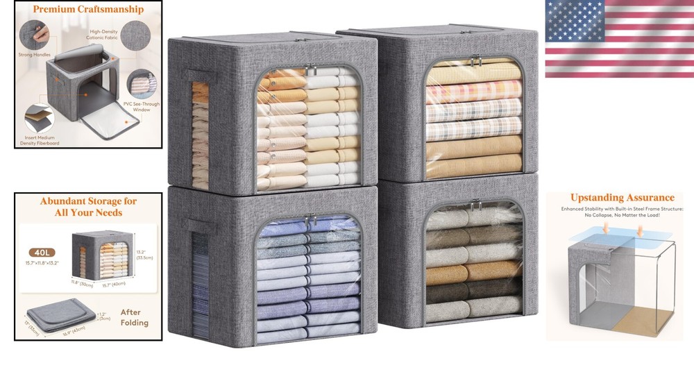 Effortless Organization: Stackable 40L Storage Bins with Clear Windows & Zippers ‹ › ‹ › ‹ › ‹ › ‹ › ‹ › ‹ › ‹ › ‹ › ‹ › ‹ › Stackable 40L Storage Bins with Clear Windows & Zippers Effortless Organization Transform your space with our Stackable 40L Storage Bins, designed for stylish and efficient organization. These bins come with transparent windows and zippers, allowing you to keep your belongings neatly stored and easily accessible. Stay Upright with Easy Installation Simple installation: Unfold the two steel frames for immediate use. Built-in steel frame structure provides exceptional stability. Multiple bins can be freely stacked for optimal organization. Sturdy fabric ensures wrinkle-free clothes and sturdy support. High-Quality Material Constructed from premium high-density cationic fabric for lasting durability. Sturdy steel frame supports the structure, while the bottom cardboard enhances weight capacity. Front and side PVC windows offer enhanced visibility of contents. Ample Storage Capacity Offers generous space and is available in two sizes: 40L and 75L. Ideal for seasonal clothing, blankets, holiday decorations, and everyday essentials. Practical handles on either side make for effortless transport. Convenient Access Zippered top and front opening for easy, hassle-free organization. Transparent windows provide a clear view of contents. Access lower boxes directly through the front window, no need to remove upper boxes. Foldable Design When not in use, simply fold down the steel frames to compact your storage solution into a flat piece. Perfect for storing in a drawer, minimizing space usage. Why Choose Our Stackable Storage Bins? Say goodbye to clutter and disorganized spaces! Our Stackable 40L Storage Bins combine elegance with functionality, providing you with a stylish solution for all your storage needs. The durable construction and clear windows enhance both the aesthetic and practicality of your home organization. Elevate your storage game—order your set of Stackable Storage Bins today! Shipping Free & Fast Shipping - We offer free shipping to most of the USA with a normal delivery time of 3-10 businessdays. However, due to various situations, additional delivery time (up to 3 weeks) may be required for some items. Alternative Carriers - We may use alternative carriers (e.g. USPS, FedEx, UPS, etc.) to ensure your package arrives safely and on time. Due to the use of multiple carriers, we are unable to provide a tracking number automatically. Handling Time - Orders are processed and shipped within 1-5 business days of receiving cleared payment. Shipping Restrictions - Shipping to Alaska, Hawaii, Puerto Rico, Guam, and other US territories may incur shipping charges or delivery restrictions. Please contact us before ordering, or your order can be refunded/cancelled. State Restrictions - There may be restrictions based on your state of purchase. For example, certain items may not be shipped to California due to state regulations. Contact for Tracking Updates - If you require tracking updates or have any concerns about the delivery of your order, please feel free to contact us, and we will be happy to assist you. Return Please see our ebay return policy. We do not accept return on most products. This is to avoid customers mis-using ebay returns. All sales are final. Please be sure to check the return policy listed at the top of the listing. In rare cases, we may accept returns, if the buyer pays both ways shipping and 20% restocking fee. If you are un-sure of return policy of a particular item, please ask before buying. Payment We accept all major credit cards, PayPal, and Apple Pay for your convenience. Your payment information is secure and encrypted to ensure a safe and seamless transaction. Please complete your payment within 3 days of purchase to avoid any delays in shipping. Feedback Your feedback is extremely important to us. We strive to provide the best products and customer service possible. If you are satisfied with your purchase, please take a moment to leave us a positive review. If you have any concerns or issues with your order, please contact us before leaving negative feedback. We are committed to resolving any problems and ensuring your satisfaction. Contact Us If you have any questions or concerns, please feel free to reach out to our customer support team. You can contact us through the eBay messaging system. We are available Monday to Friday, 9:00 am to 5:00 pm EST, and we will do our best to respond to your inquiry within 24 hours. Buy it now and enjoy a pleasant shopping experience! UPC: Not Set Unit Quantity: 4 Material: Cardboard,Fabric,Cationic Fabric,Steel Frame,PVC Features: Foldable,Stackable,With Handles,Easy to Install,With Zippers Mounting: Free Standing Brand: Unbranded Item Height: Clothes Storage Bins Item Length: Clothes Storage Bins Item Width: Clothes Storage Bins Type: Storage Bin Item Weight: Less Than 6 lb Capacity: 41 - 80 Quarts Item Depth: 15 in MPN: Not Set Model: Not Set Number of Items in Set: Four-Piece Color: Light Gray Number in Pack: 4 Shape: Rectangular Number of Compartments: 2 Pattern: Not Set Finish: Matte Style: Modern Country/Region of Manufacture: Not Set Original/Reproduction: Not Set Unit Type: Unit Assembly Required: Not Set