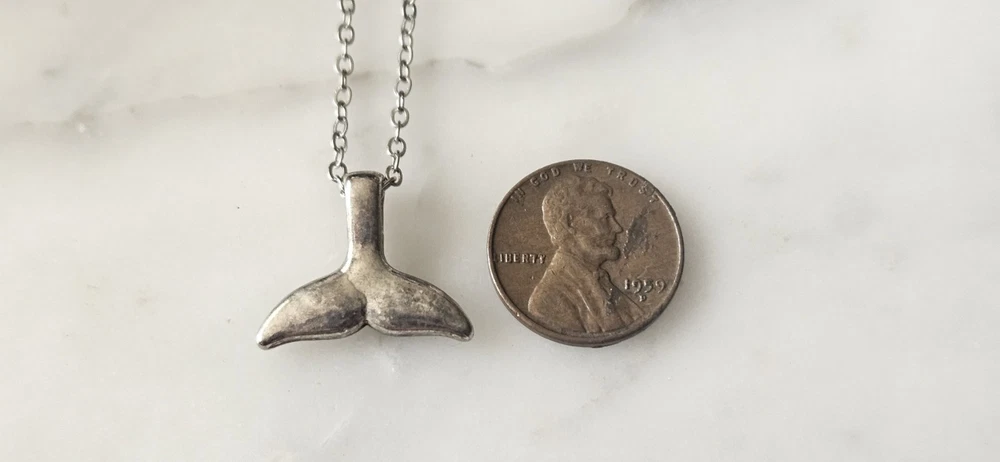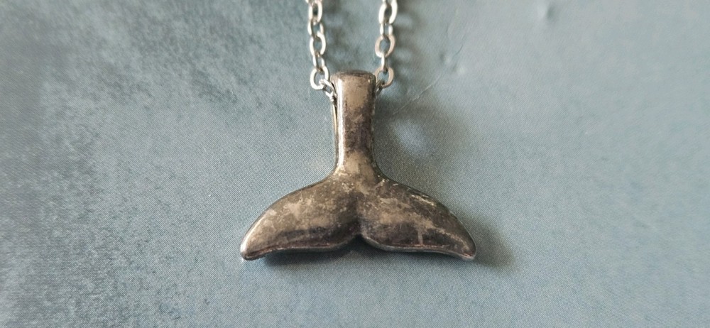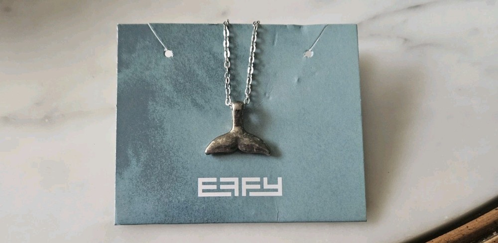 Here Is A Neat ' EFFY Silver Plated? Dangle Whale Tail Necklace Pendant On Orginal Card Tag. The Dangle Whale Tail Is Solid & Nicely Done & This Has A Silver Metal Flat Oval Link Chain, With A Lobster Claw Clouser, As Photoed. The Silver Metal Whale Tail Is Darkened With Patina In Scattered Area's & Would Shine Up Nicely If Desired To, For I Leave Everything In It's Original Untouched Condition. The ' Sizes & Weight ' Are Photoed. A Fresh Old Estate Find & A ' Unisex ' Piece. A Nice ' EFFY ' Whale Tail Necklace Pendant For You & Is Nicely Hand Made!
