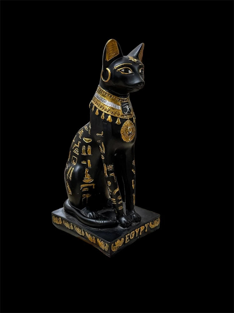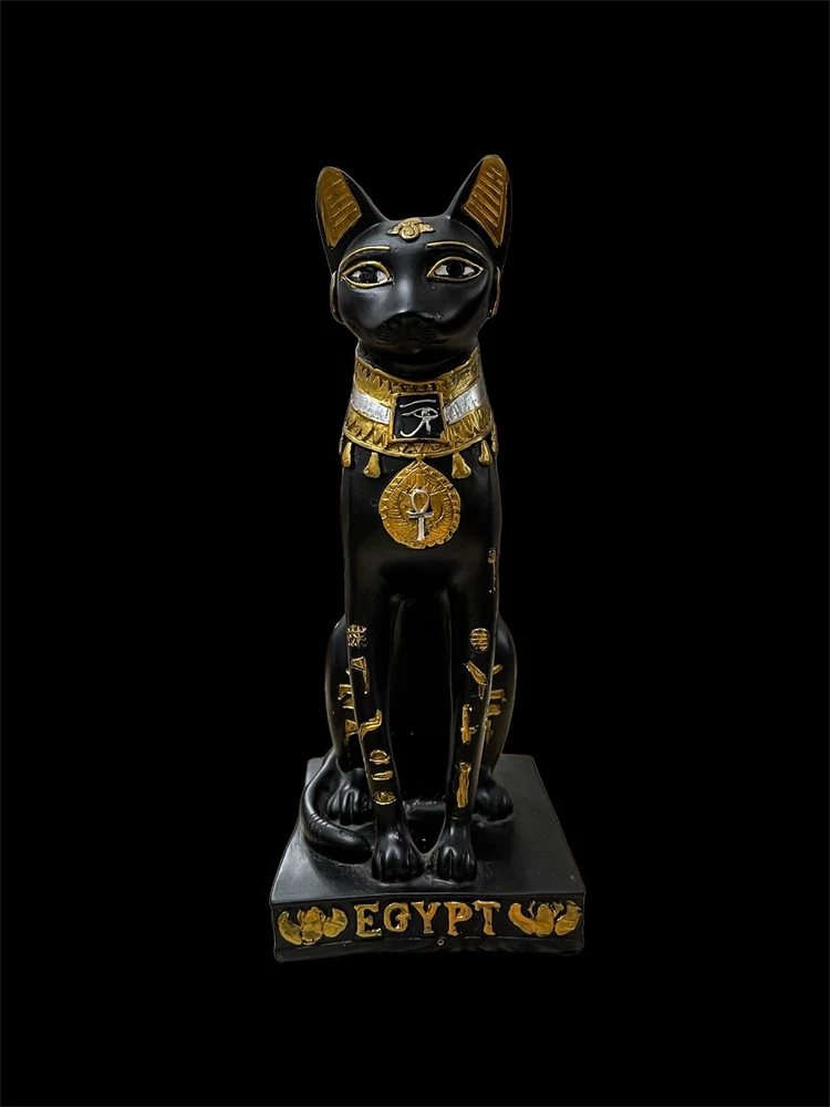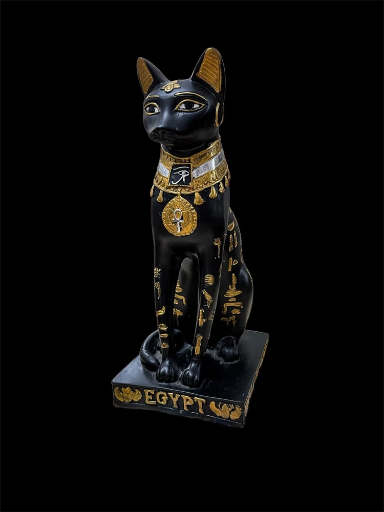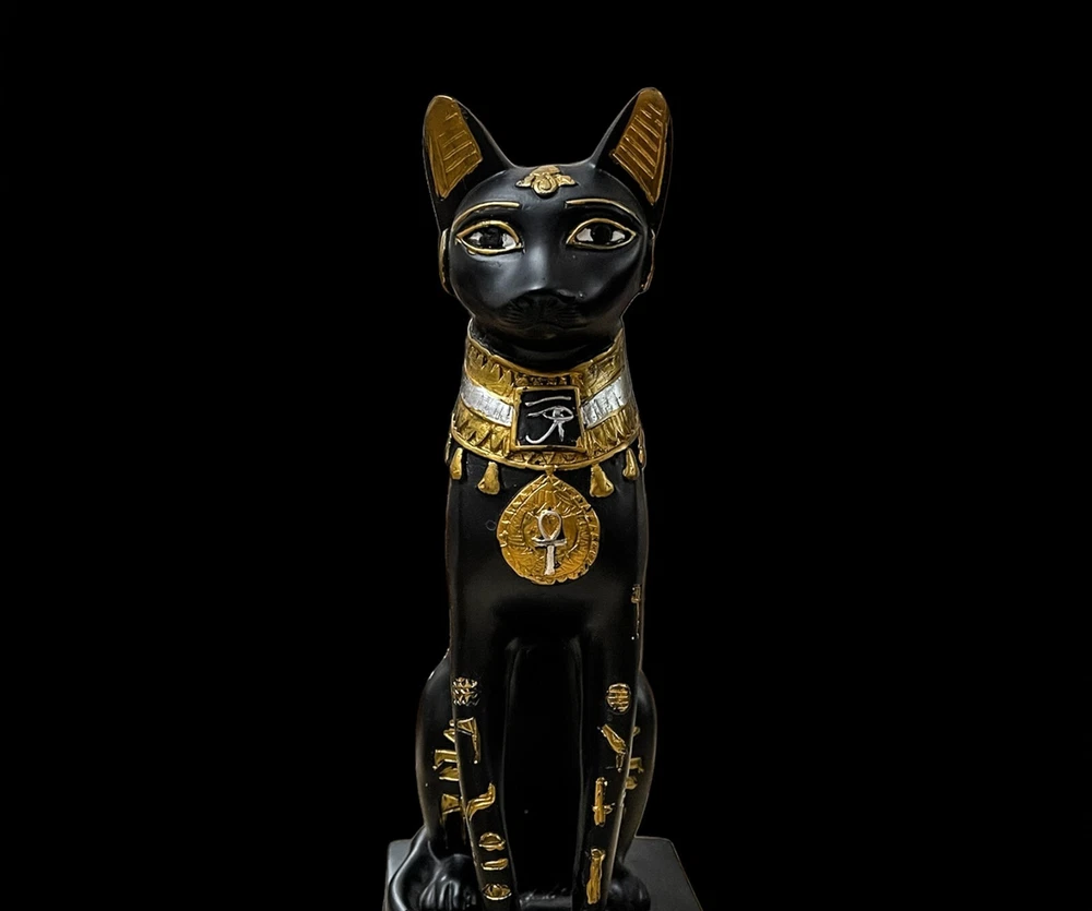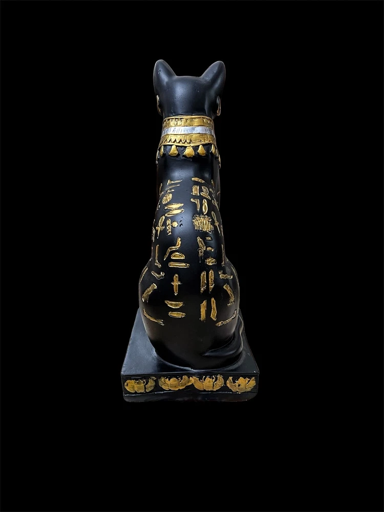 Add a touch of Egyptian mythology to your collection with this stunning Bastet statue. Crafted from stone, this statue features intricate details such as the Eye of Horus and Scarab. The cat goddess Bastet is depicted in a regal pose, showcasing her importance in ancient Egyptian culture. This unique piece was made in Egypt, the birthplace of Bastet worship. It's a must-have for any collector of figurines, cat-themed items, or Egyptian artifacts. Don't miss the chance to own a piece of history.