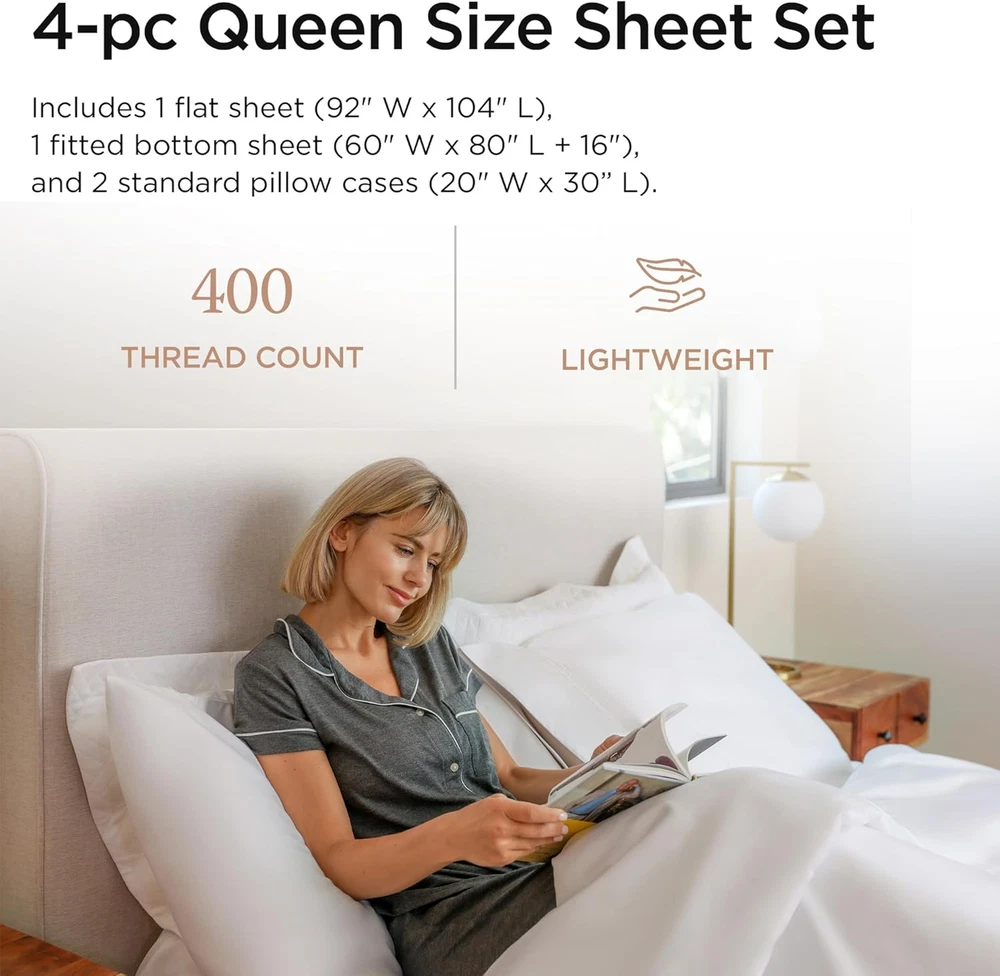 Store New Arrivals Add to Favorite View Feedback Contact Fast deliveries to the customer's home Quality customer service John Make the customers happy! Egyptian Cotton Queen Sheet Set | 100% Certified Egyptian Cotton Sheets for Queen Size Bed | Queen Bed Sheets Set with Snug Fit 16" Deep Pocket | Soft Cooling Sateen Bedding Set | White Description AUTHENTIC EGYPTIAN COTTON BEDDING FOR COZY AND HEALTHY SLEEP: Bid adieu to hot, sleepless nights by adding our soft and smooth 400 thread count sheets to your bedding collection. Crafted with authentic extra long staple Egyptian cotton yarns, these opulent sheets have the accredited golden seal of authenticity, unlike unauthentic Egyptian cotton sheets in the market. This signature sateen weave bedding set provides remarkable comfort and durability, making them completely worth the price. DEEP POCKET COOLING SHEETS FOR A GOOD NIGHT’S SLEEP: Keep night sweats at bay with our cooling and lightweight 400 thread count sheets. Each 4 piece Queen sheet set includes 1 flat sheet (92" W x 104" L), 1 fitted sheet (60" W x 80" L + 16" deep pocket) and 2 Standard pillowcases (20" W x 30" L). The elasticized bottom sheet stays tucked through the night, allowing you to sleep peacefully. Its generously sized deep pocket swiftly hugs even the tallest of mattresses. EXCEPTIONAL QUALITY, MACHINE WASHABLE SHEETS AT AN UNBEATABLE PRICE: Made with the highest quality materials and craftsmanship, our elegant bedsheets are worth every penny. Each sheet is expertly woven to ensure pill-resistance, fade-resistance, and long-lasting strength. Our premium sheets get softer and retain color with every wash. To avoid shrinkage and wrinkles, machine wash the sheets at room temperature, tumble dry on low and fold them neatly right after. ACCENTUATE YOUR BEDROOM DECOR WITH ELEGANCE: Our glorious Egyptian cotton range is meant for the ultimate bedroom experience. Whether it is adding a touch of pastel luxury to your room or contrasting it with a pop of color, these classy sheets are all you need. Along with their divine colors, these bedding sets bring with them a superior comfort to wash all your tiredness away. CERTIFIED & SUSTAINABLE PRACTICES WITH 100% SATISFACTION GUARANTEE: We take pride in making some of the world’s finest linens while respecting the environment. Our products and practices are free from harmful chemicals, earning the OEKO TEX certification. All these premium sheets are manufactured in wind and solar energy powered factory. They are packed in a zero plastic, reusable cotton tote bag and delivered with a 100% satisfaction guarantee, giving you exceptional customer service. Product Description The video showcases the product in use. The video guides you through product setup. The video compares multiple products. The video shows the product being unpacked. 1 SIZE AND SET 2 HOTEL-LIKE EXPERIENCE 3 COOLING AND BREATHABLE 4 DURABLE CONSTRUCTION 5 EASY CARE Paths to better sleep Add to Cart Add to Cart Add to Cart Add to Cart Add to Cart Add to Cart Add to Cart Customer Reviews 4.4 out of 5 stars 3,499 4.4 out of 5 stars 6,167 4.5 out of 5 stars 7,708 4.8 out of 5 stars 18 4.4 out of 5 stars 7,224 4.3 out of 5 stars 1,173 4.3 out of 5 stars 1,362 Price $64.99 $ 64 . 99 $38.99 $ 38 . 99 $69.99 $ 69 . 99 $129.99 $ 129 . 99 $99.99 $ 99 . 99 $169.99 $ 169 . 99 $159.99 $ 159 . 99 Thread Count 400 Sateen 300 Sateen 600 Sateen 656 Sateen 800 Sateen 1000 Sateen 1200 Sateen Cotton 100% Egyptian Cotton 100% Long-staple Cotton 100% Long-staple Cotton 100% Supima Cotton 100% Long-staple Cotton 100% Supima Cotton 100% Supima Cotton Experience the Feel Next-to-skin Soft Everyday Comfort Soft & Satiny Superior Soft and Smooth Luxury Soft & Velvety Upgraded Softness & smoothness Luxurious & Impeccable Quality Weight Light Light Medium Medium Medium Optimum Optimum Color Range & Pattern 12+ Solid Colors, Geometric 24+ Solid, Dots, Geometric 19+ Solid, Striped, Jacquard 6+ Solid Colors 12+ Solid Colors, Celine 6+ Solid Colors 6+ Solid Colors Bed Sizes Available T, T-XL, F, Q, K, CK T, T-XL, F, Q, K, CK T, T-XL, F, Q, K, CK T, T-XL, F, Q, K, CK T, T-XL, F, Q, K, CK F, Q, K, CK F, Q, K, CK Extra Pillow Cases Available ✔ ✔ ✔ ✔ ✔ ✔ ✔ Easy Machine Wash & Dry ✔ ✔ ✔ ✔ ✔ ✔ ✔ 100% Inspected & Certified ✔ ✔ ✔ ✔ ✔ ✔ ✔ STANDARD 100 by OEKO-TEX ✔ ✔ ✔ ✔ ✔ ✔ ✔ Item model number THM-400-SLD-White-Q Style Egyptian Cotton Weave Type Sateen Pattern Solid Country of Origin India Theme bedding Number of Pieces 4 Unit Count 1 Count Fitted Sheet Pocket Depth 16 Inches Pillowcase Quantity 2 Material Cotton Age Range (Description) Adult Seasons All, Winter, Summer, Spring Is Discontinued By Manufacturer No Package Dimensions 11.61 x 11.06 x 4.65 inches Included Components 1 Flat Sheet, 1 Fitted Sheet & 2 Pillowcases Closure Type Pull-On Item Weight 4.25 pounds Pillowcase Length 3E+1 Inches Sham Quantity 2 Special Feature 100% Certified Egyptian Cotton free from harmful chemicals Color Bright White Solid Thread Count 400 Global Trade Identification Number 08906124991595 Manufacturer Home Linen Product Care Instructions Tumble Dry Size Queen ABOUT US We offer the best prices around on high quality products. Our E-store includes media such as books, movies, music and games while offering electronics, toys, sporting apparel, clothing, tools, general home, garden items and more. SHIPPING We are always working hard to ensure your package arrives as soon as possible. Please understand that some factors like weather, high postal traffic, and the performance of shipping companies are outside of our control. We offer free shipping to the lower 48 states and ship within 2 business days of payment, usually sooner. We do not accept P.O. Boxes. Please provide a physical address. For shipping outside of the continental USA, we only use eBay's Global Shipping Program. The item is shipped to KY and then sent to the rest of the world. International customers a