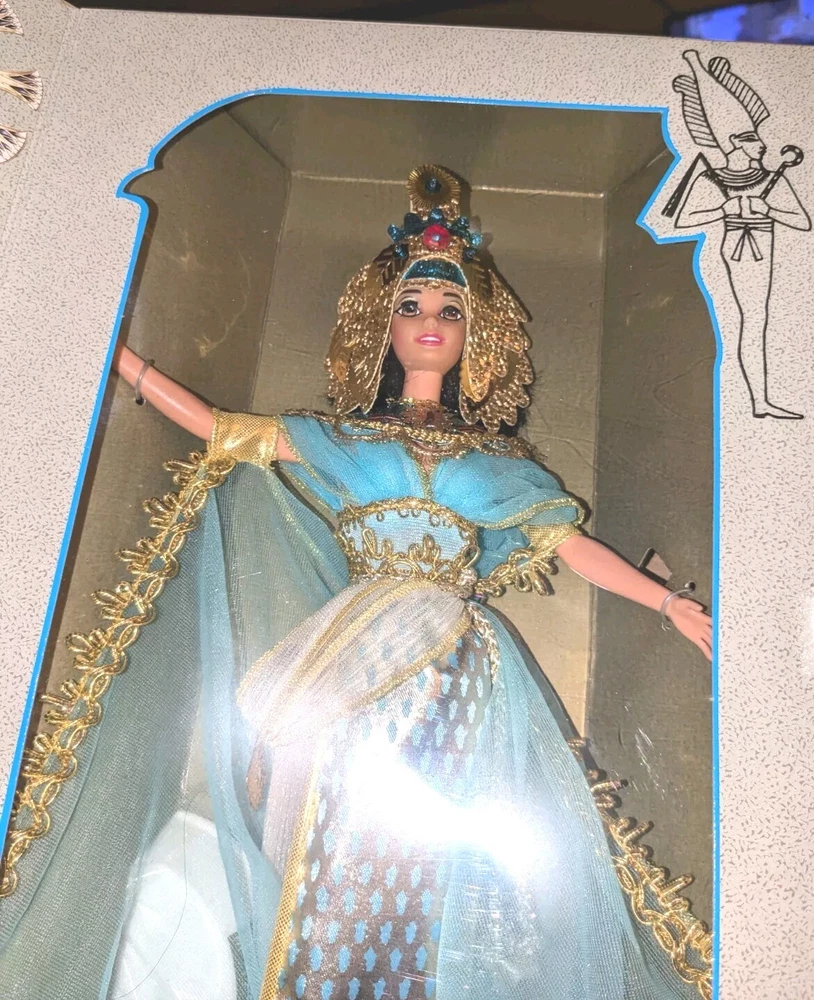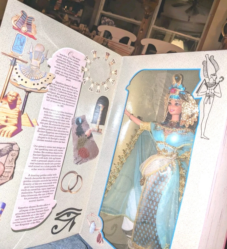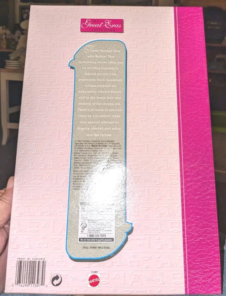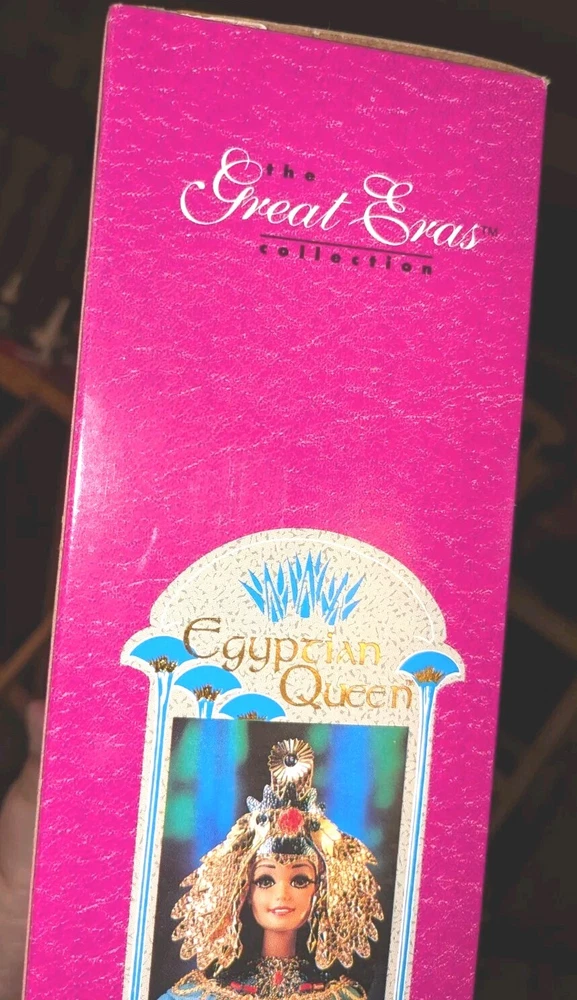 This Barbie doll is a special edition collector's item from The Great Eras Collection. Manufactured in 1993, it features an Egyptian Queen character with various outfits and accessories. The doll is 12 inches in size and has removable clothes. It also comes with a display stand and storage case. This Barbie is an Original UNOPENED Box factory Seiled, Doll Has Been in Storage in a Basement for Many Years, appear to be in New/Mint Condition,, licensed reproduction and is considered a timeless treasure for collectors.